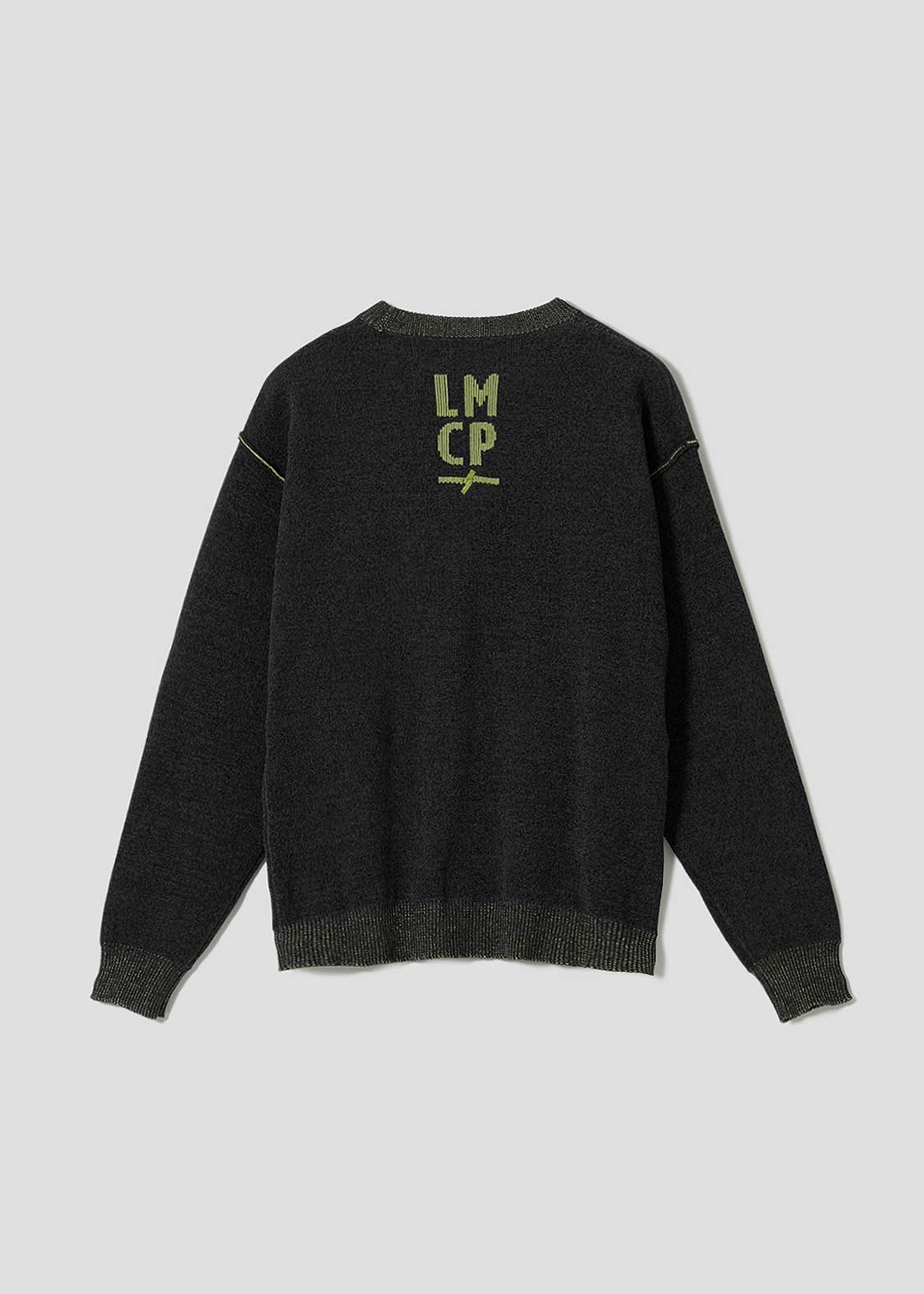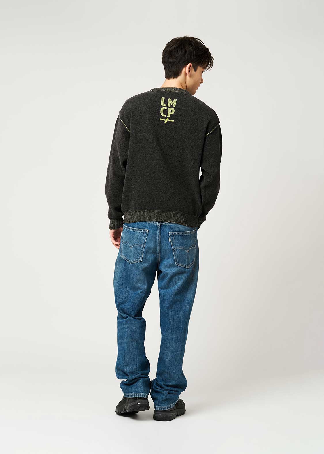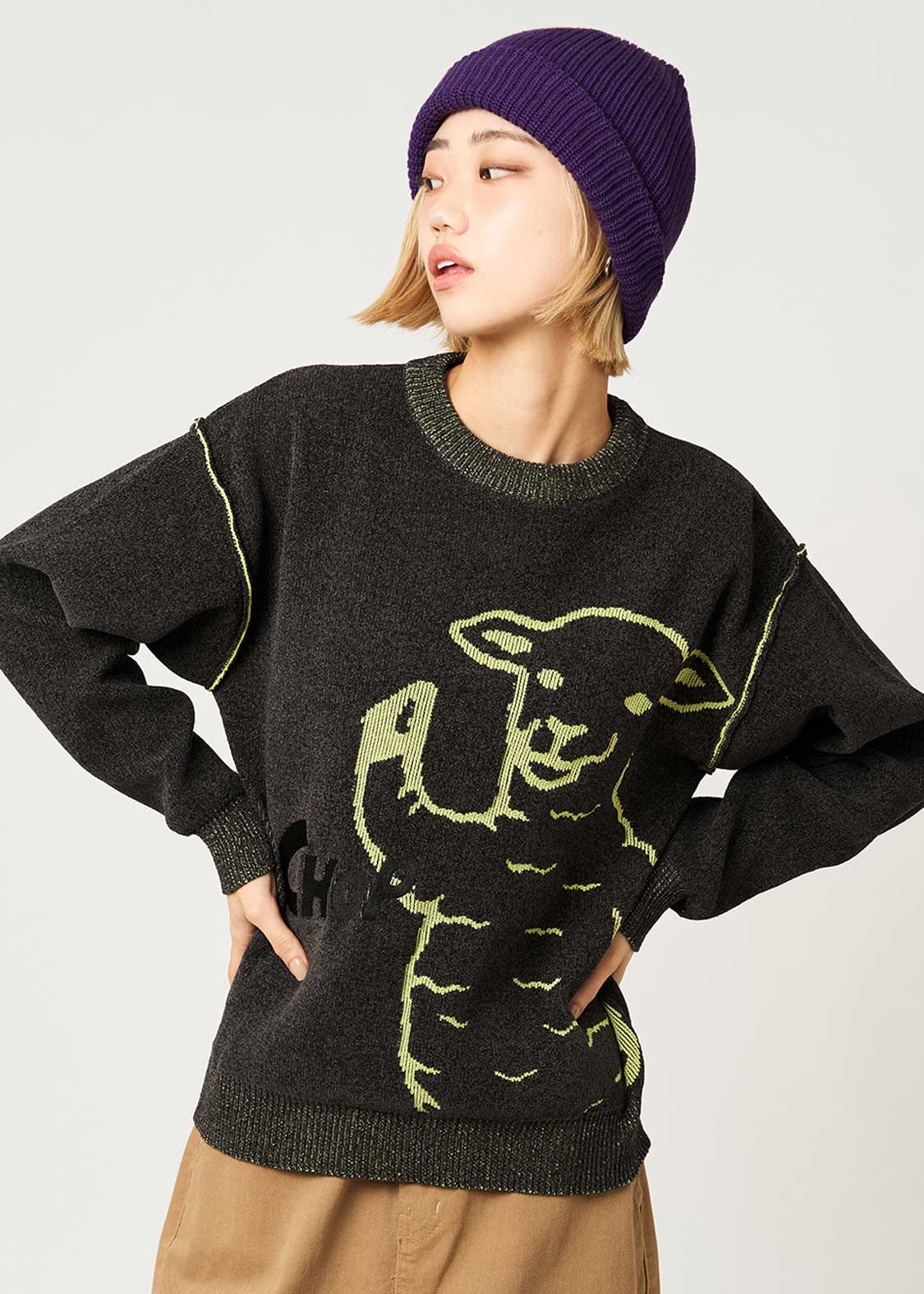 ・表にモールのような光沢感と毛足のある糸を使用したニットプルオーバー。