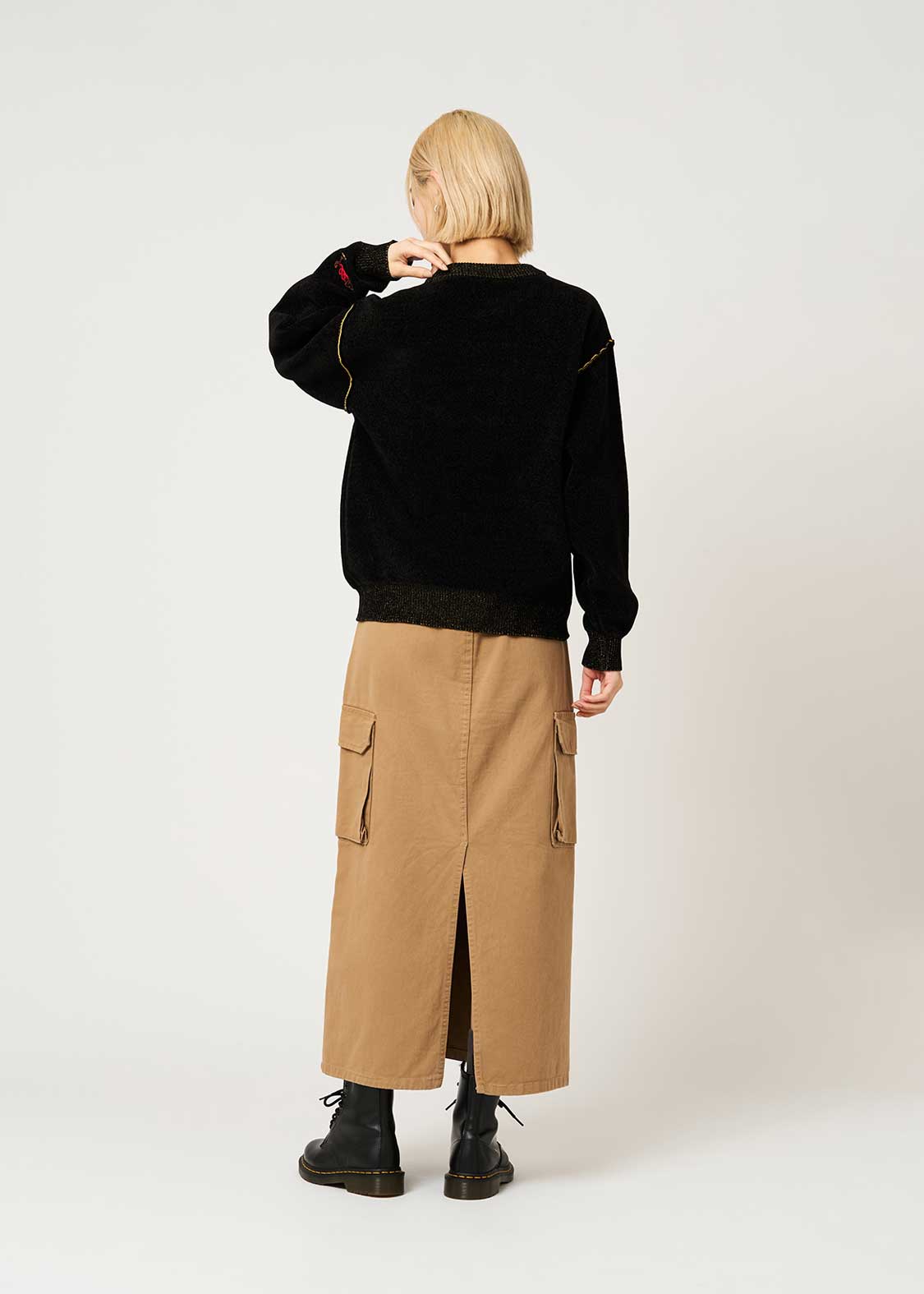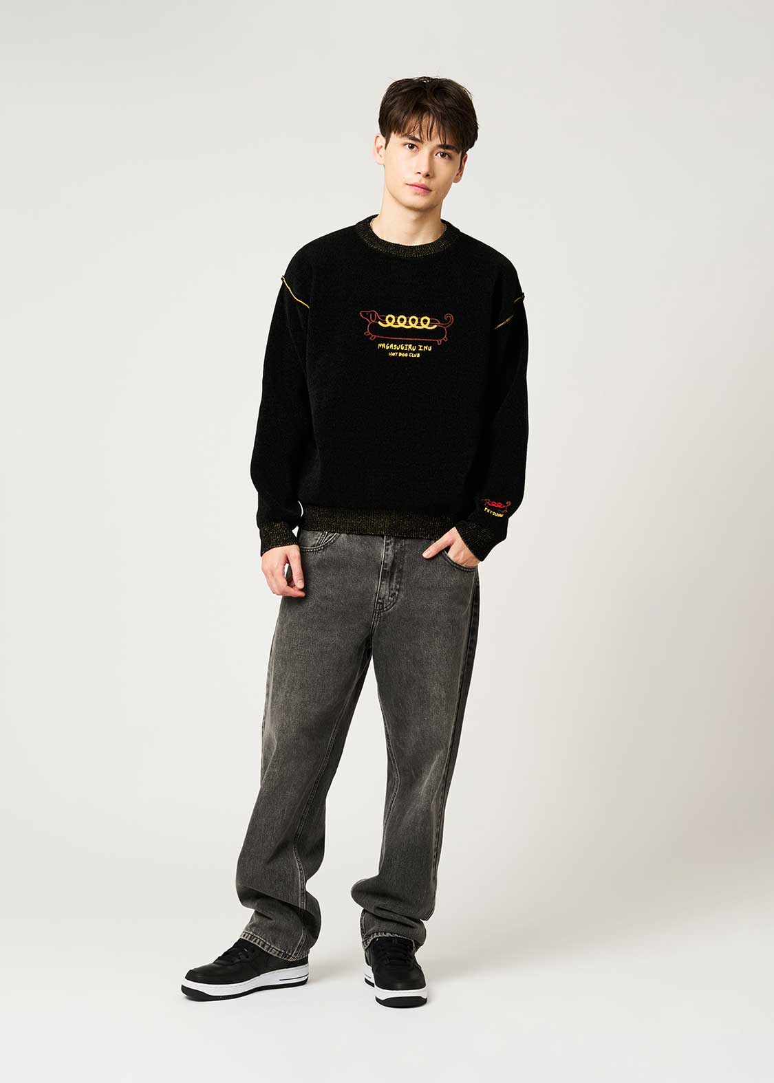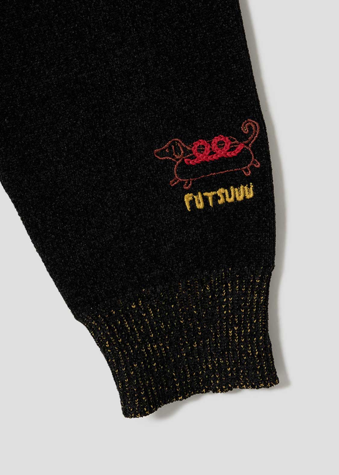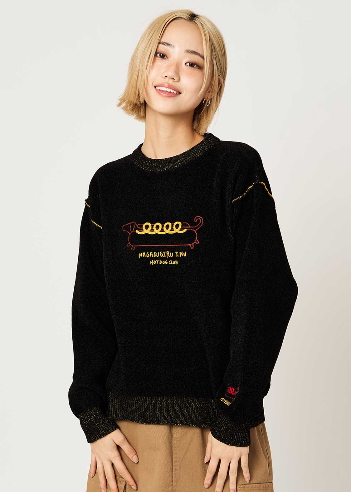 ・表にモールのような光沢感と毛足のある糸を使用したニットプルオーバー。