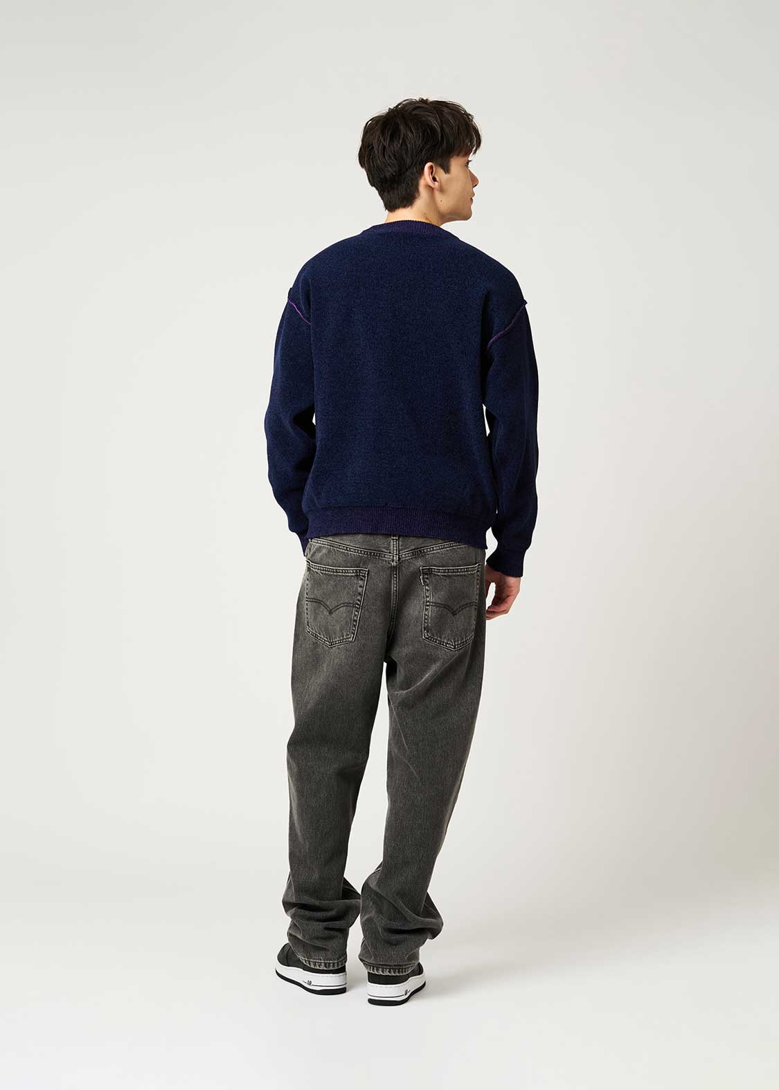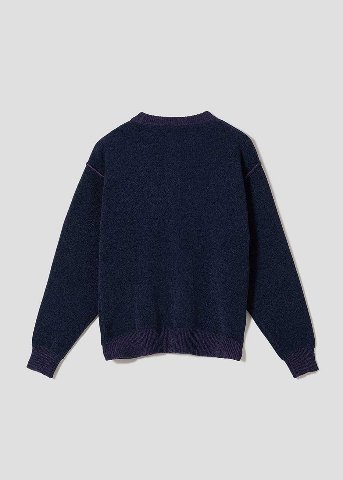 ・表にモールのような光沢感と毛足のある糸を使用したニットプルオーバー。