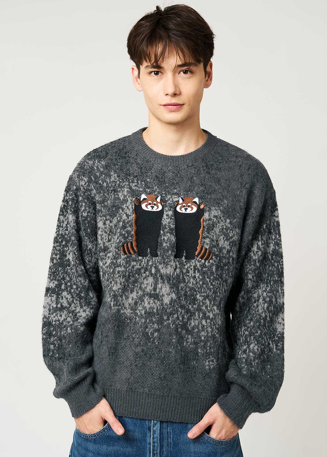 ・ジャカードでグラデーションを表現したファッショナブルなクルーネックニット。