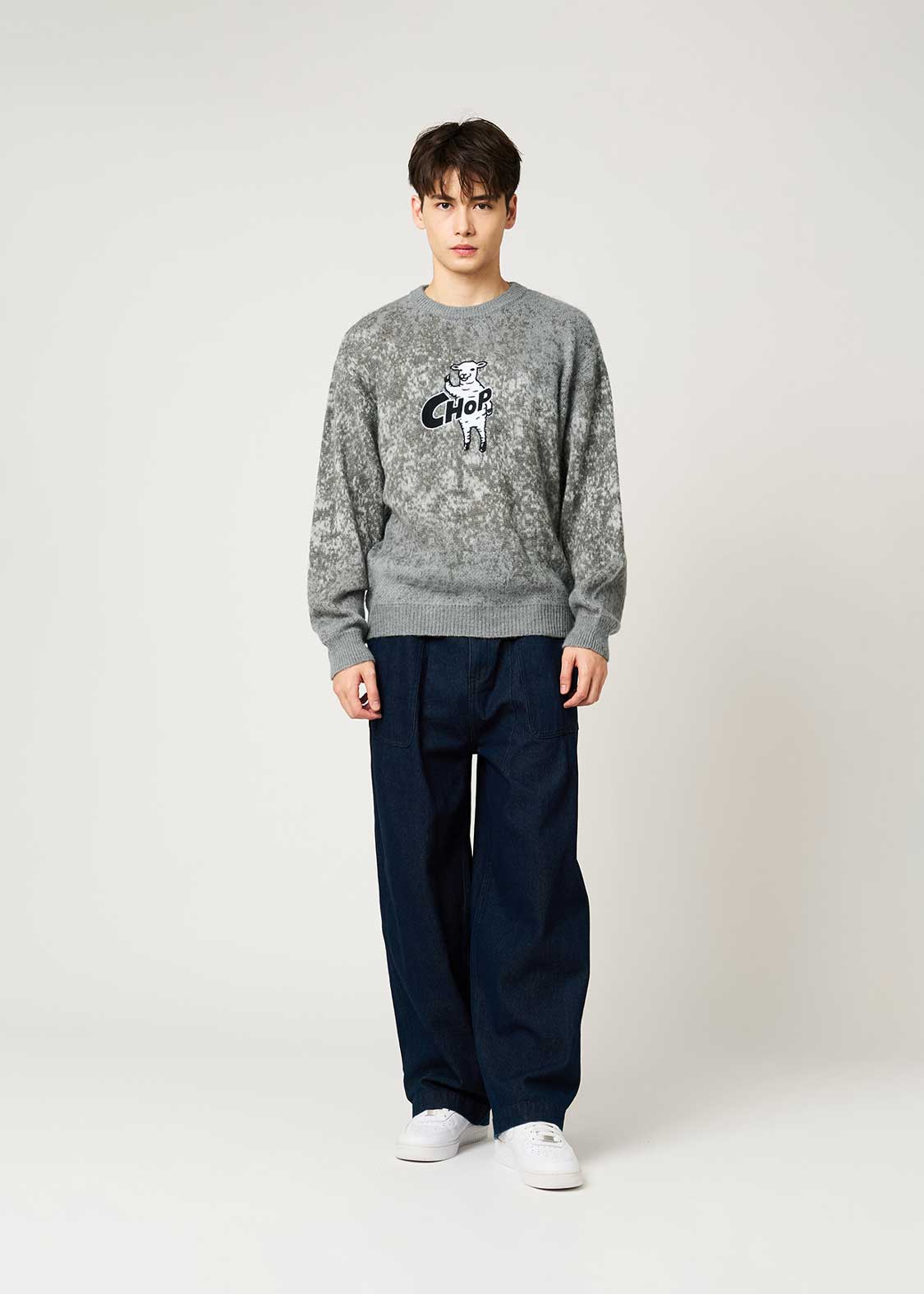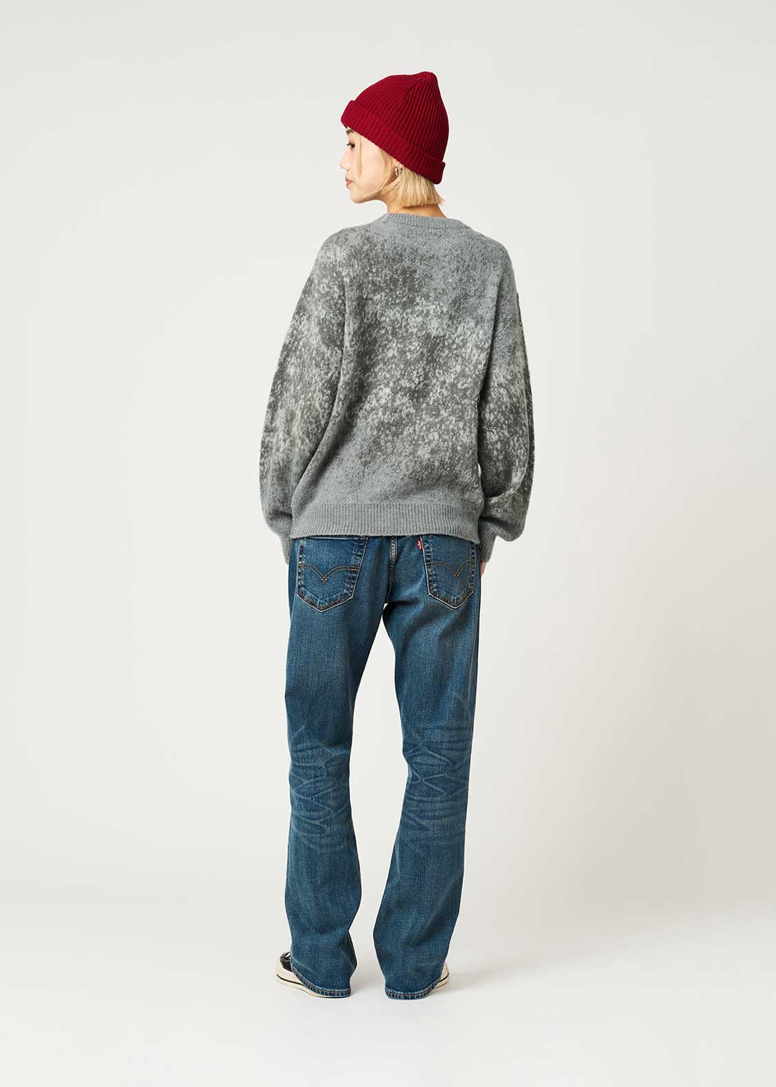 ・ジャカードでグラデーションを表現したファッショナブルなクルーネックニット。