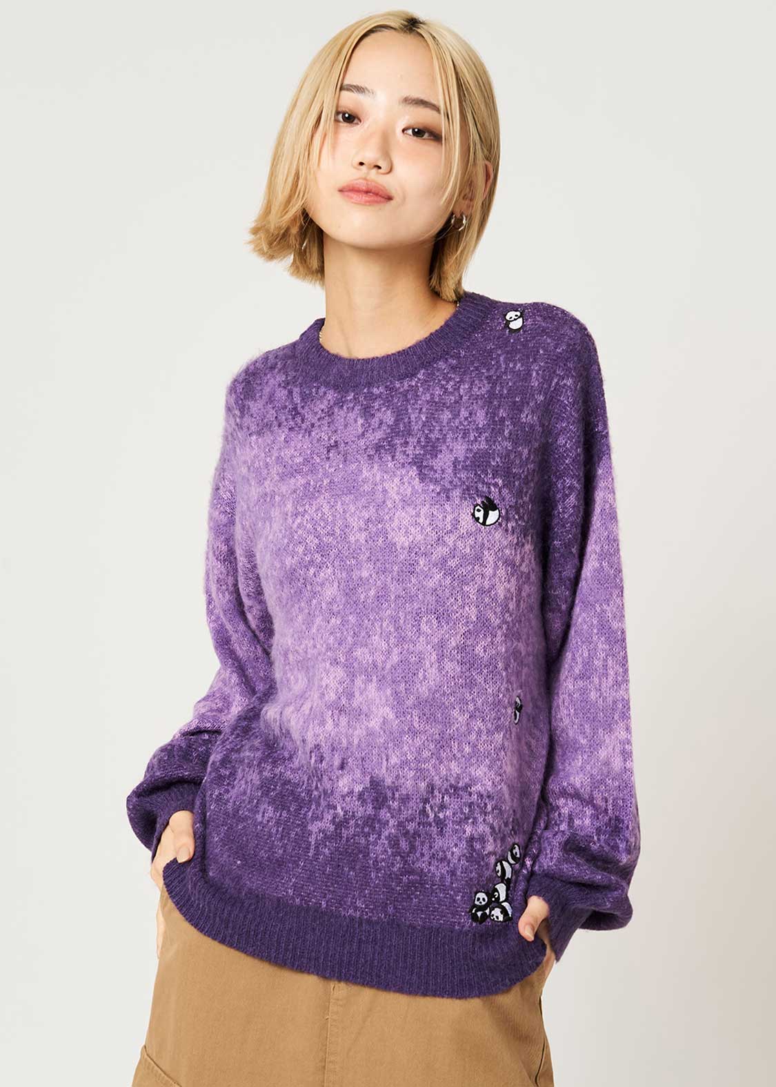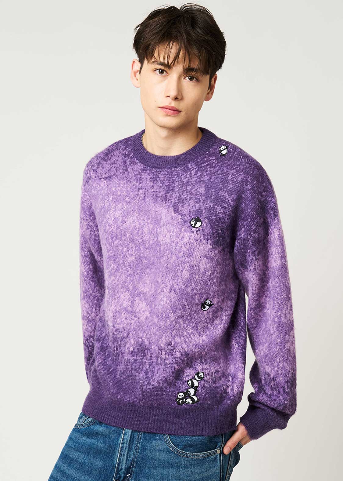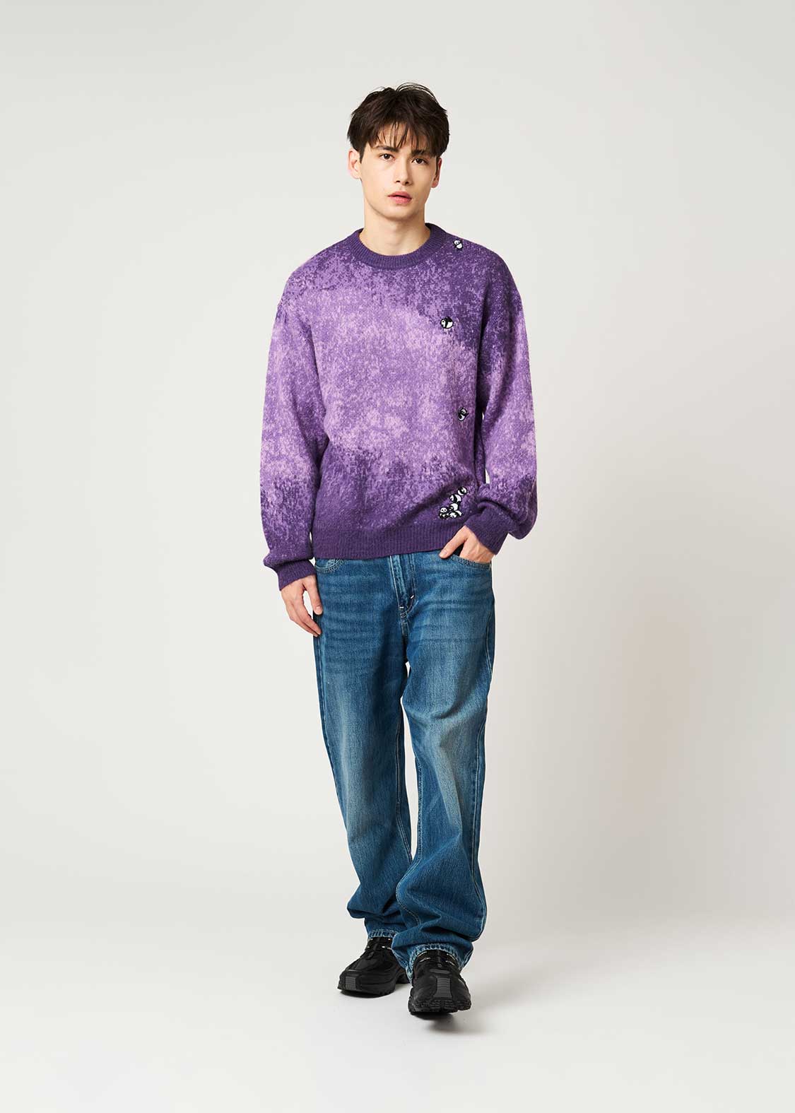 ・ジャカードでグラデーションを表現したファッショナブルなクルーネックニット。