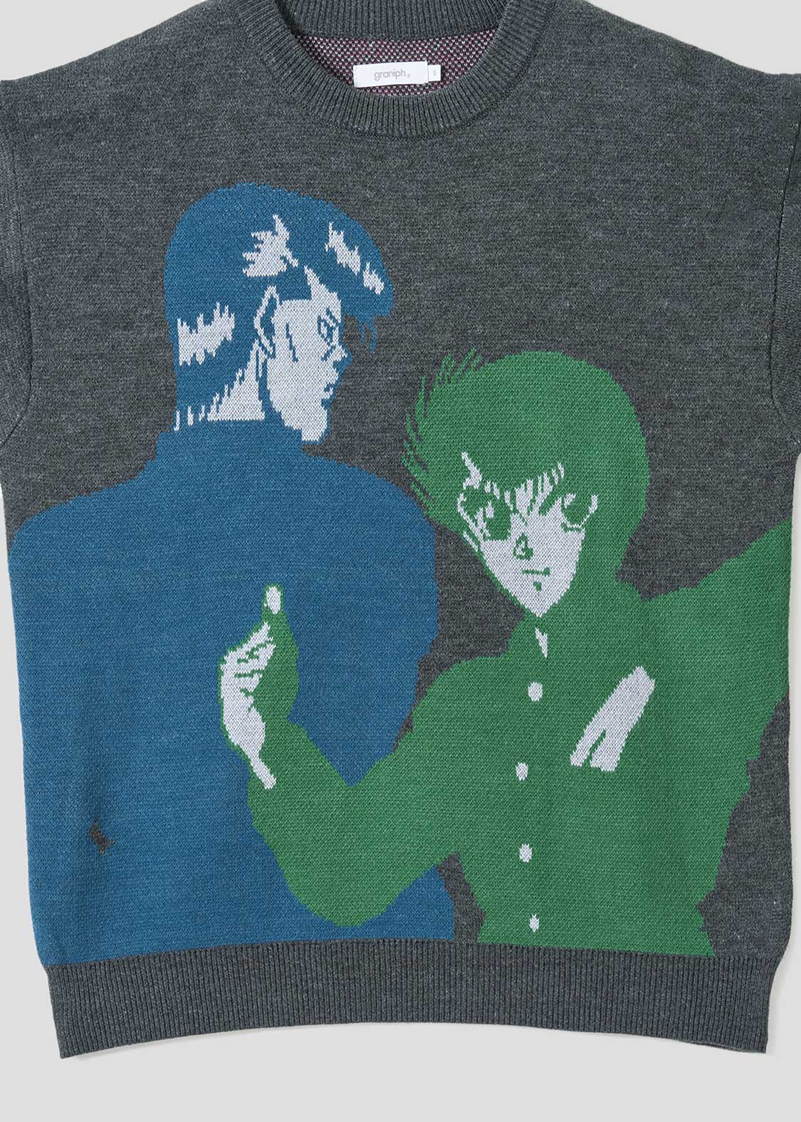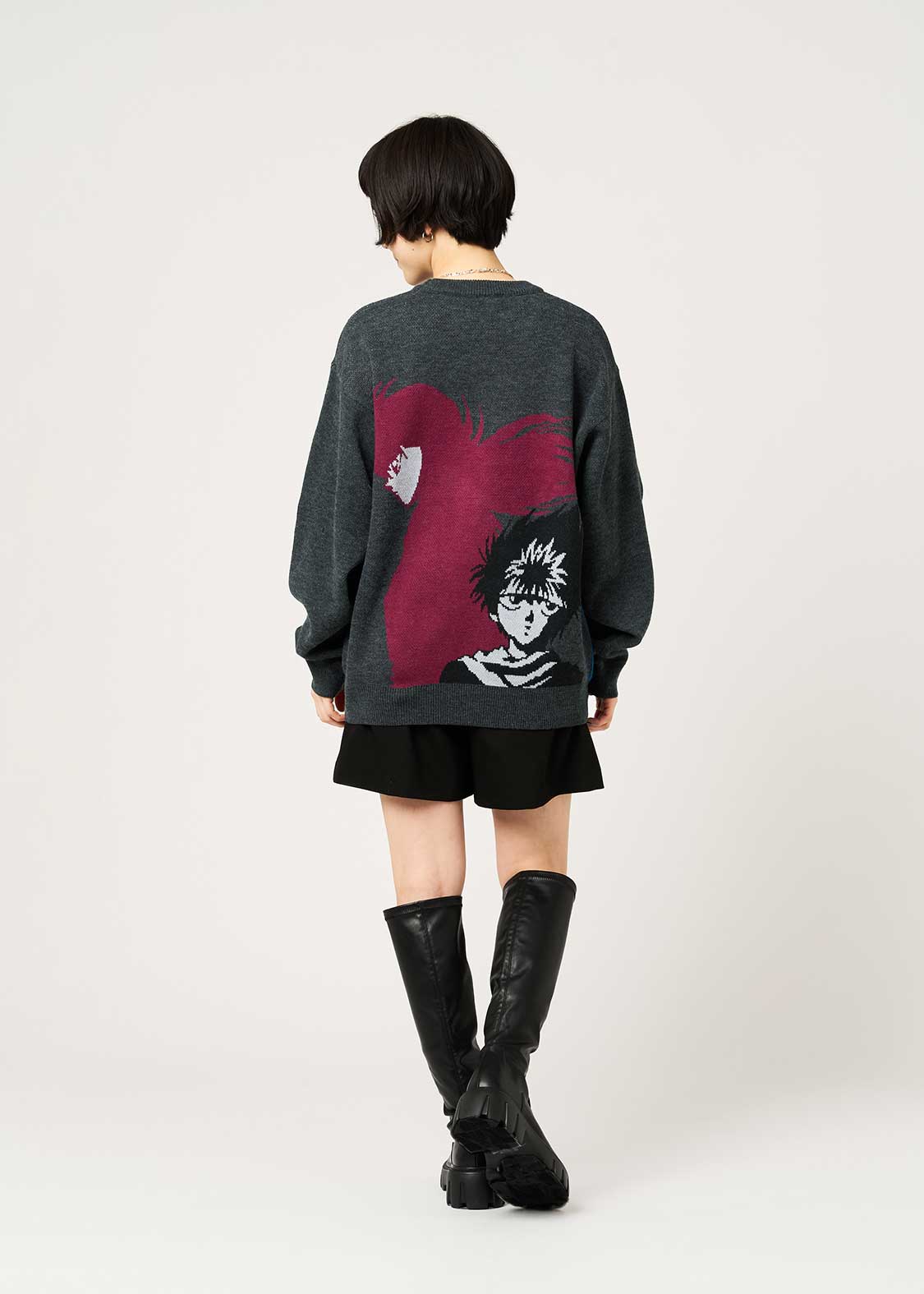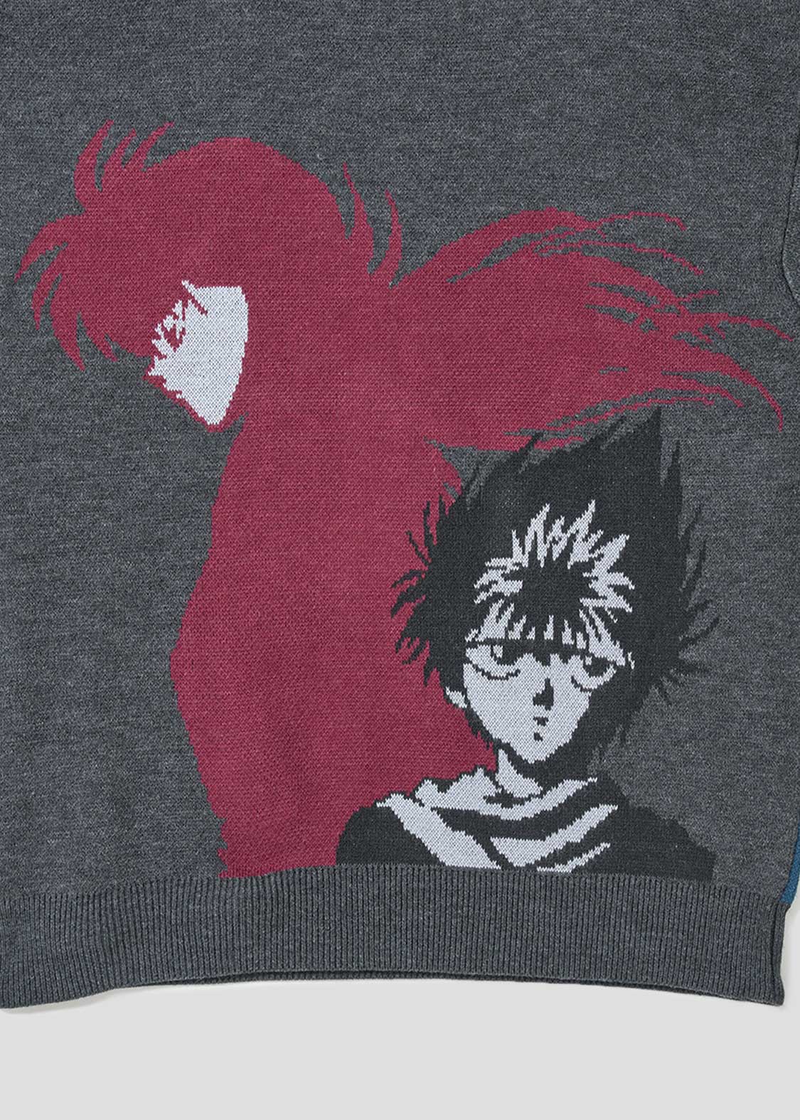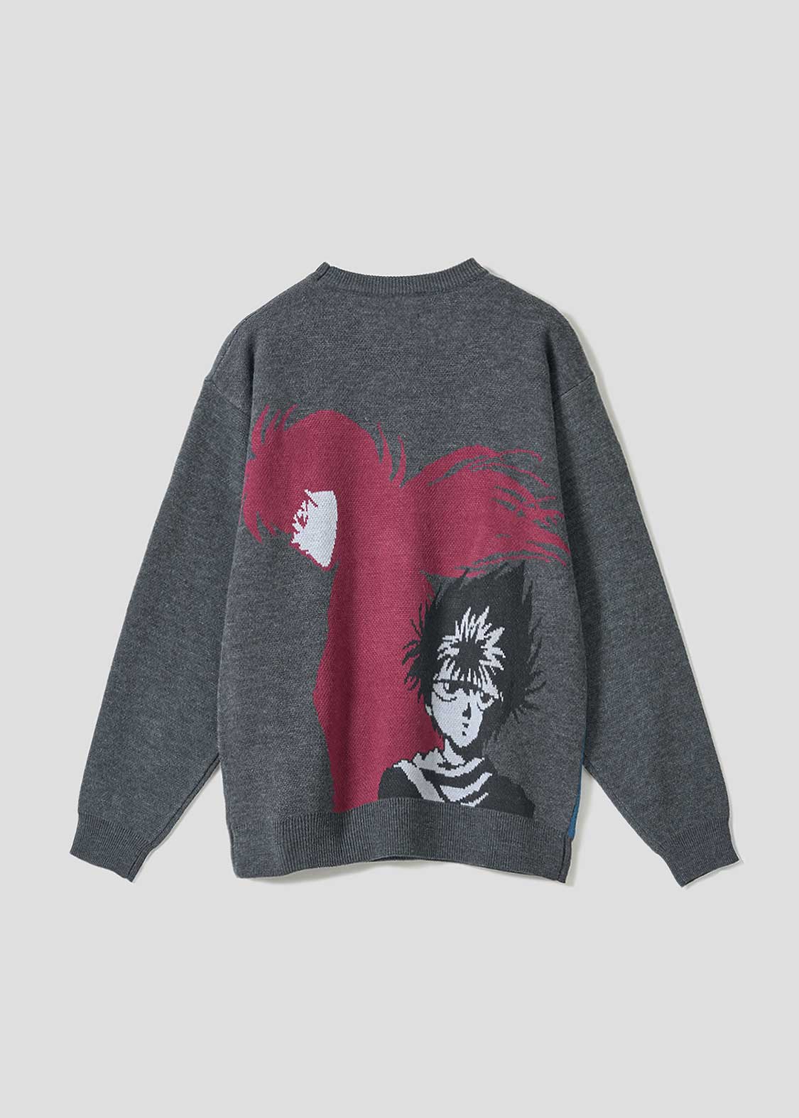 幽助、桑原、蔵馬、飛影の4人をジャカード編みで表現したデザイン。チーム戦ならこの4人にお任せ!スポーツや仕事、自分に勝ちたい日にオススメな1着です。