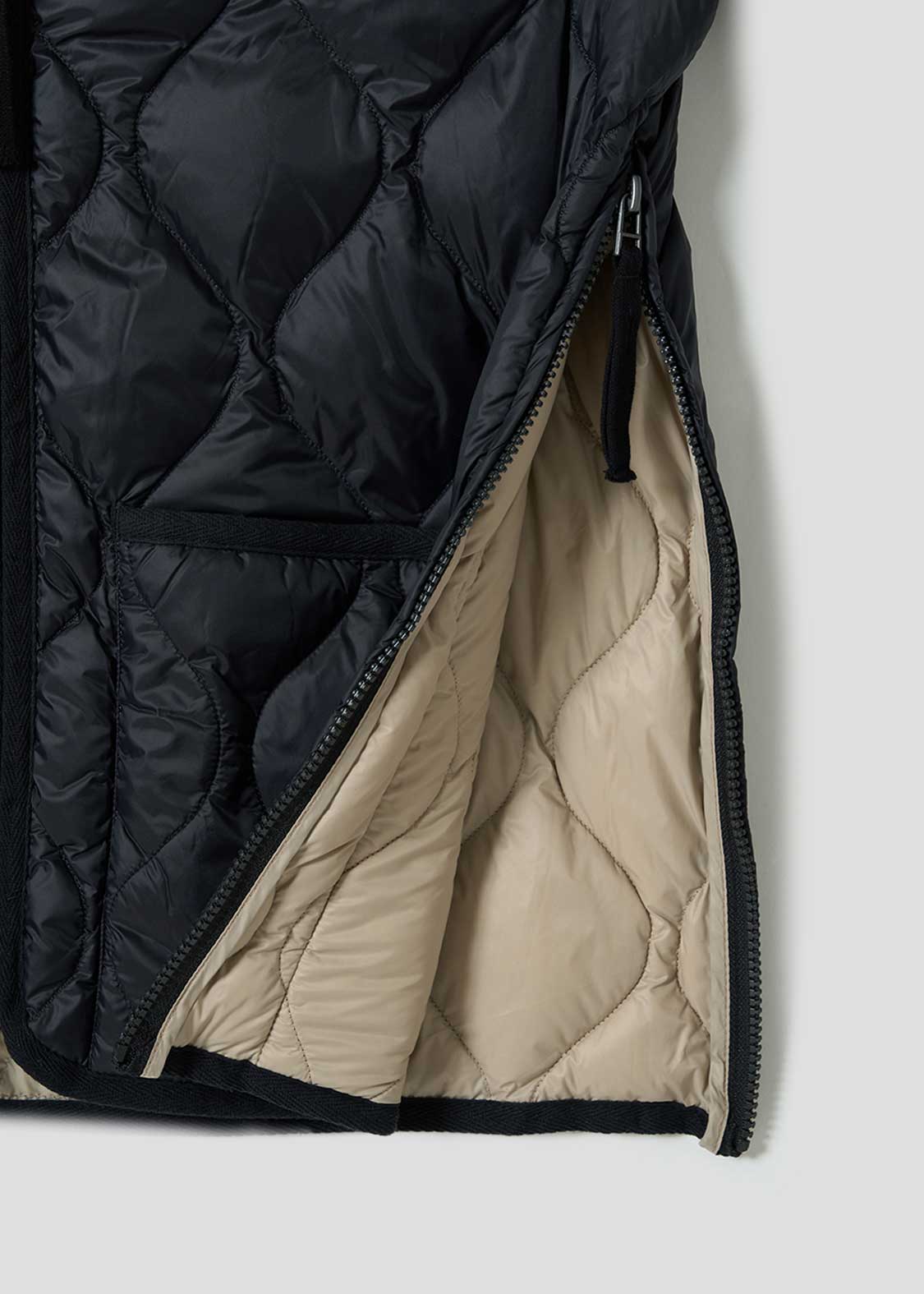 ・上下から開閉できるWジップファスナーは、スリットのように開き加減を調整できます。