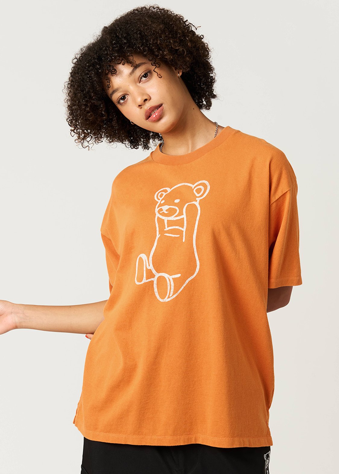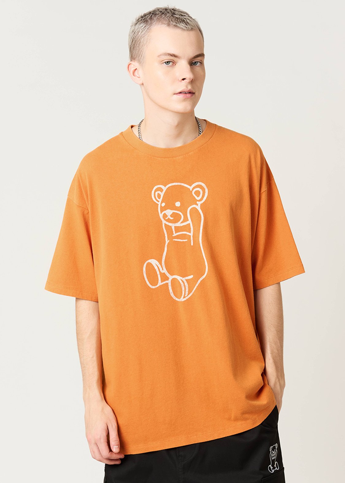 ポン!とばかりに頭をとるファニーなクマくん。ブラックなユーモアとキュートさが混じりあったインパクトのあるキャラクターです。