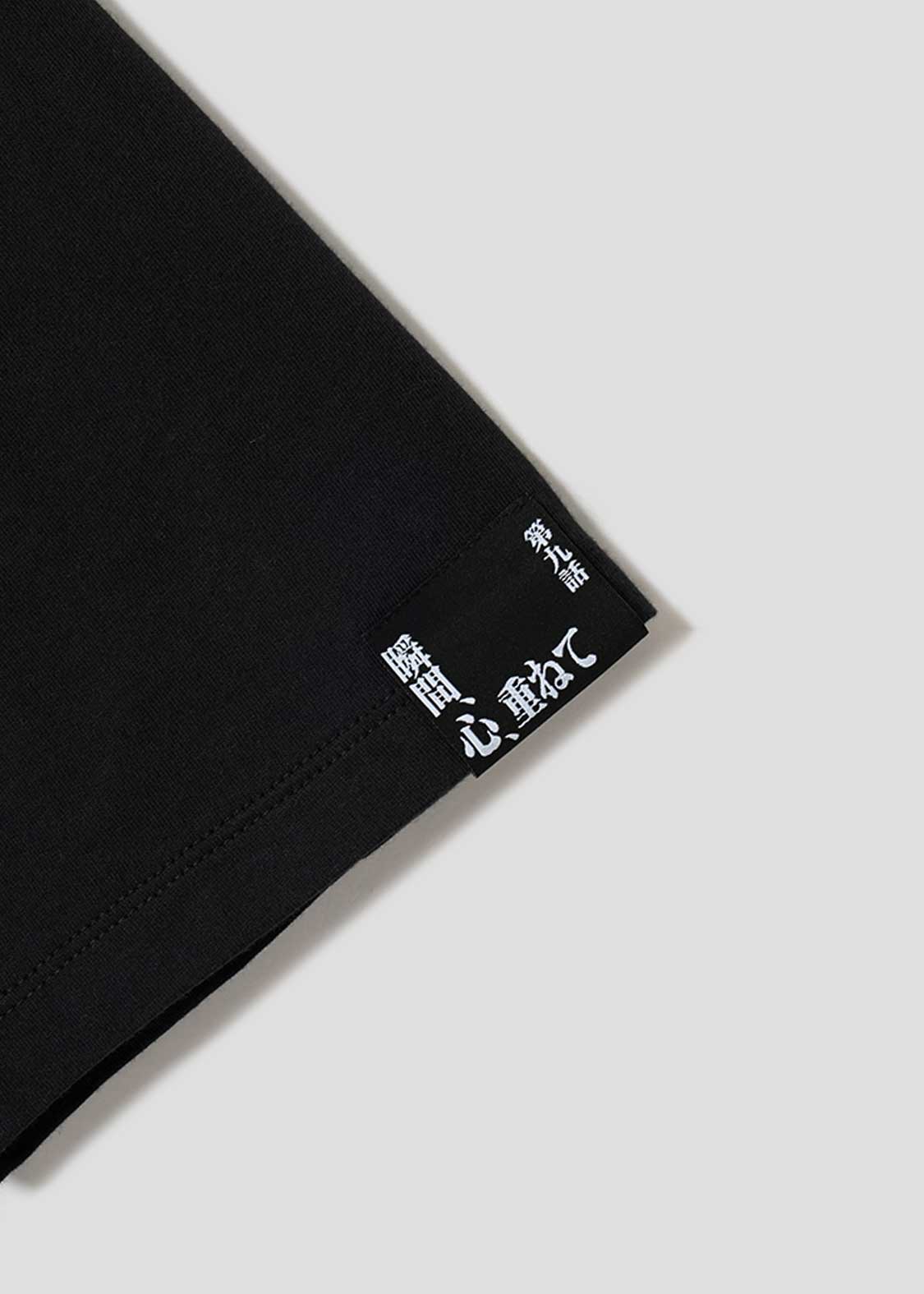 第九話「瞬間、心、重ねて」より。2体に分かれた第7使徒イスラフェルのコアを同時に壊すべく、完璧なユニゾンを見せる弐号機と初号機を生地のドッキングで表現したデザイン。首元にはエヴァの残りの活動可能時間、左袖にはタイトルの織りネームがそれぞれあしらわれているのがポイントです。バックには2体に分かれた使徒が刺繍されています。