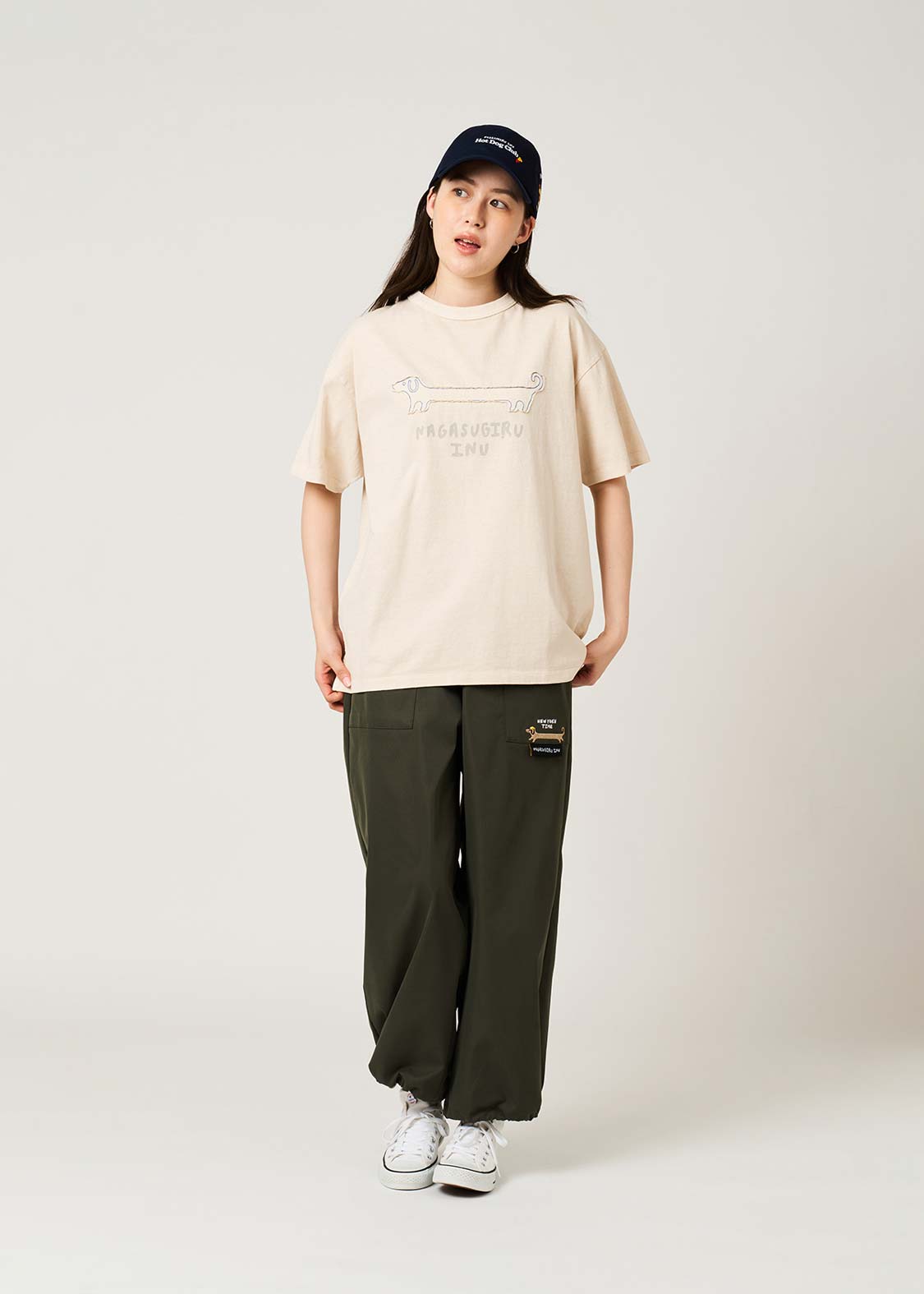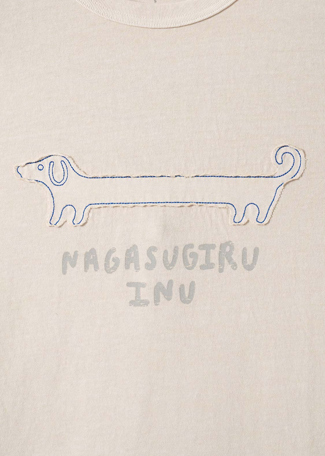 びよーんと伸びた長い胴、ロゴにもある通りまさに「ナガスギルイヌ」。決してダックスフントではなく、あくまで「ナガスギルイヌ」なのです。ユニークなコンセプト、思わず和んでしまう癒やしに溢れた作品です。
