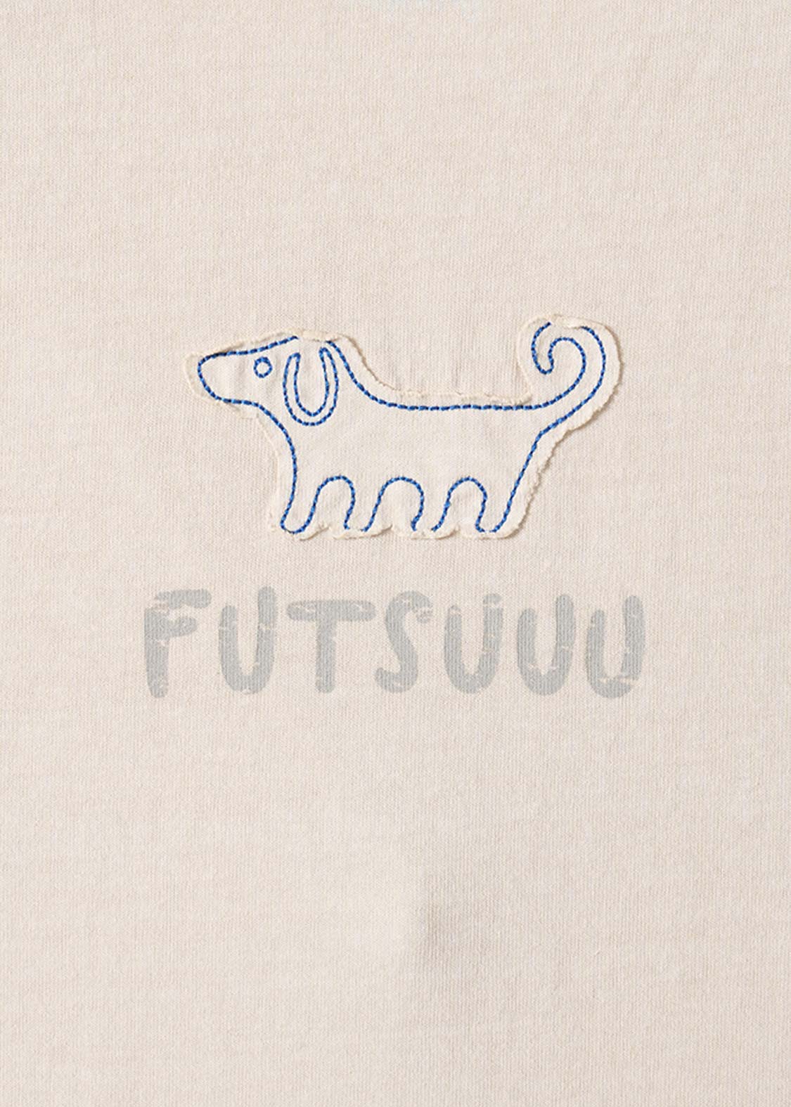 ・断ち切りの生地に配色ステッチを重ね、ピグメント加工を施した表情が古着を手に取ったときのような落ち着いた空気をつくります。