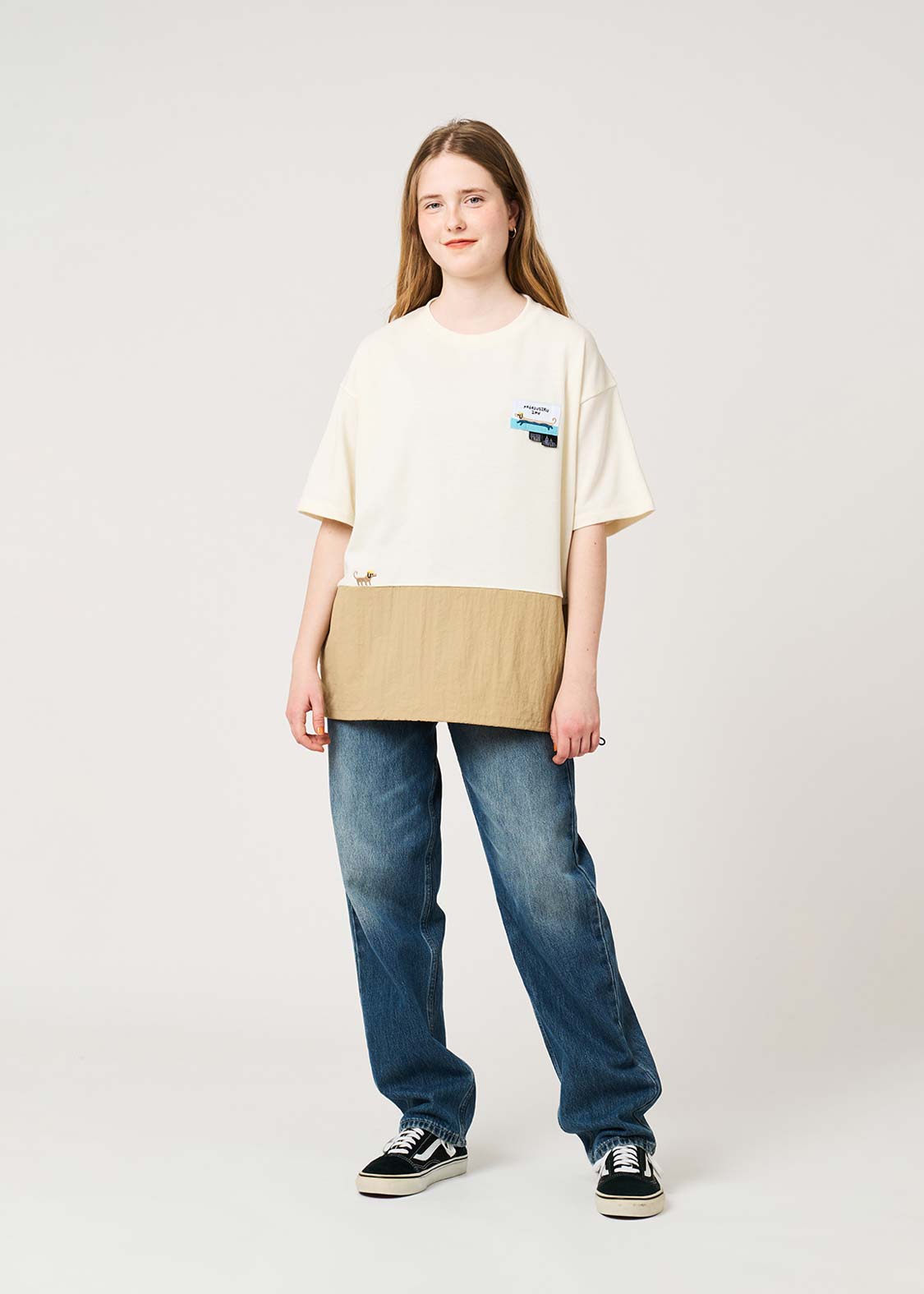 ・ミニ裏毛とナイロンを組み合わせた、異なる質感が映えるTシャツです。