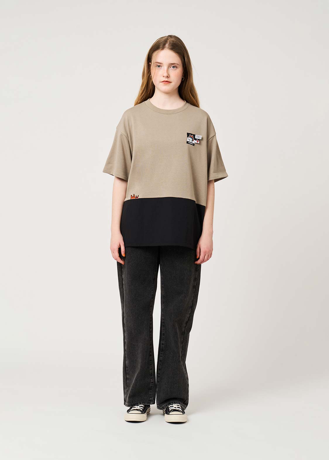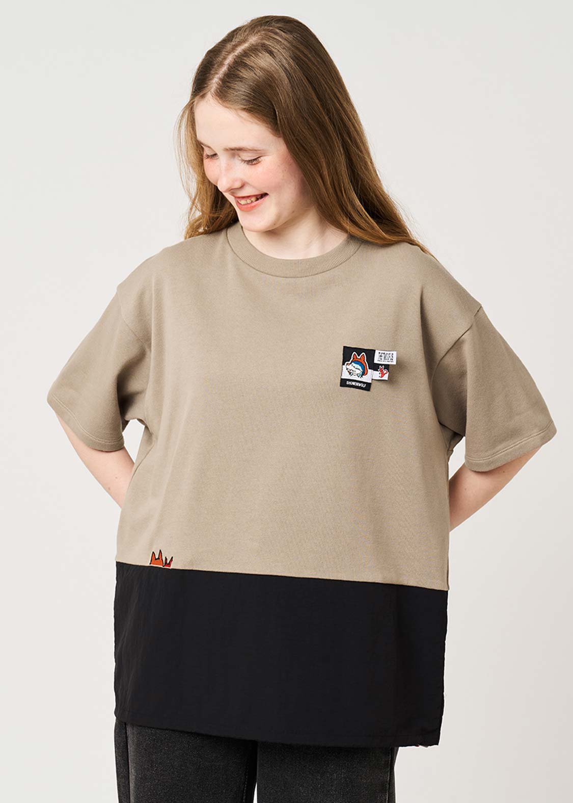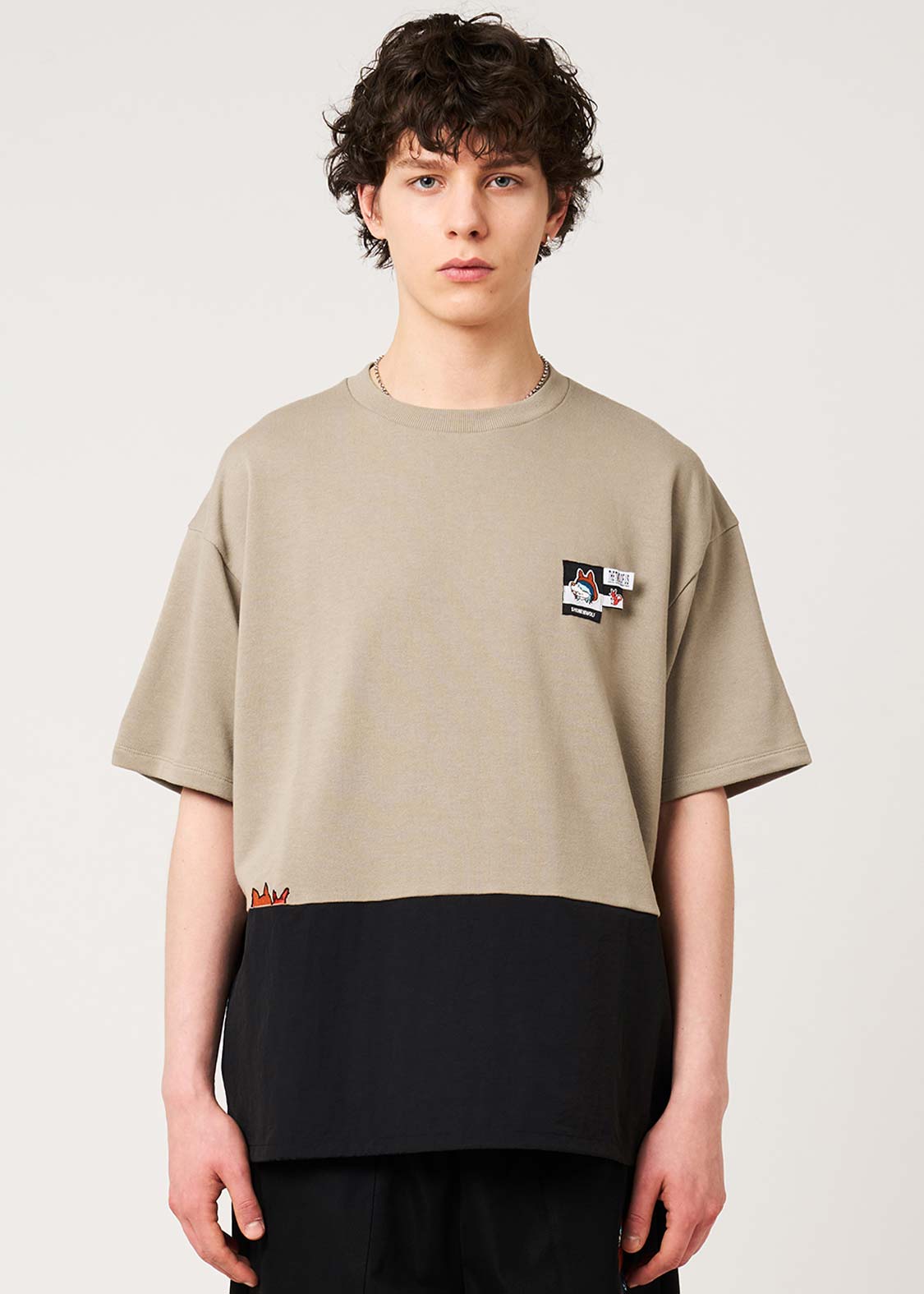 ・ミニ裏毛とナイロンを組み合わせた、異なる質感が映えるTシャツです。