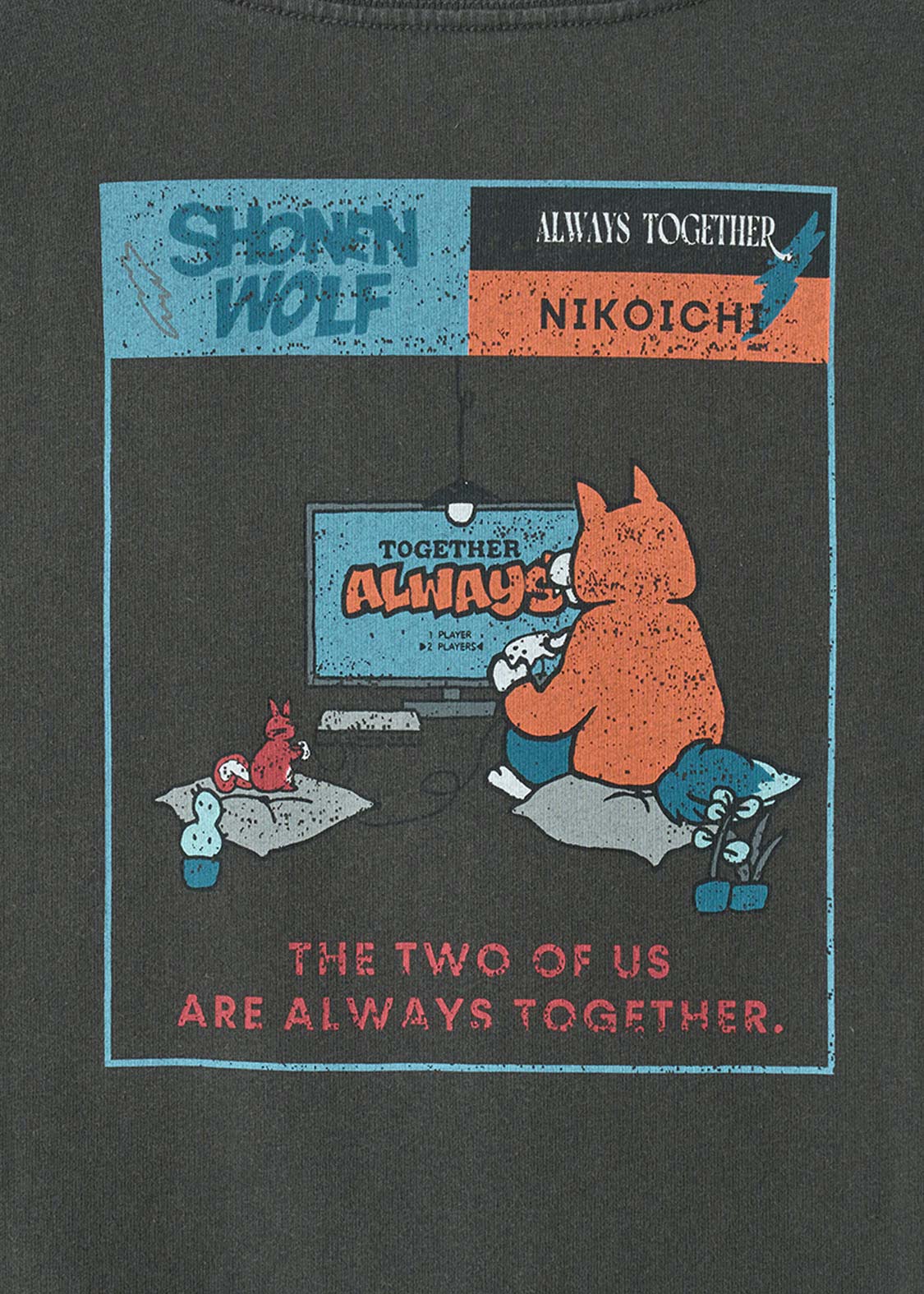 幼い頃公園で出会った大親友のリスくんと、いつも一緒の心優しいオオカミ少年。インナーカラーをいれたヘアスタイルが特徴です。ポップなイラストタッチが魅力のデザイン。