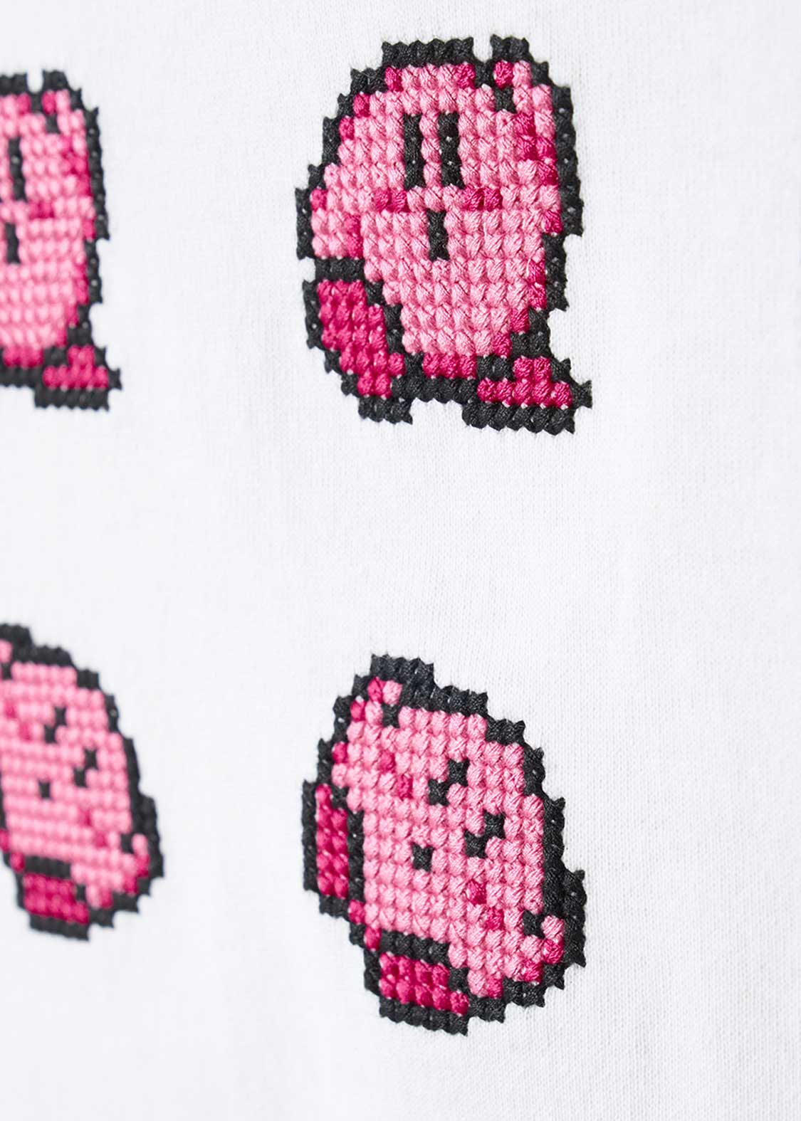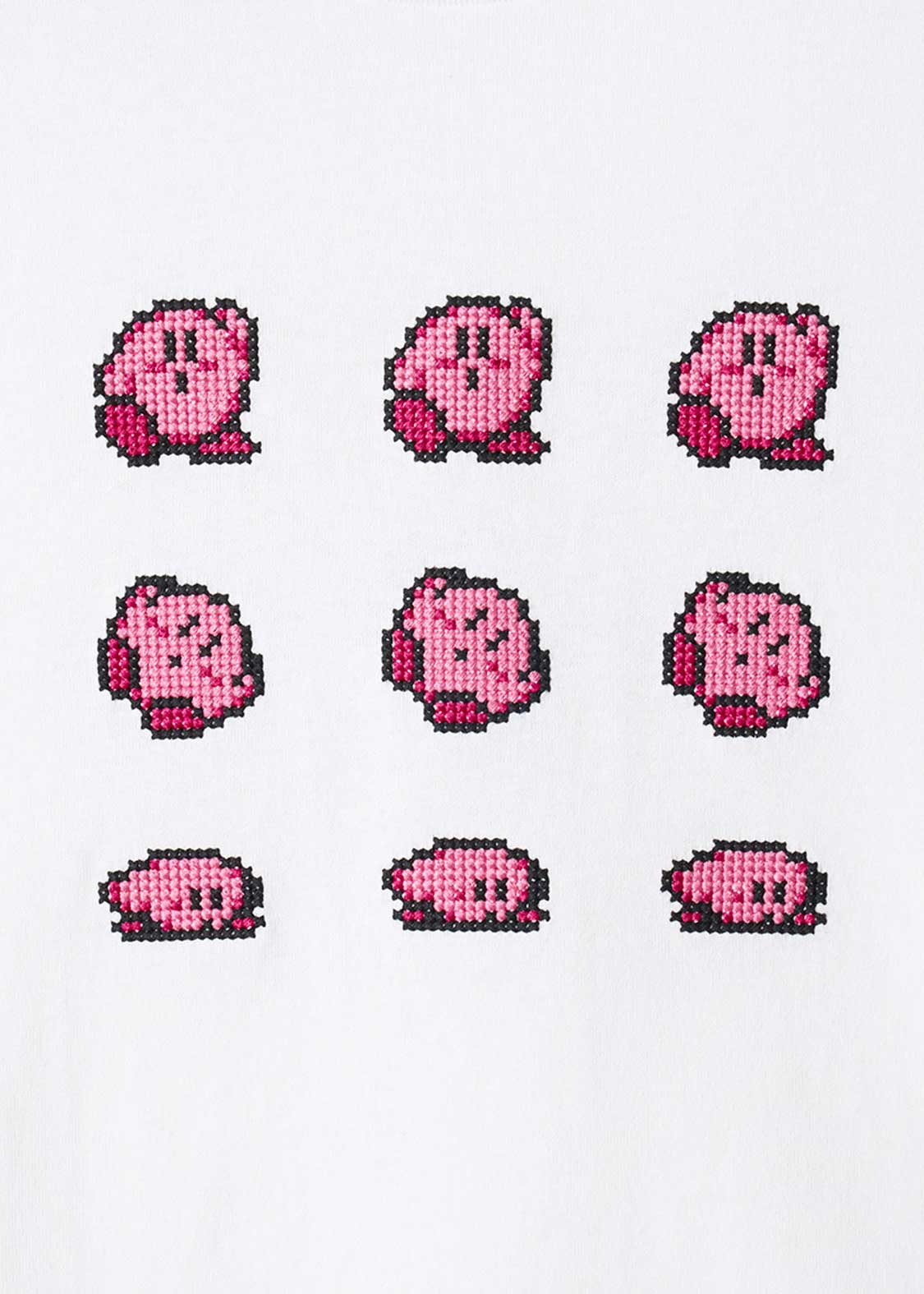 ゲームシリーズでお馴染みのクリアダンスを踊るカービィをクロスステッチで表現しました。思わず踊り出したくなるあの音楽が聴こえてきそうなデザインです。