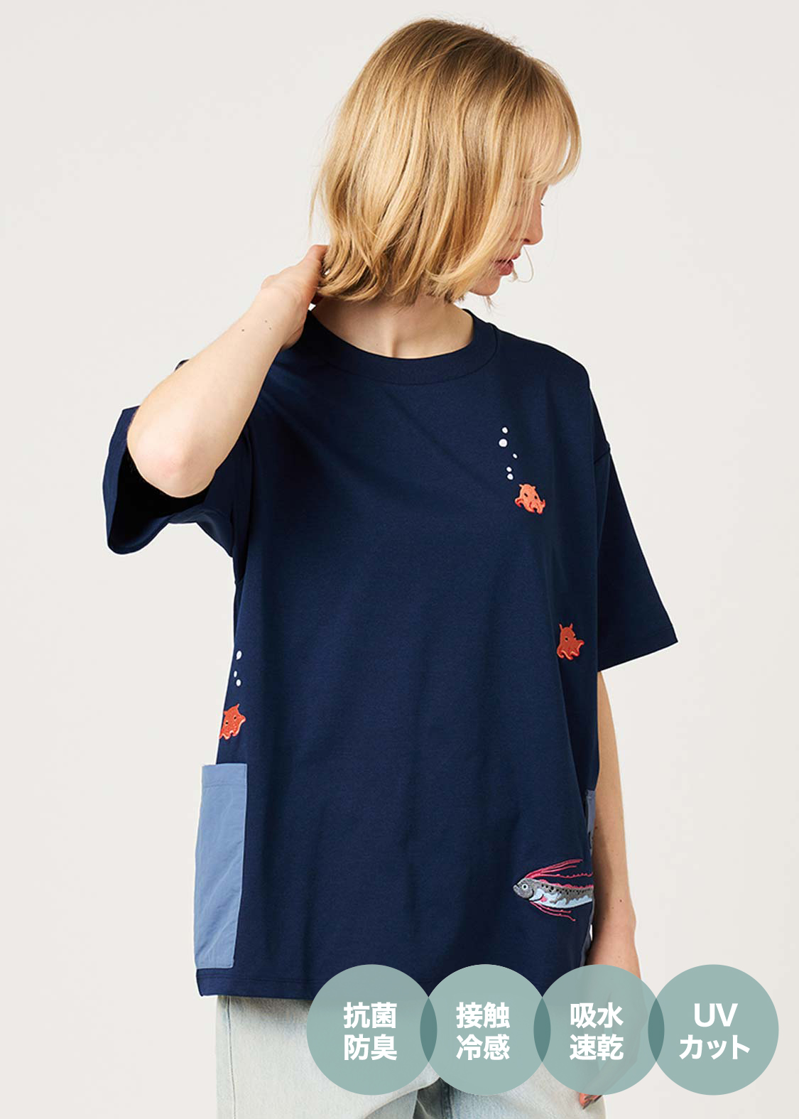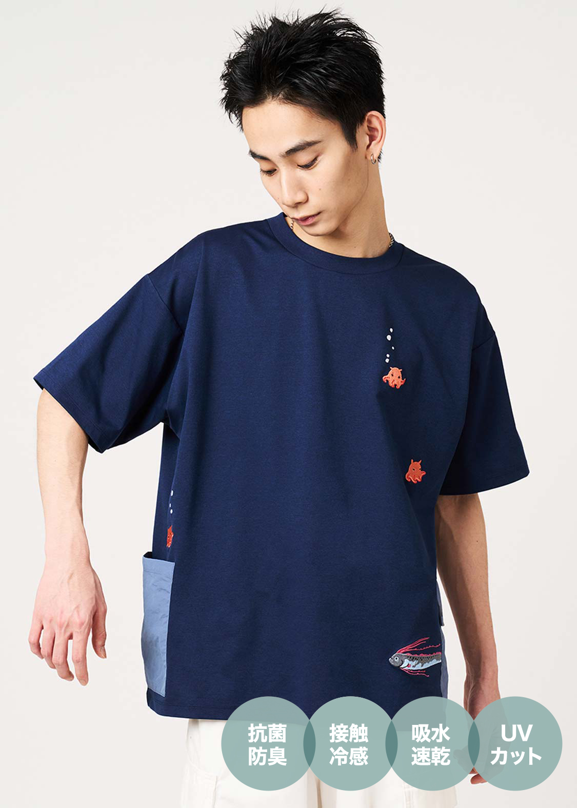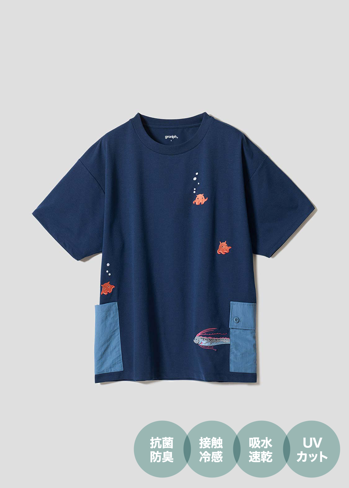 ・身頃に多機能素材「WONDER DRY」を使用したTシャツです。