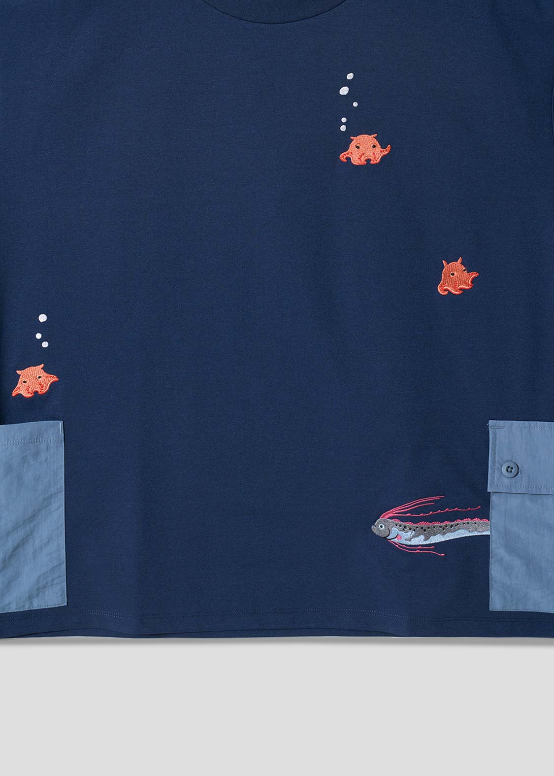 ふわふわと深海を漂っているキッカイな生き物。海洋生物ファンから絶大な人気をほこる「メンダコ」をモチーフにしたデザイン。マニアな味わいがポイントです。