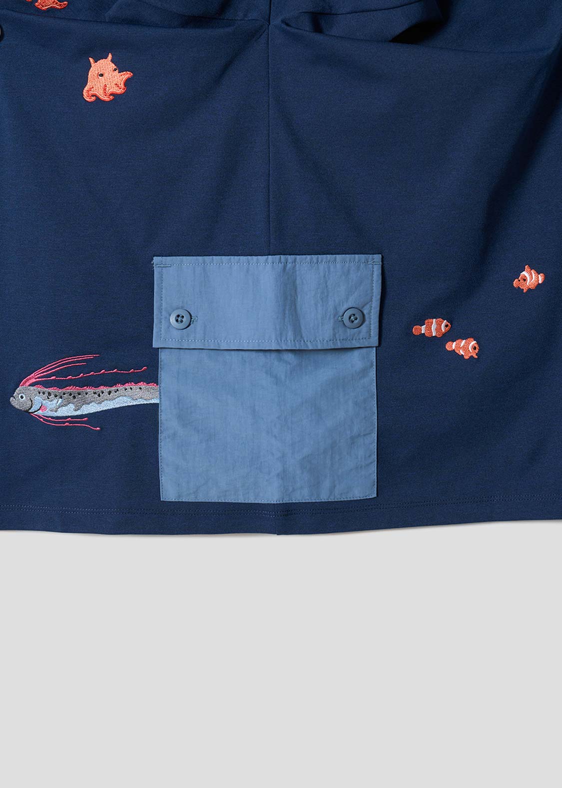 ・ポケットにはナイロンワッシャー生地を使用し、異素材の組み合わせがアクセントになっています。