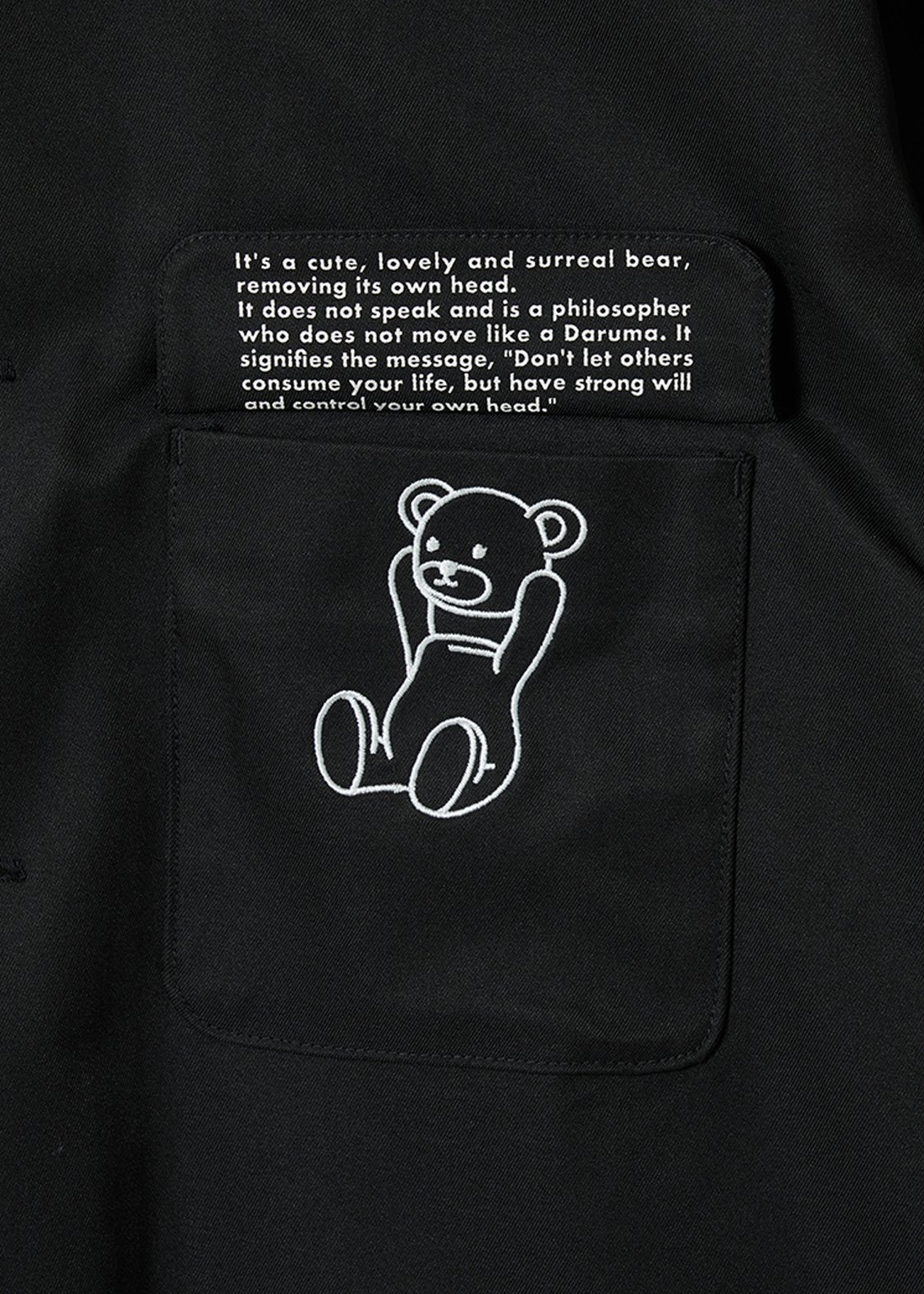 ・胸ポケットのフラップの裏にはコントロールベアのコンセプトメッセージをプリントしています。