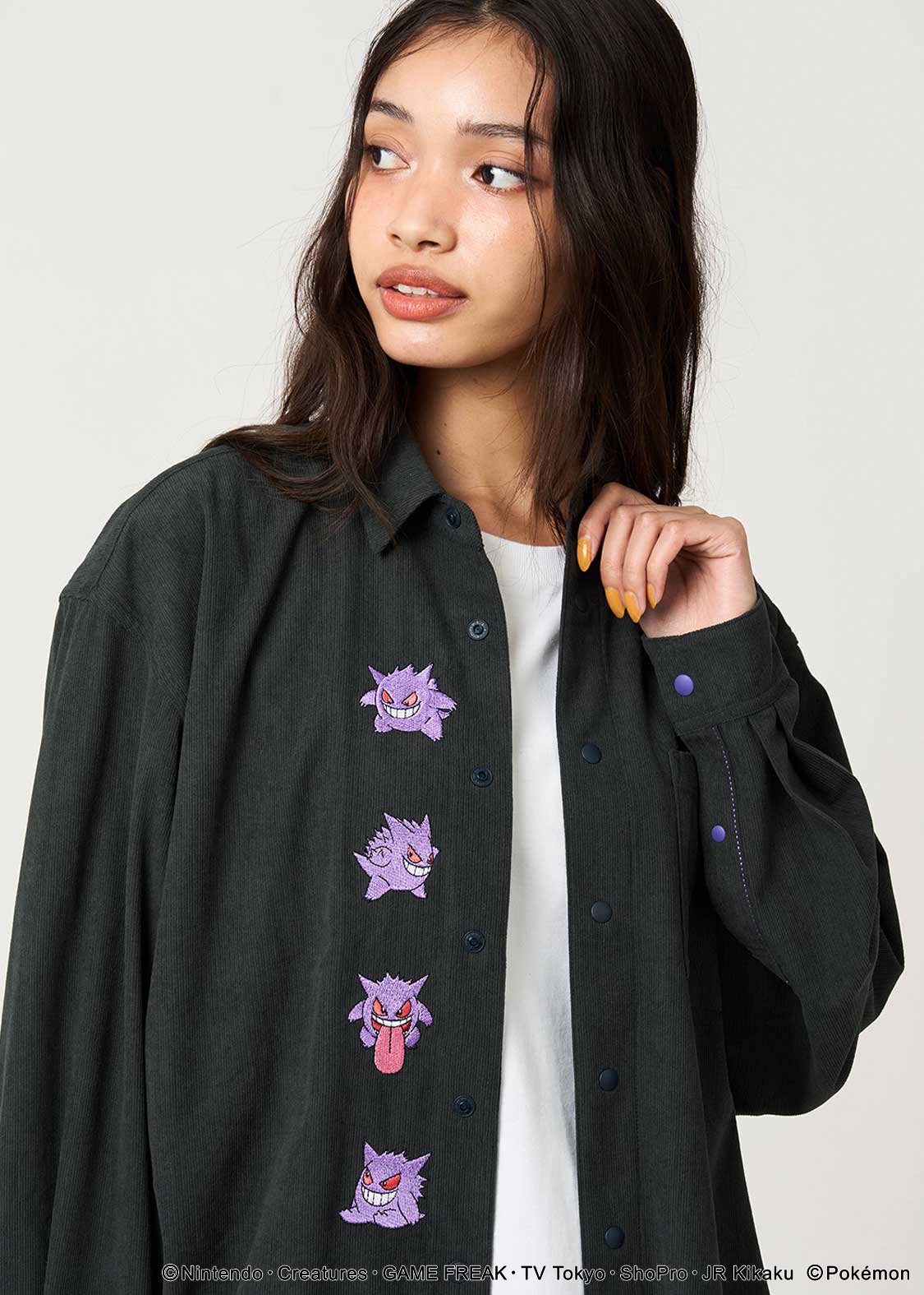 コーデュロイのマットな生地とゲンガーの刺繍がとても可愛い。ボタンはパチパチと外せるタイプでサッと着れて、冬場にヘビロテしたいので再入荷されたらもう一着買おうかなと思ってます。