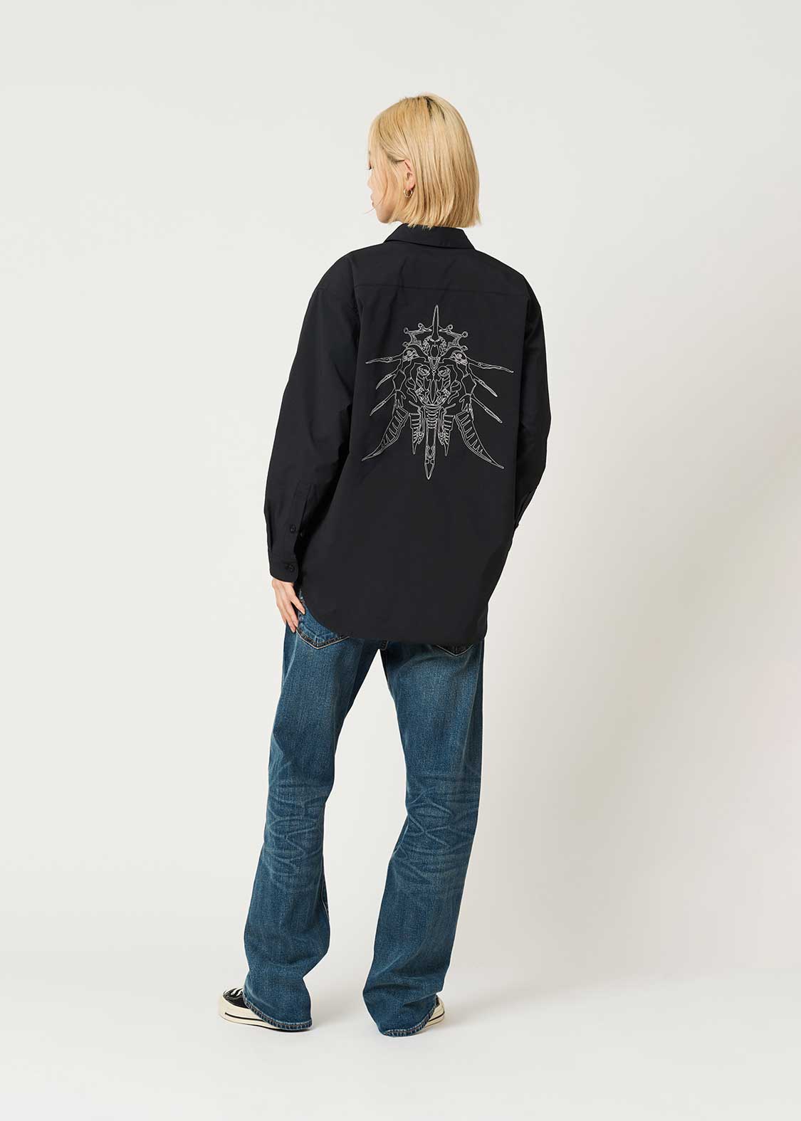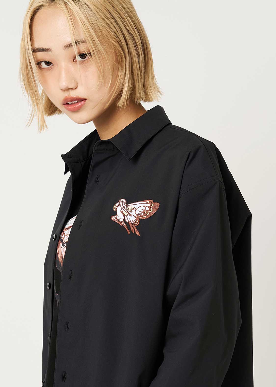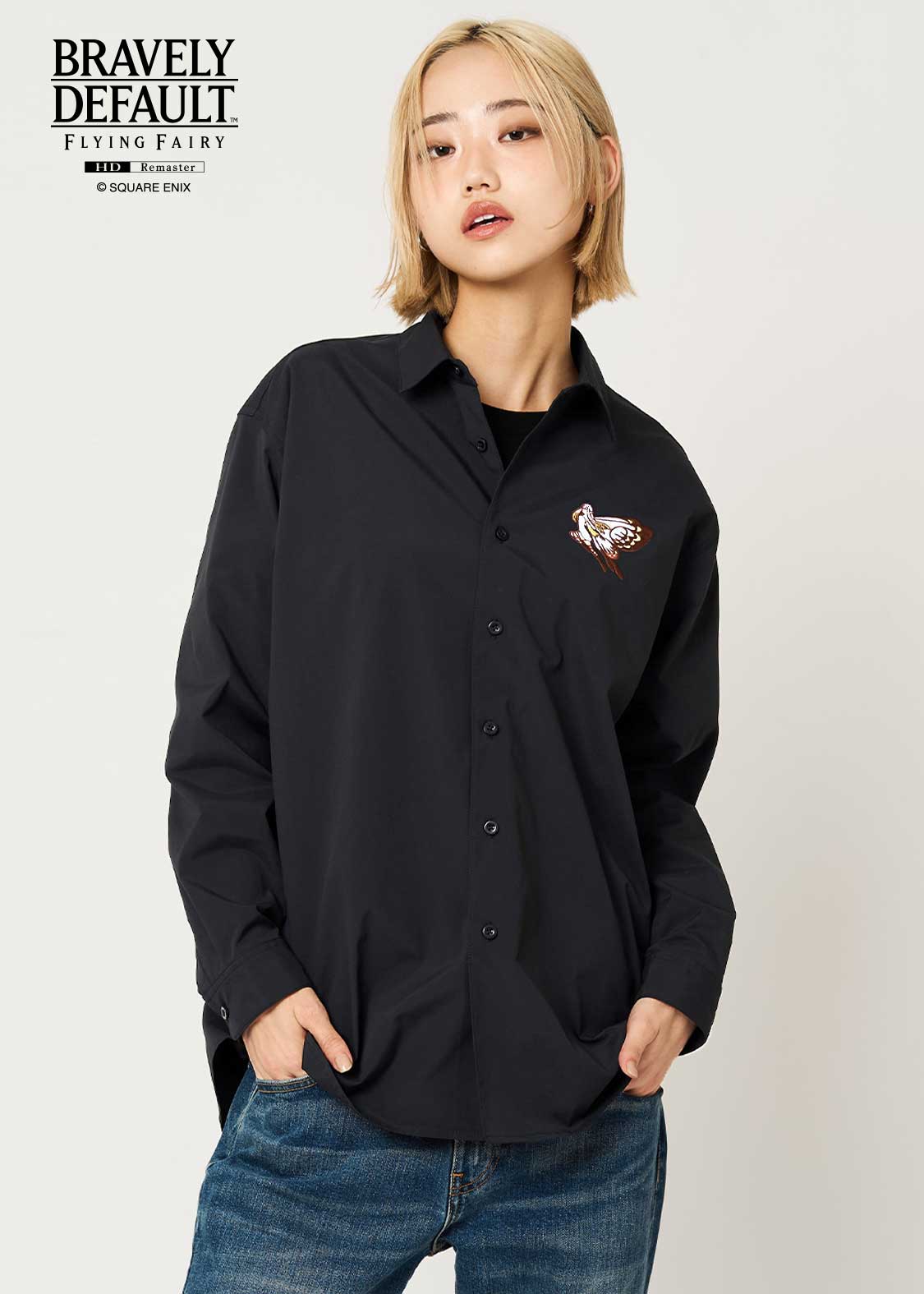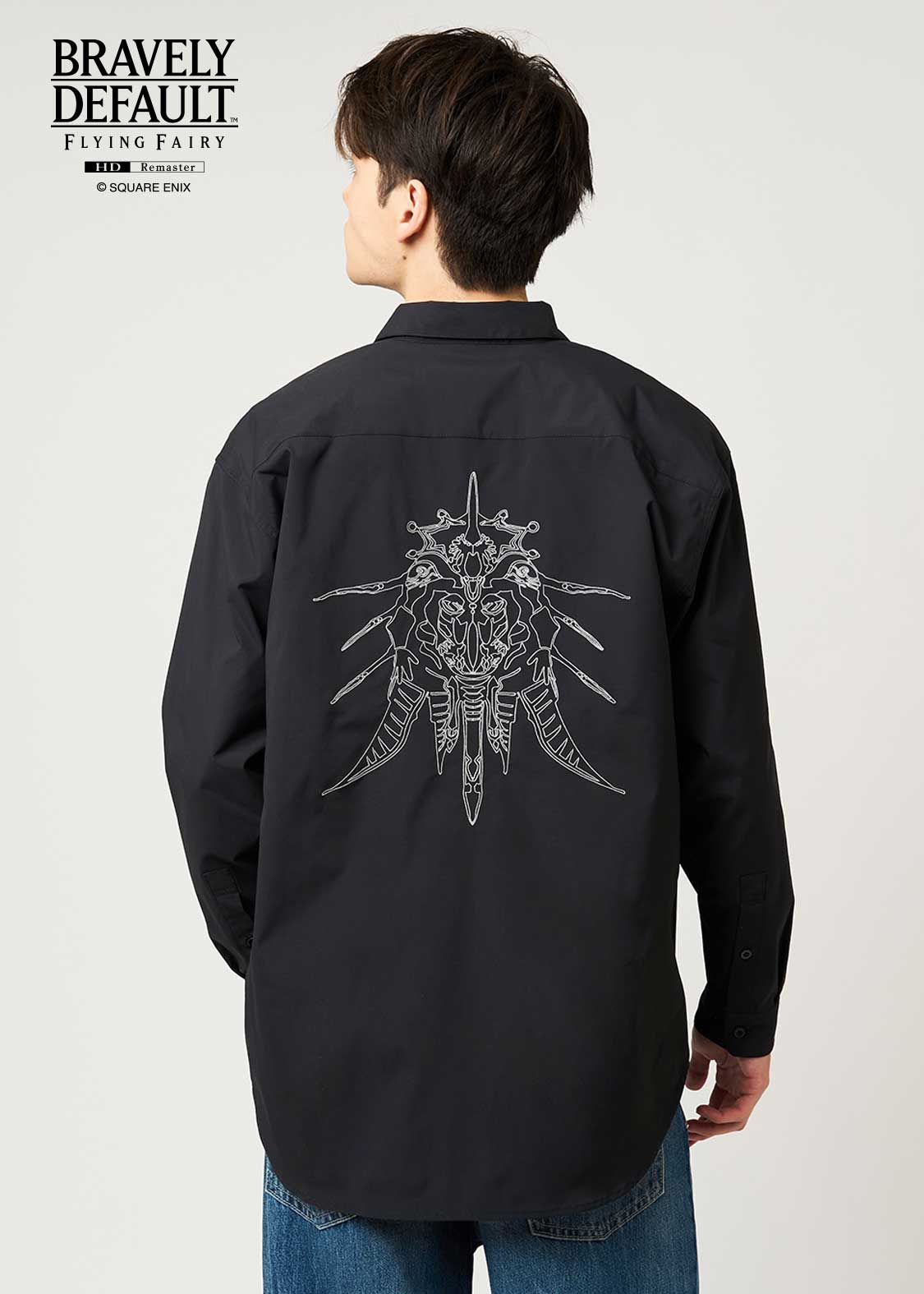 『ブレイブリーデフォルト』より。闇のオーロラに潜む破壊神ウロボロスをバックに刺繍したクールなデザイン。胸元にはなぜかエアリーがワンポイント刺繍されています。