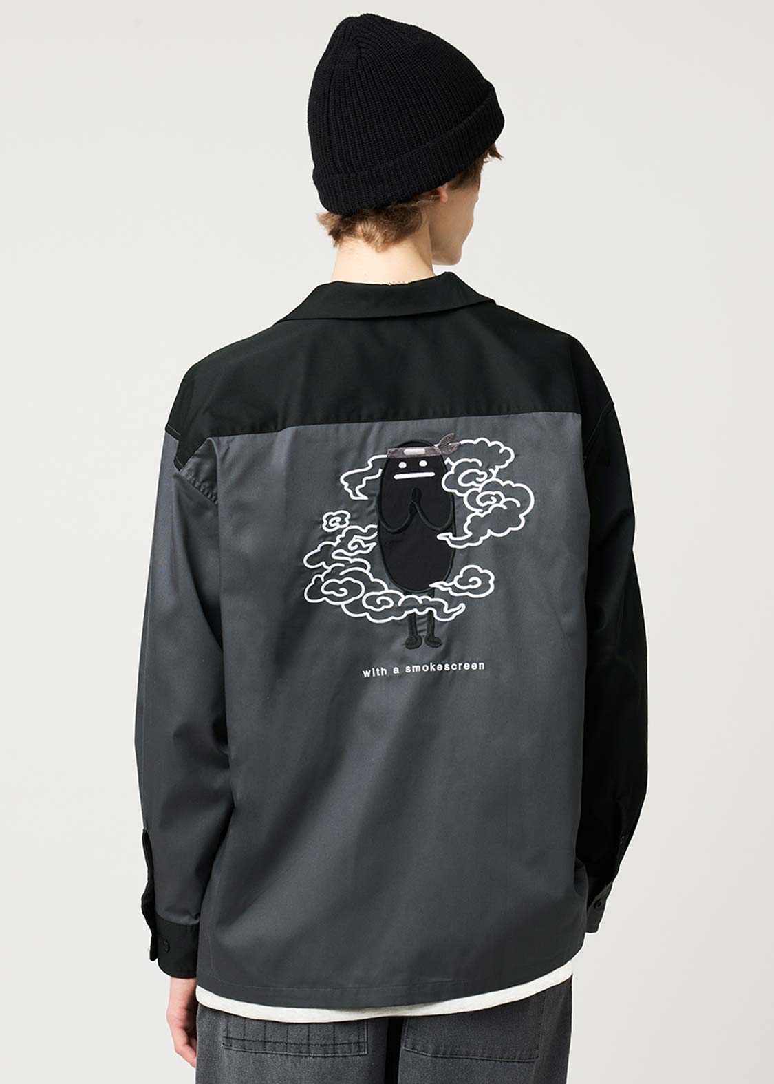 ・袖口にはボタンを2つ配し、オーバーサイズでも手元が落ち着くつくりにしています。
