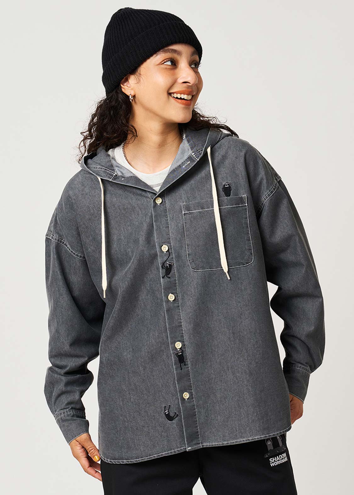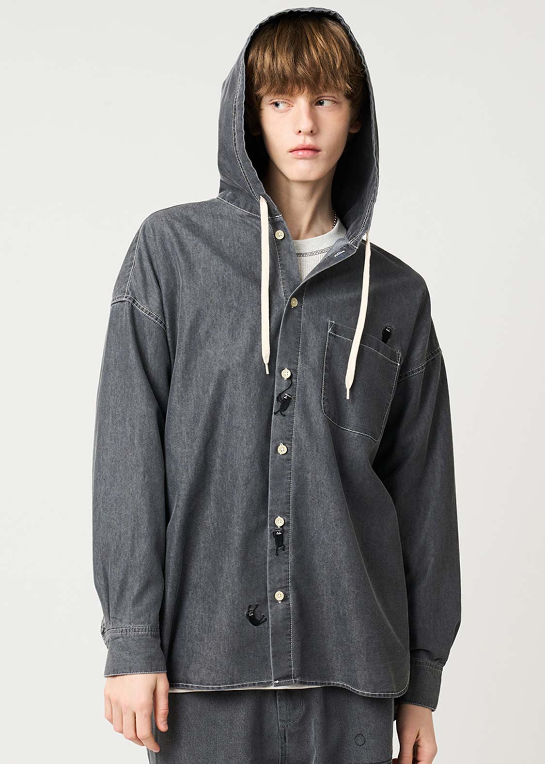 ・ゆったりとしたシルエットの、フード付きデニムシャツです。
