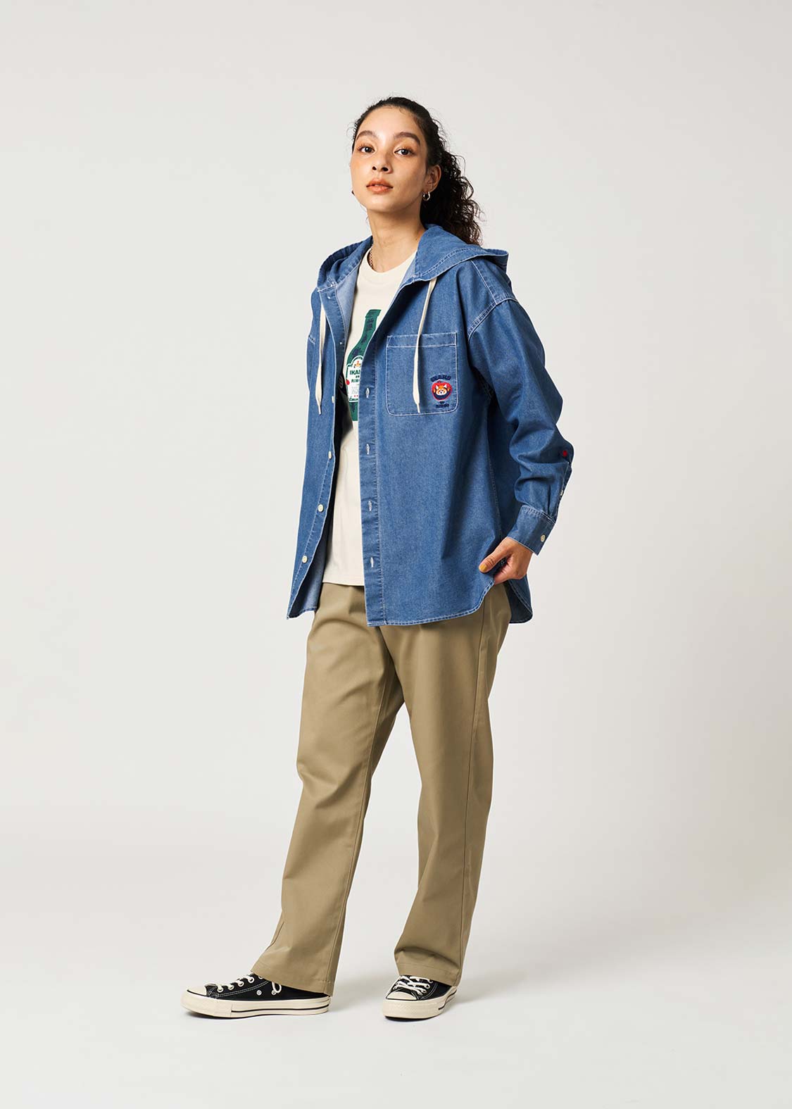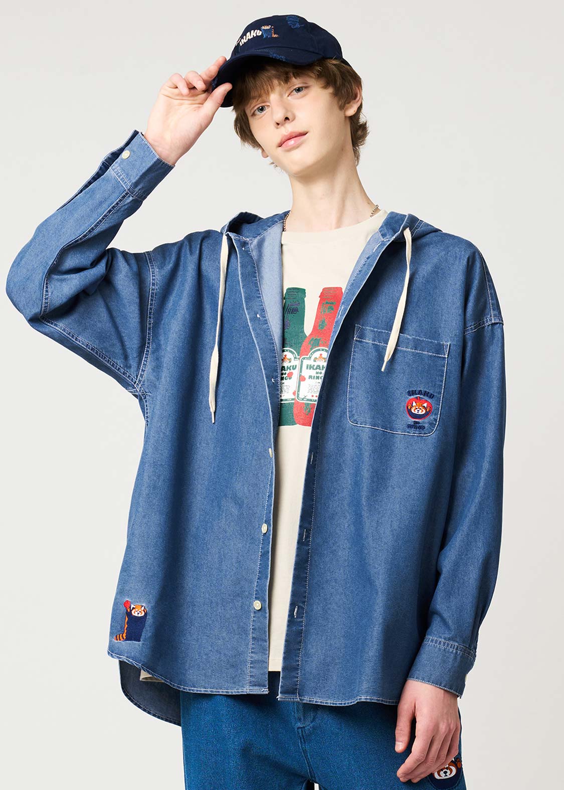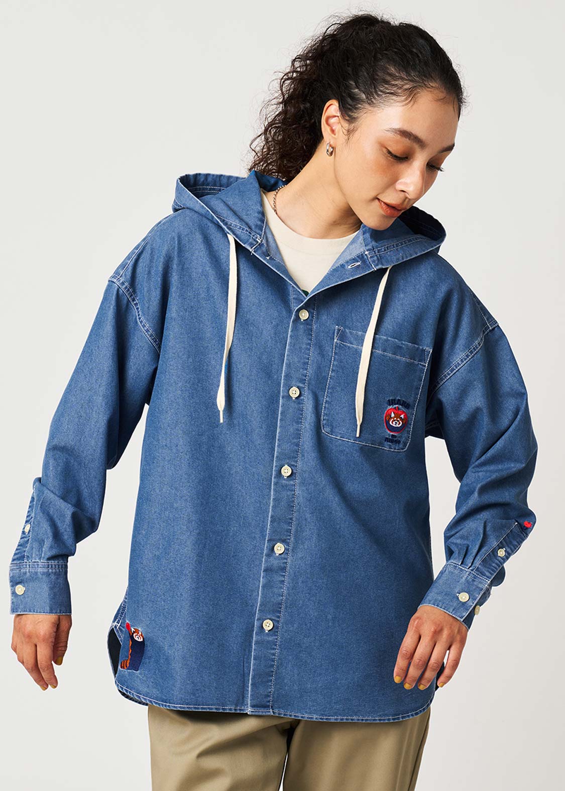 ・ゆったりとしたシルエットの、フード付きデニムシャツです。