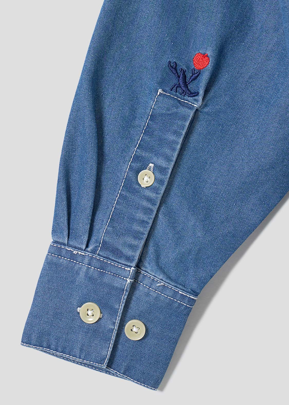 ・洗い加工を施した5.5ozのデニム生地を使用し、やわらかな風合いに整えています。