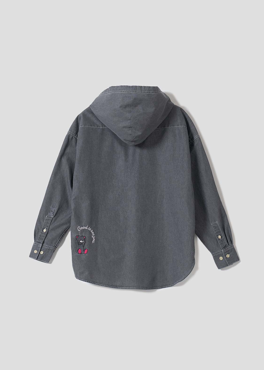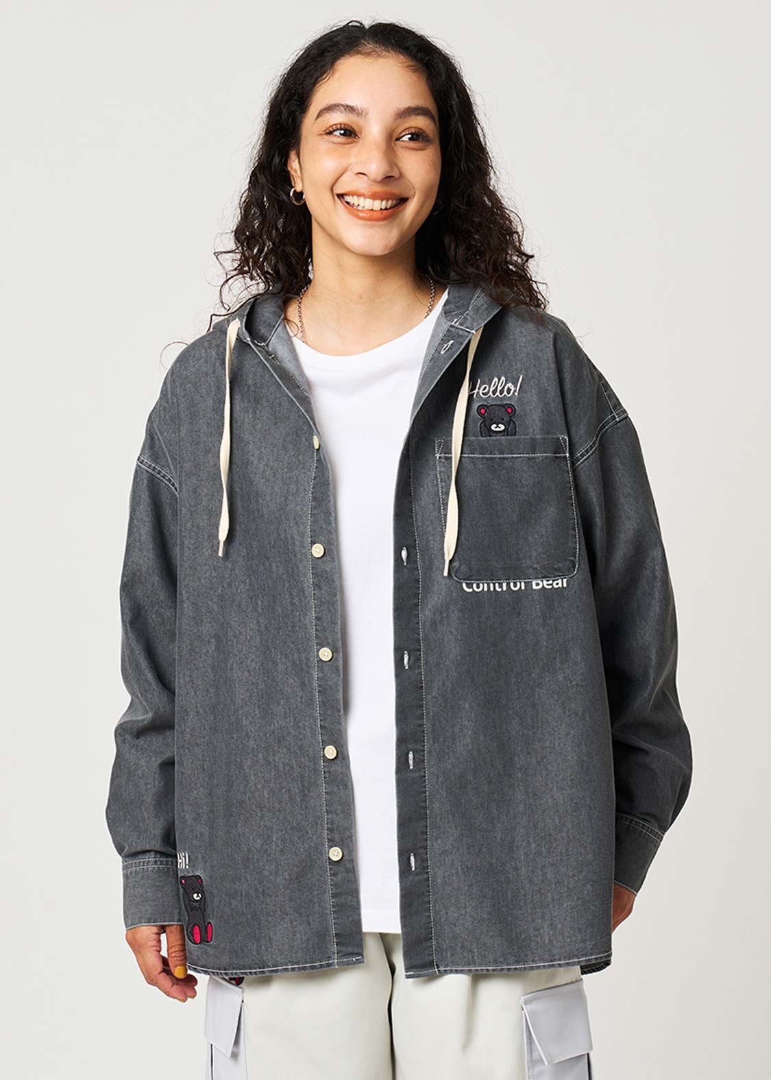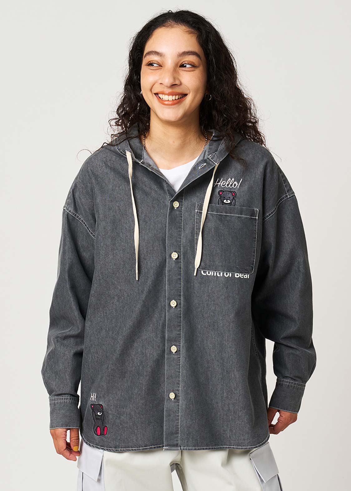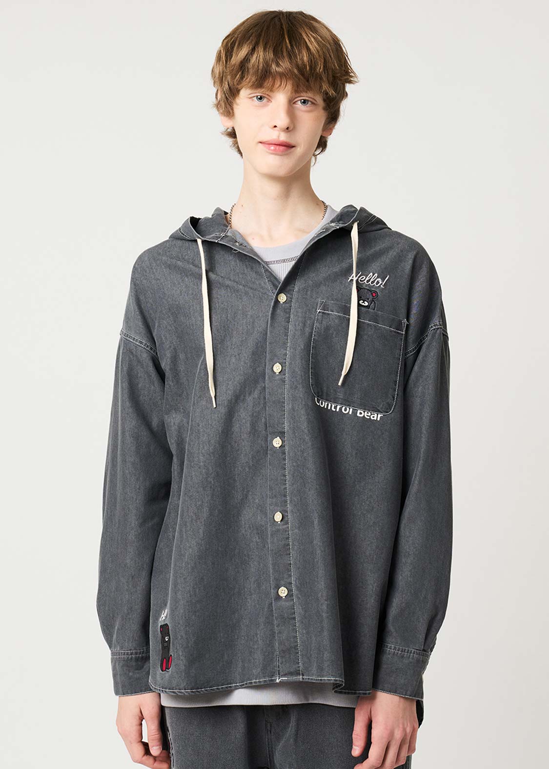 ・ゆったりとしたシルエットの、フード付きデニムシャツです。