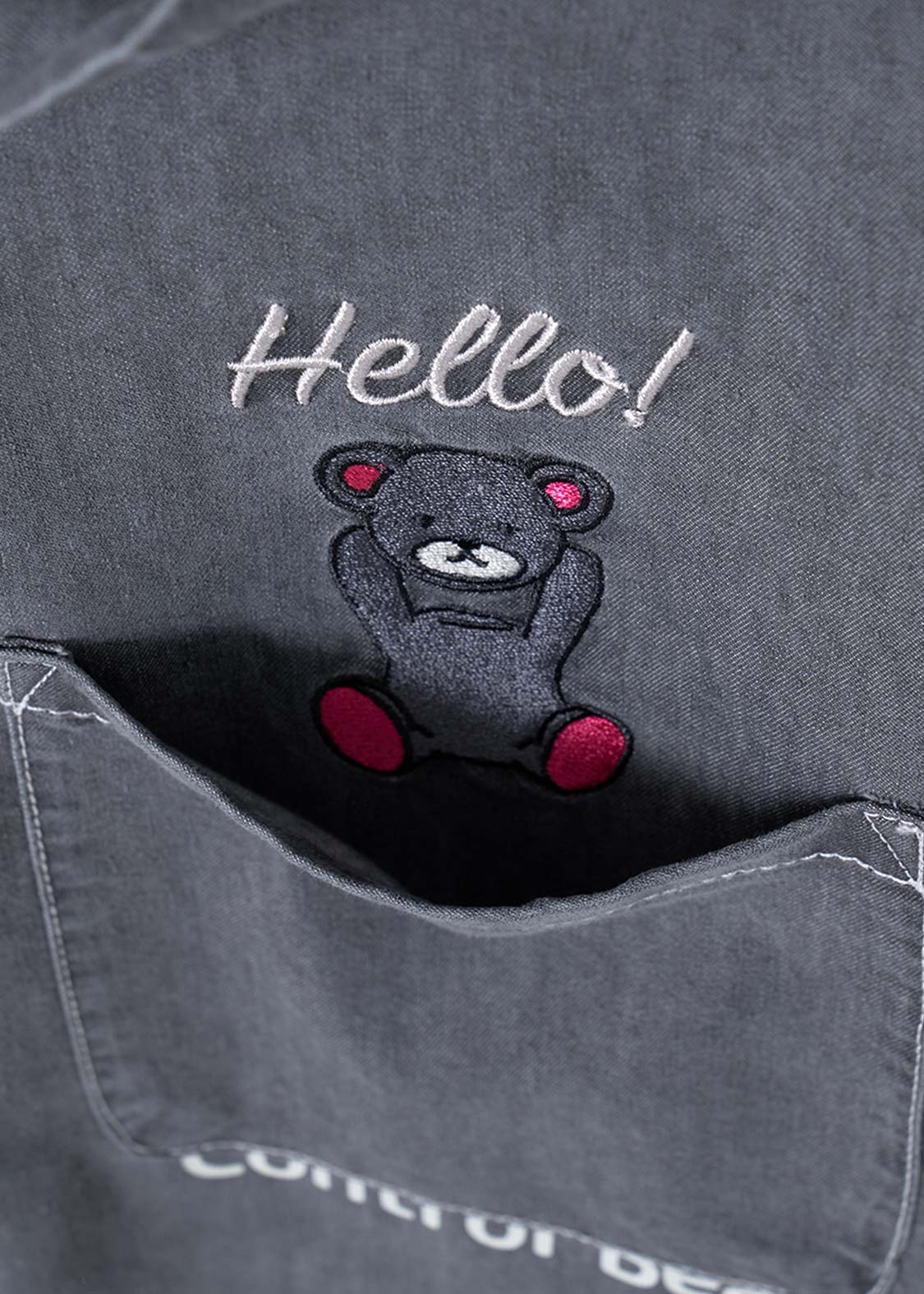 ポン!とばかりに頭をとるファニーなクマくん。ブラックなユーモアとキュートさが混じりあったインパクトのあるキャラクターです。