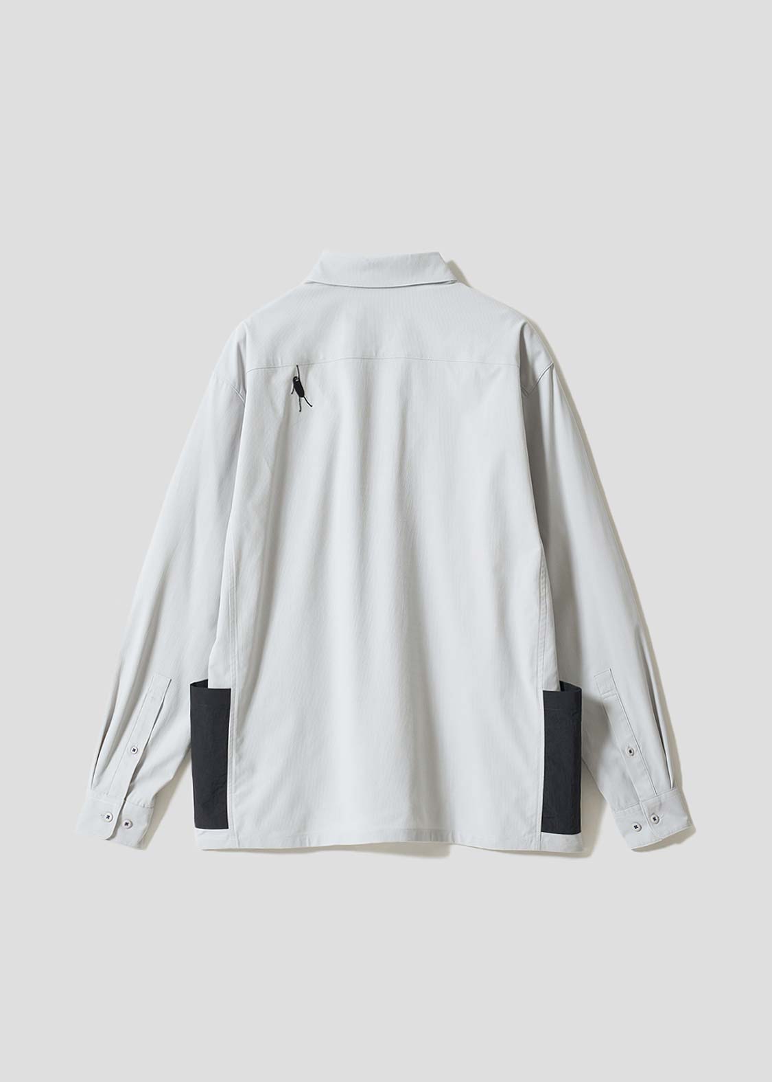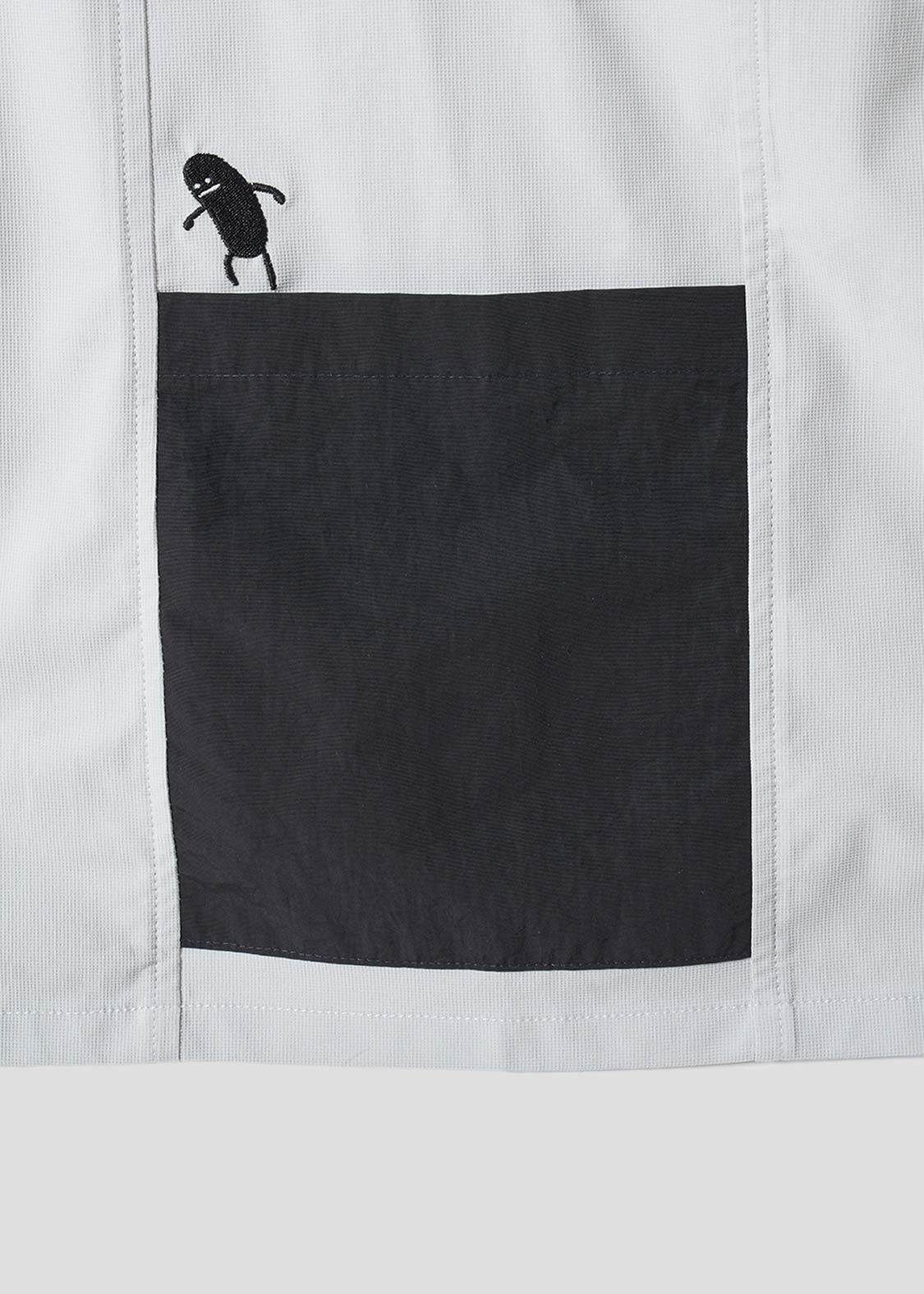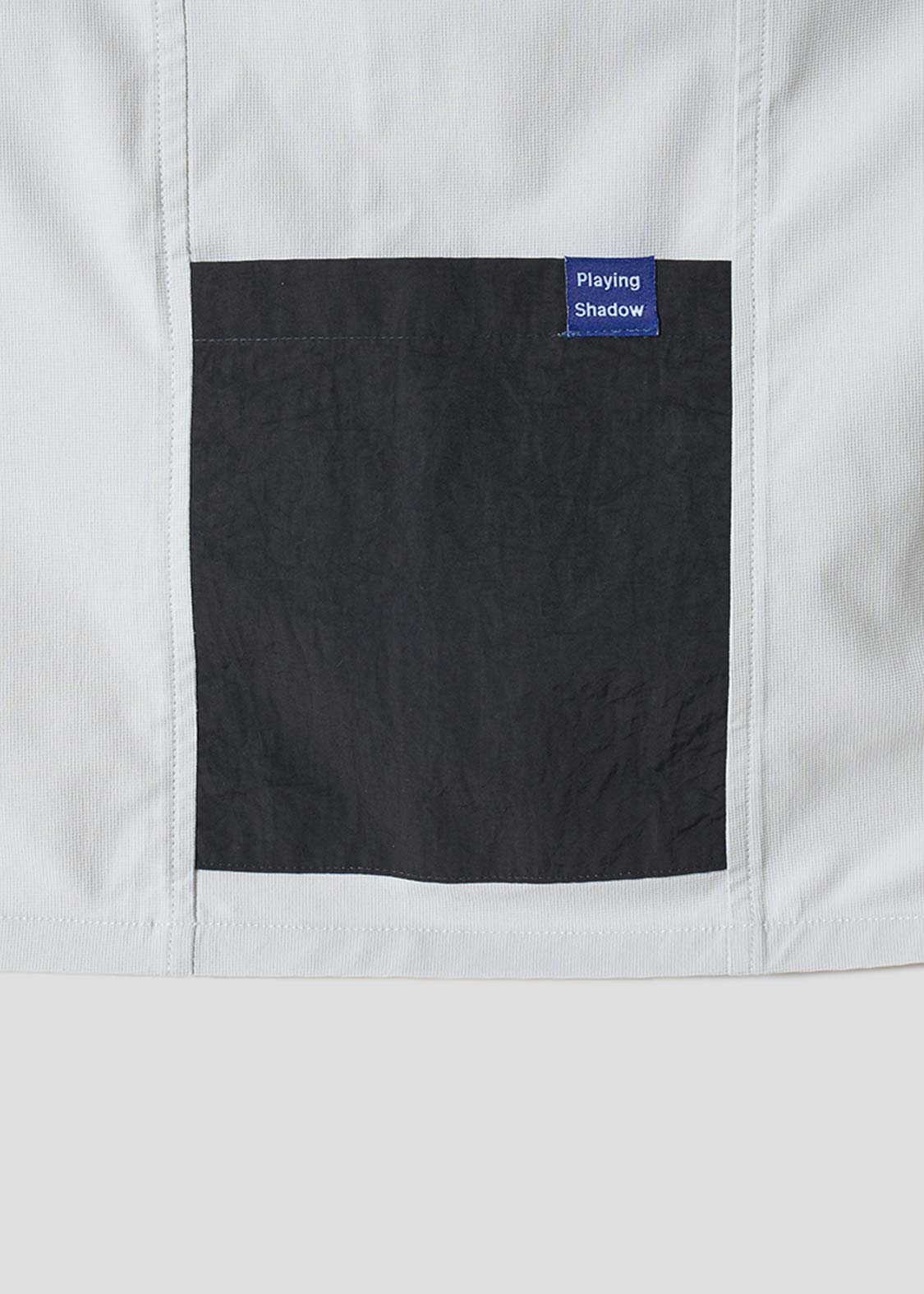 ・身頃にはさらっとした着心地の吸水速乾生地を使用し、サイドポケットにはナイロン生地を採用しています。表情の異なる素材を組み合わせたデザインが特徴です。