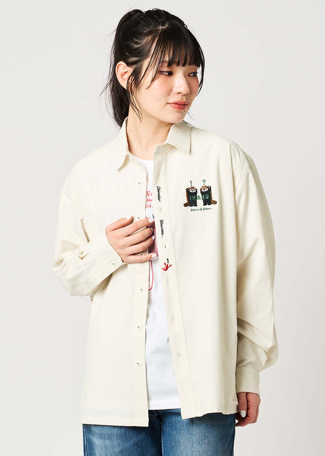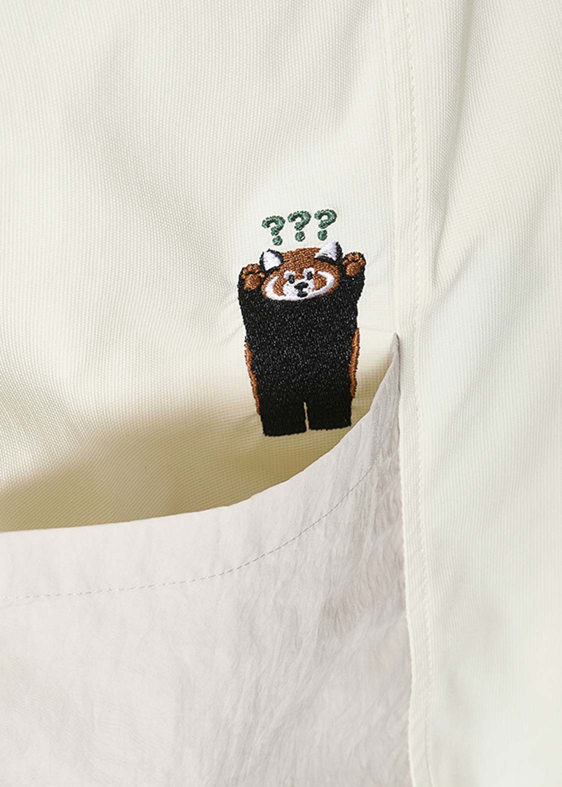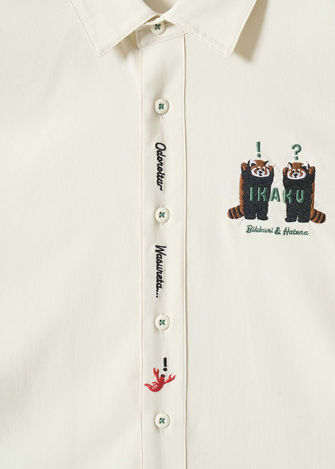 レッサーパンダの「?」と「!」の表情を、遊び心たっぷりにデザイン。ちょっとしたリアクションを切り取った、!?マークがアクセントのグラフィックです。