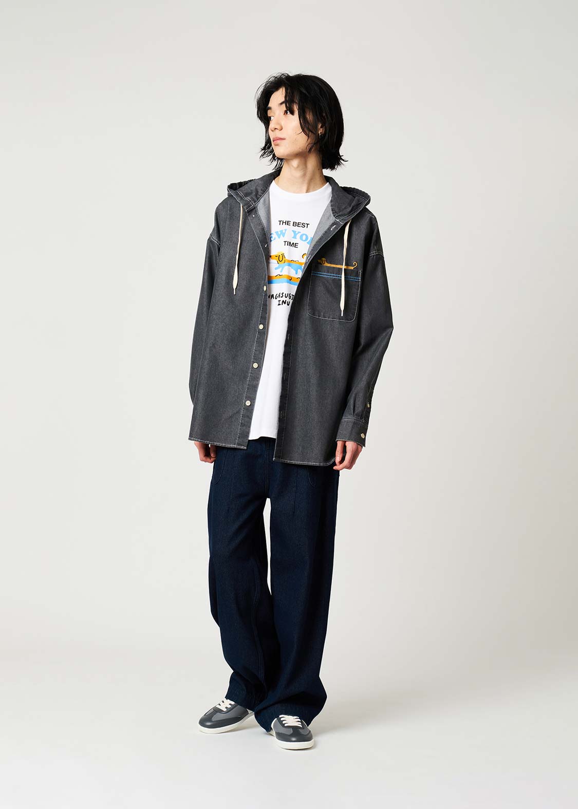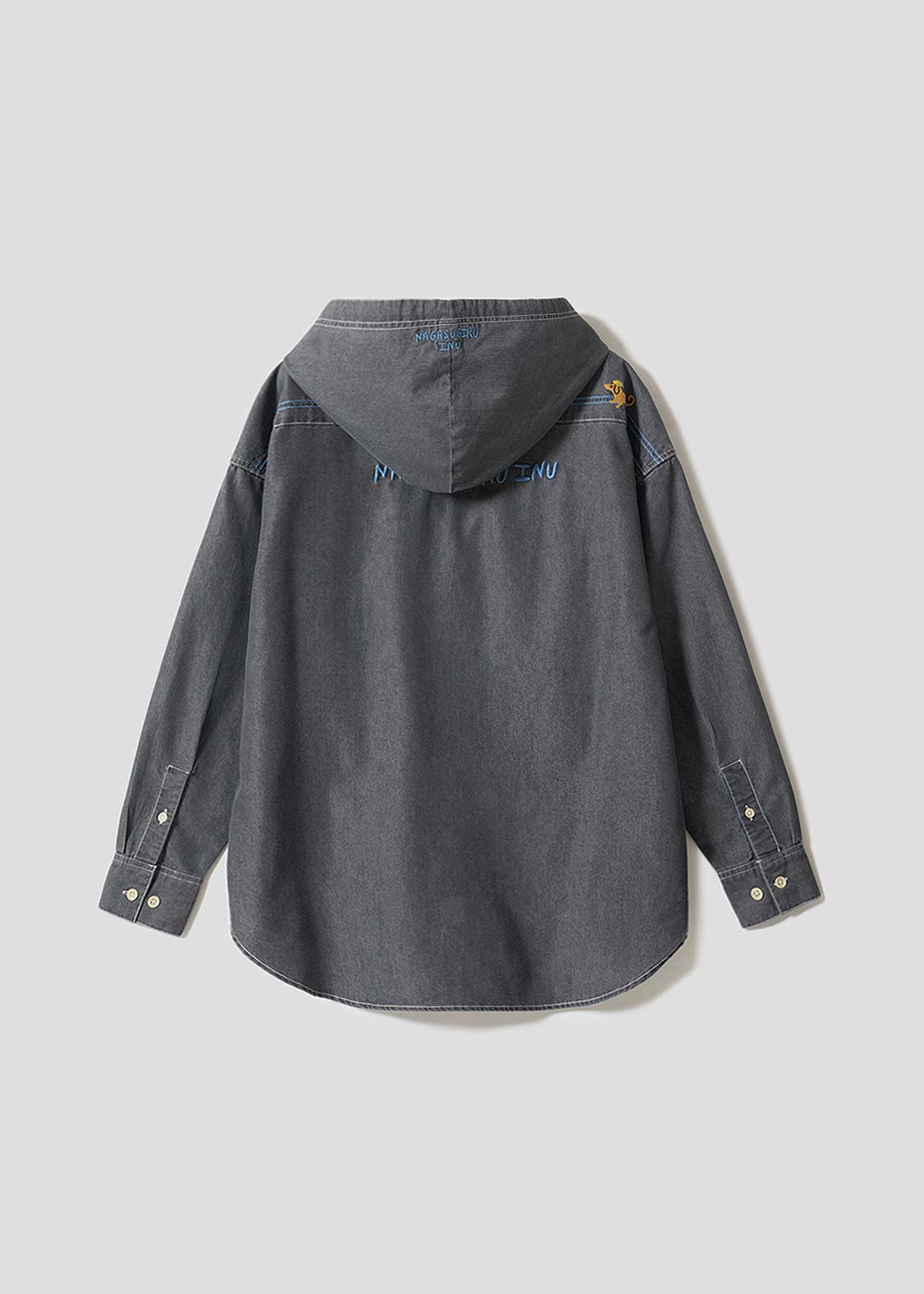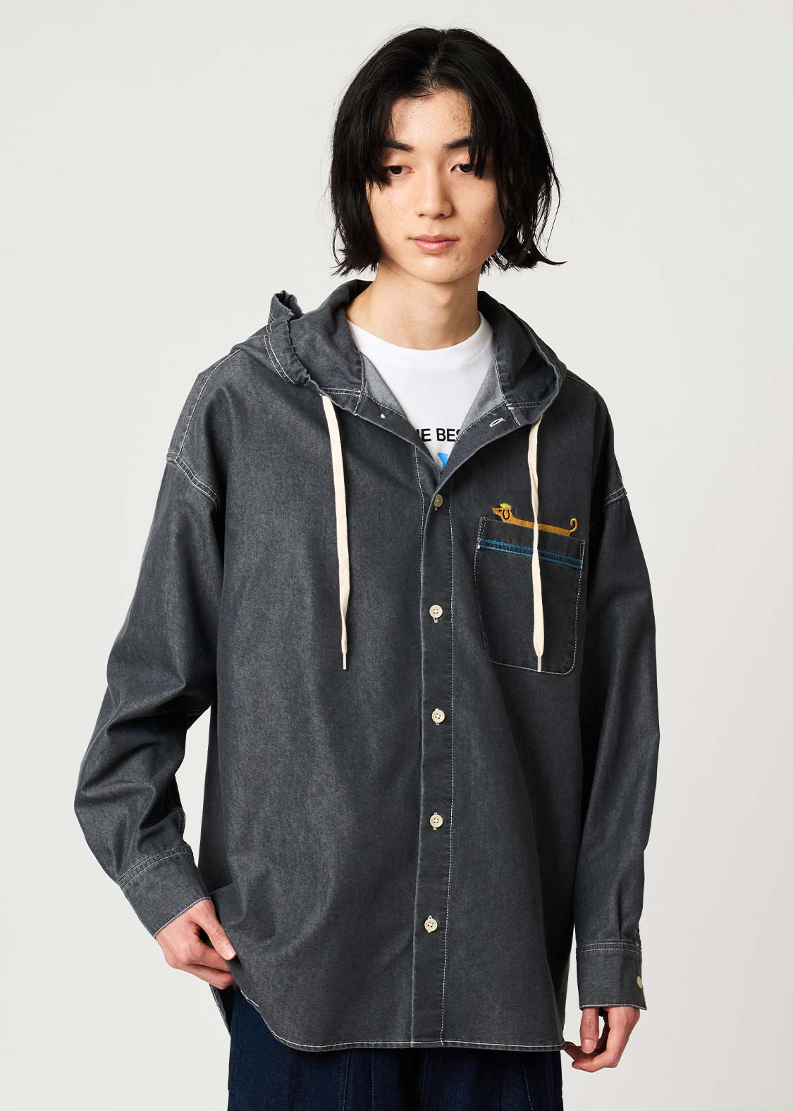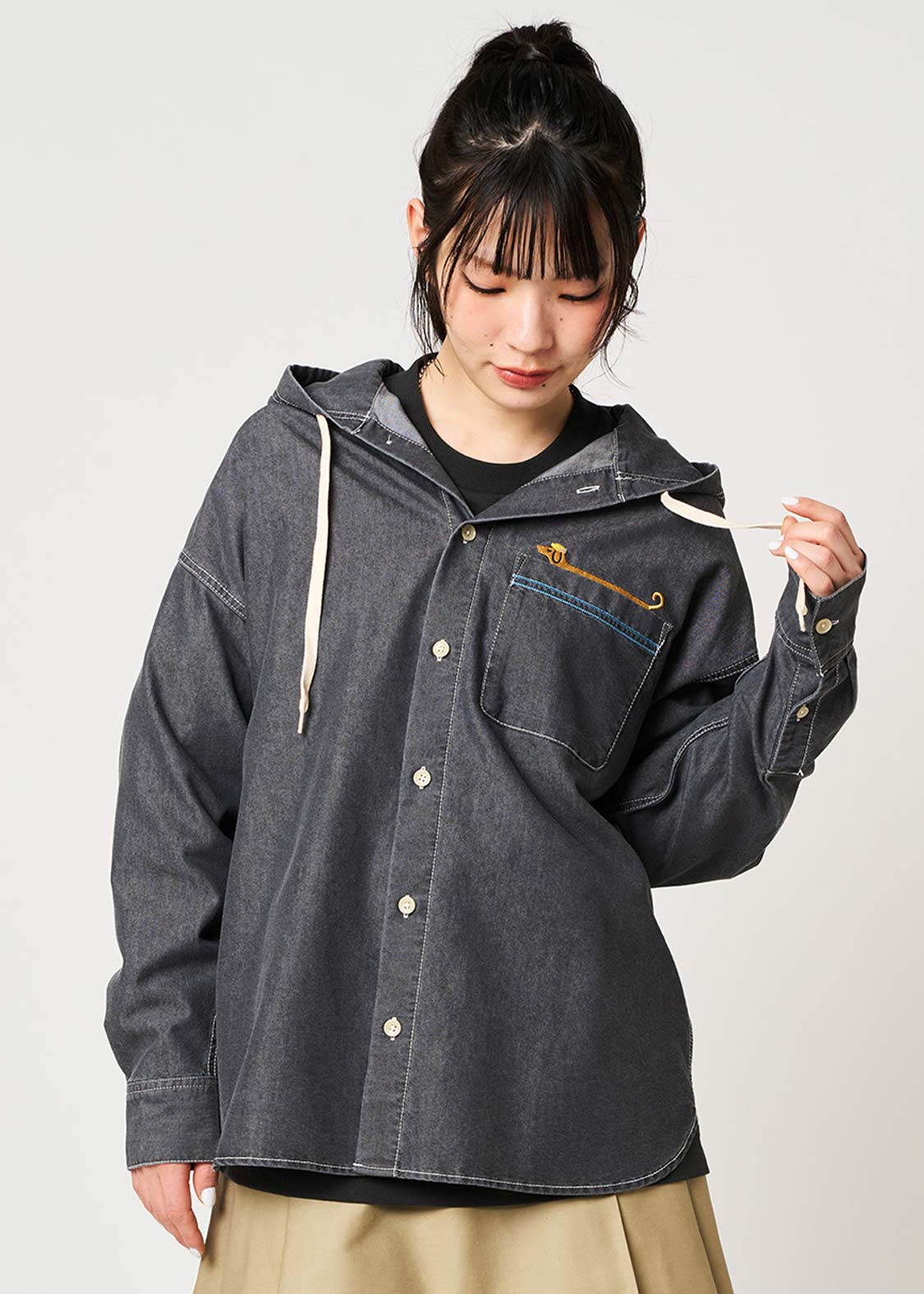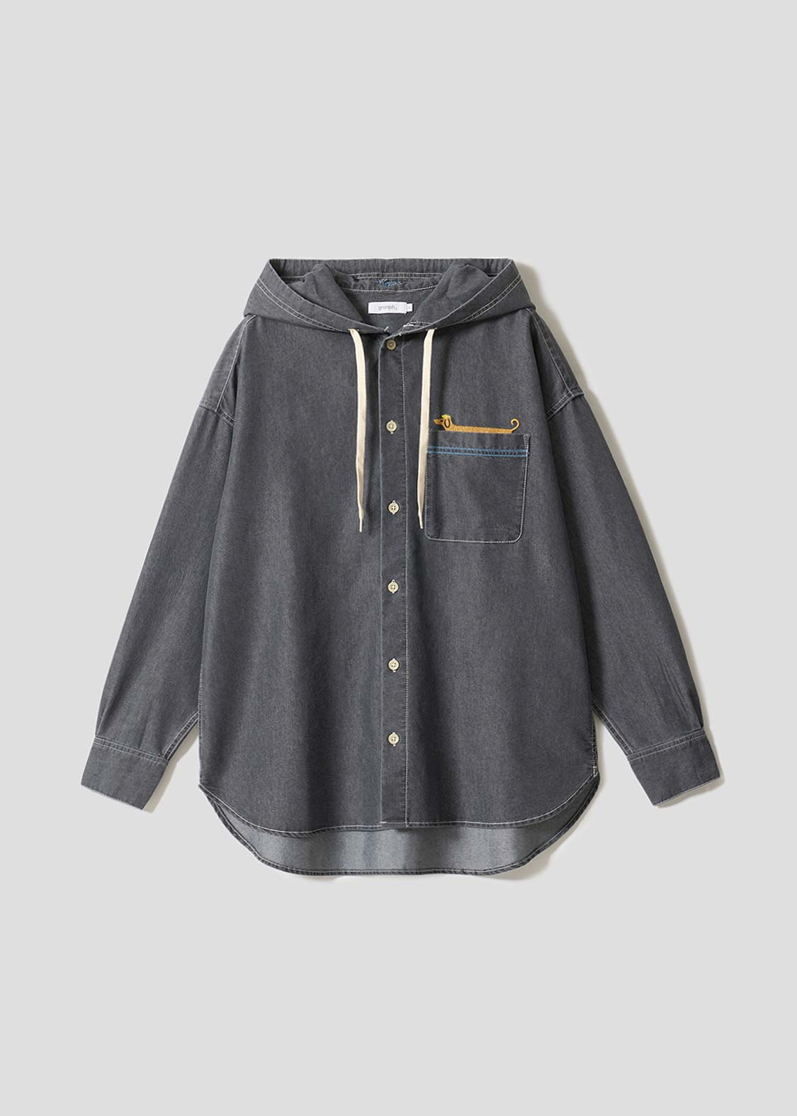 ・ゆったりとしたシルエットの、フード付きデニムシャツです。