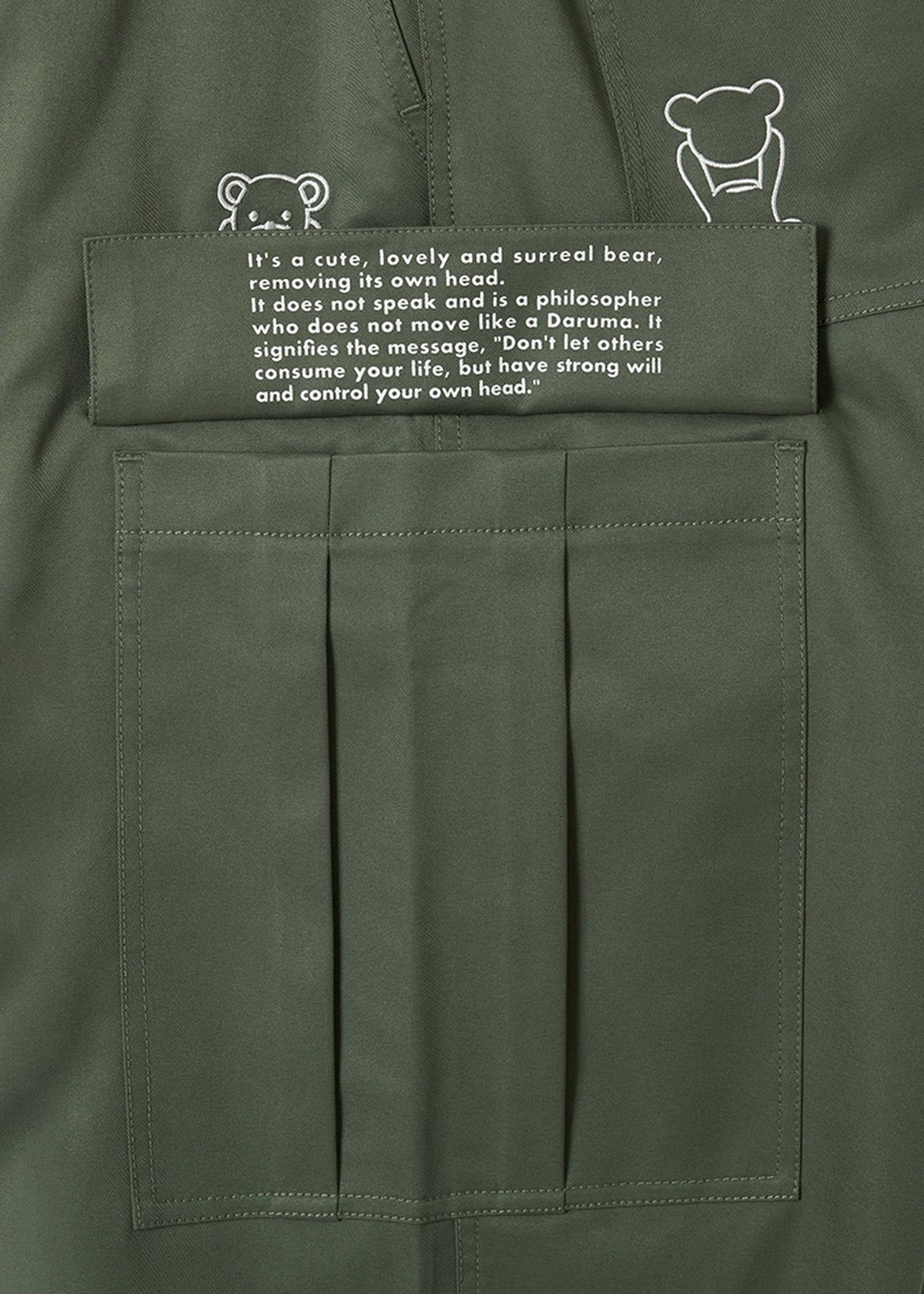 ・サイドポケットのフラップの裏にはコントロールベアのコンセプトメッセージをプリントしています。
