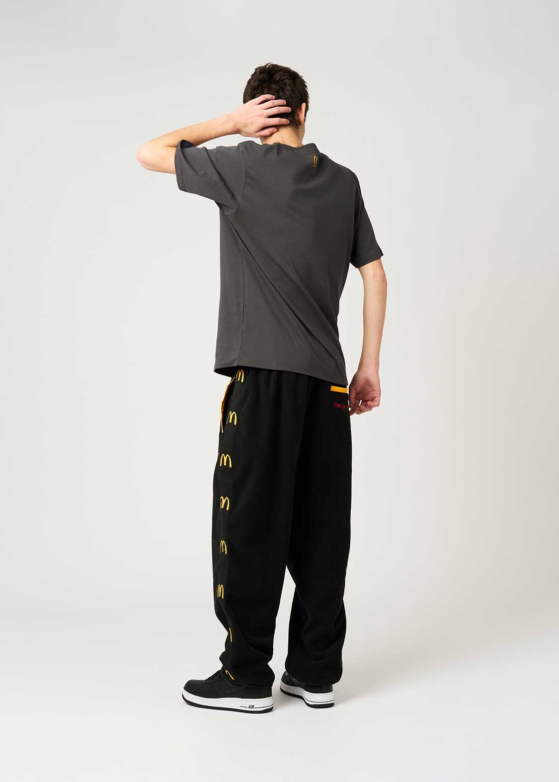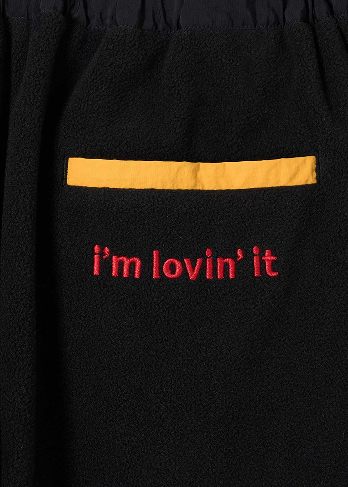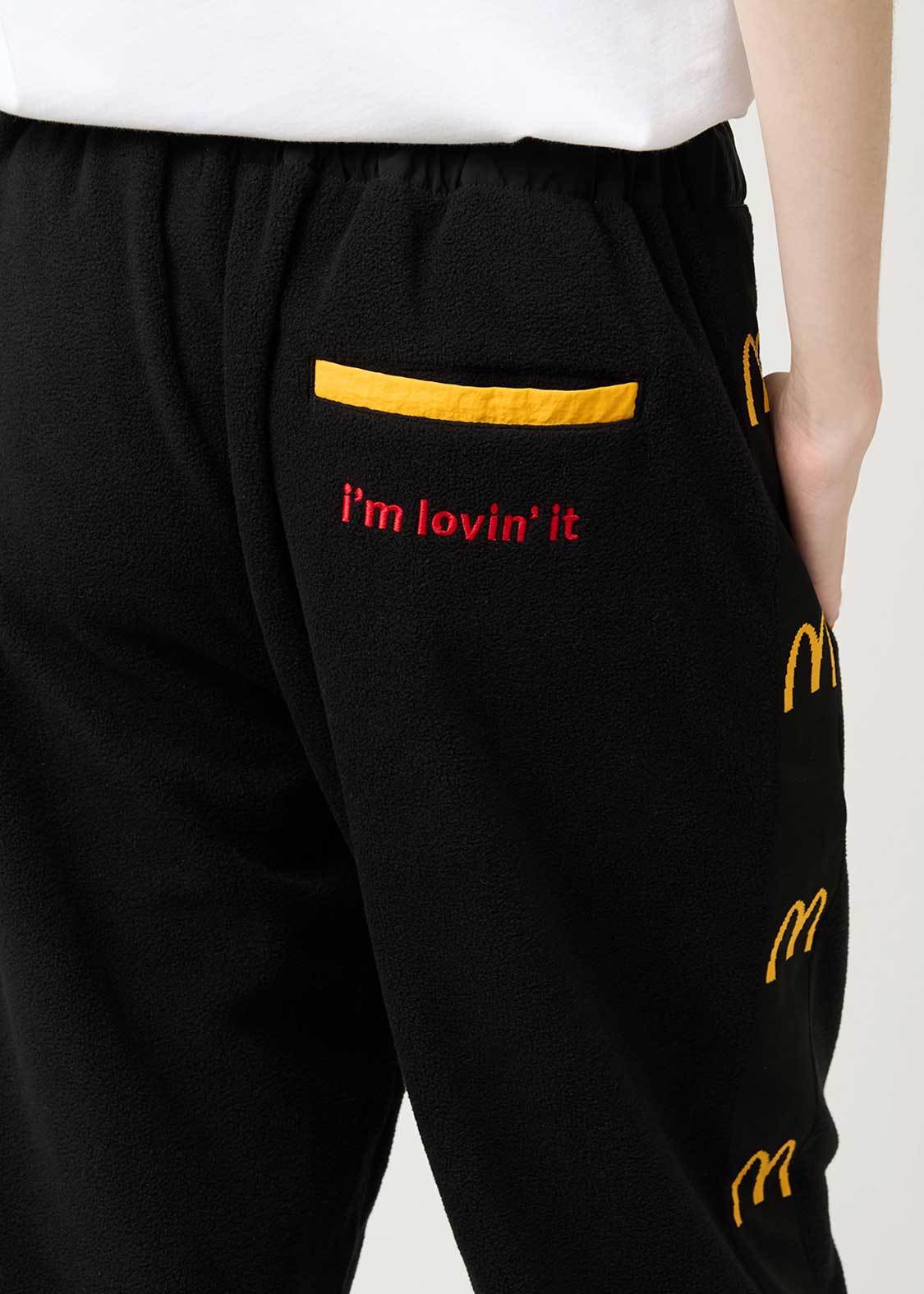 両サイドに並んだゴールデンアーチが目を引くデザイン。フロントにはMcDonald's、バックには全世界のマクドナルドで共通のキャンペーンフレーズ「i’m lovin’ it」が刺繍されています。