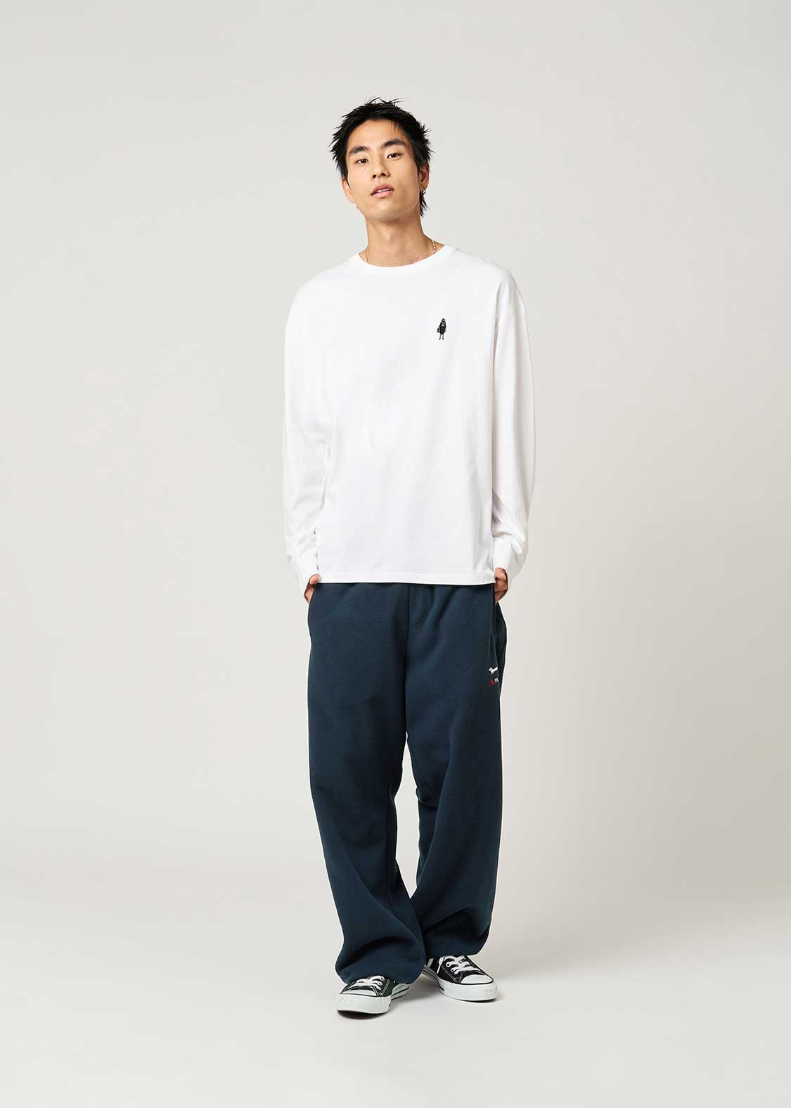 ・リラックスシルエットで履きやすく、裾にかけて緩やかなテーパードになっています。