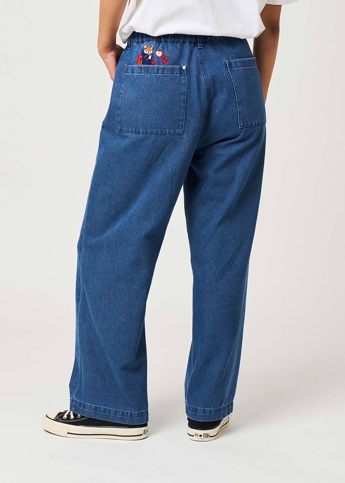 ・バイオウォッシュ加工により、裾やポケット、ウエスト周りにアタリが出ていて、雰囲気のある仕上りになっています。