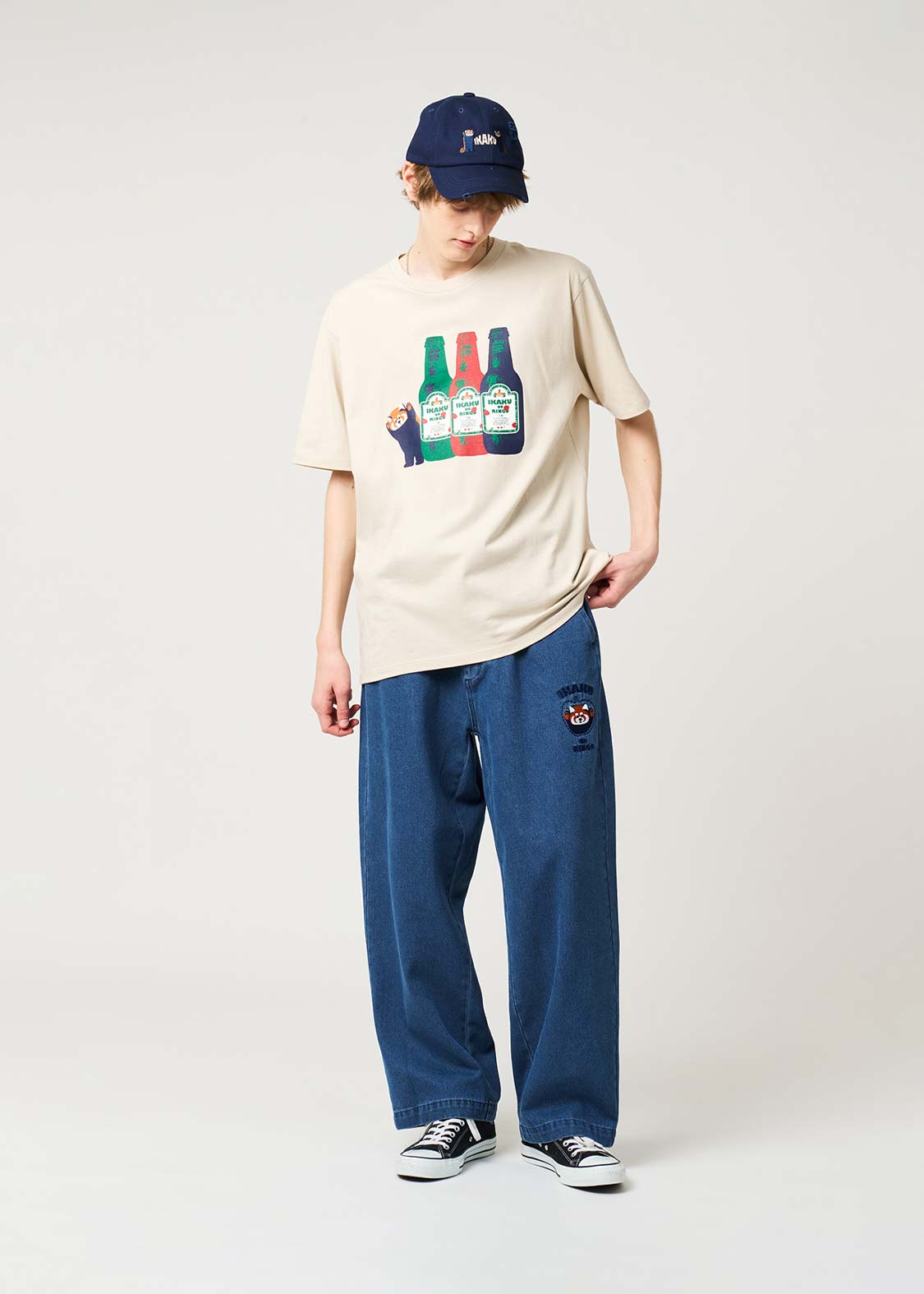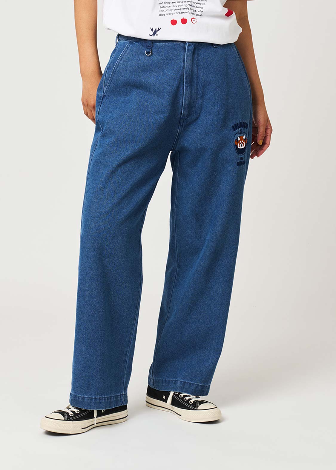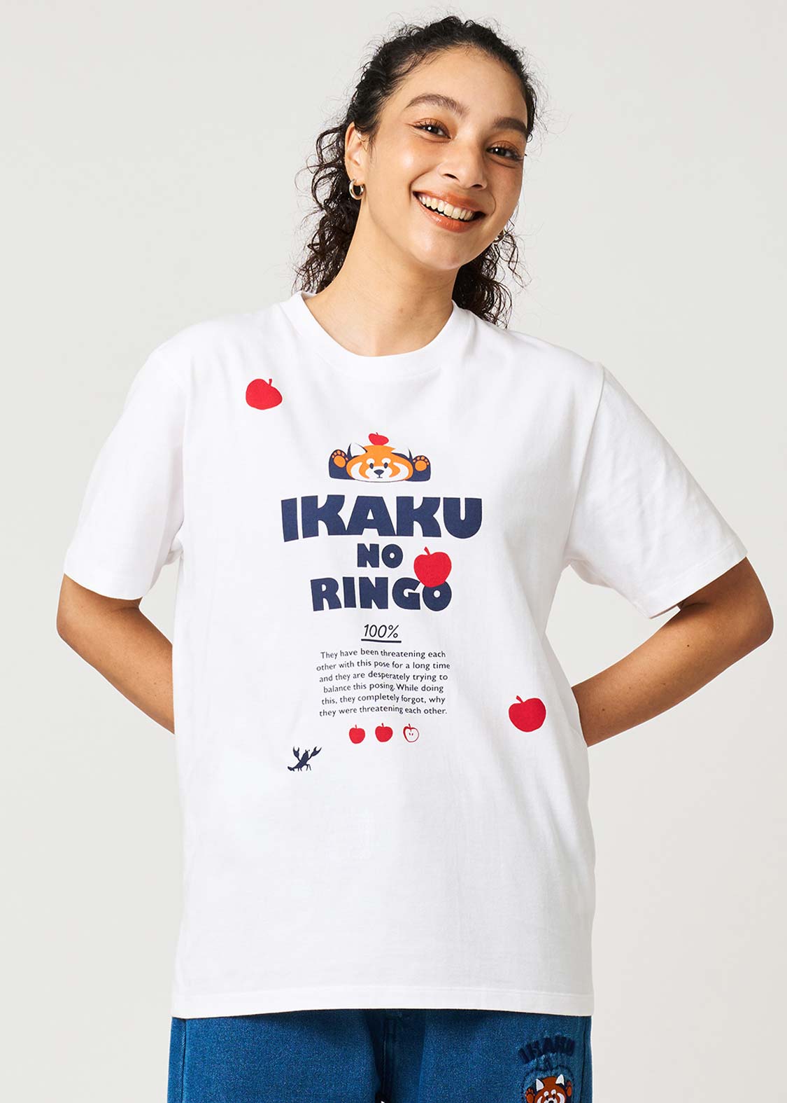 レッサーパンダの大好物、りんごをフィーチュア。赤いりんごがアクセントになる、遊び心のあるグラフィックです。