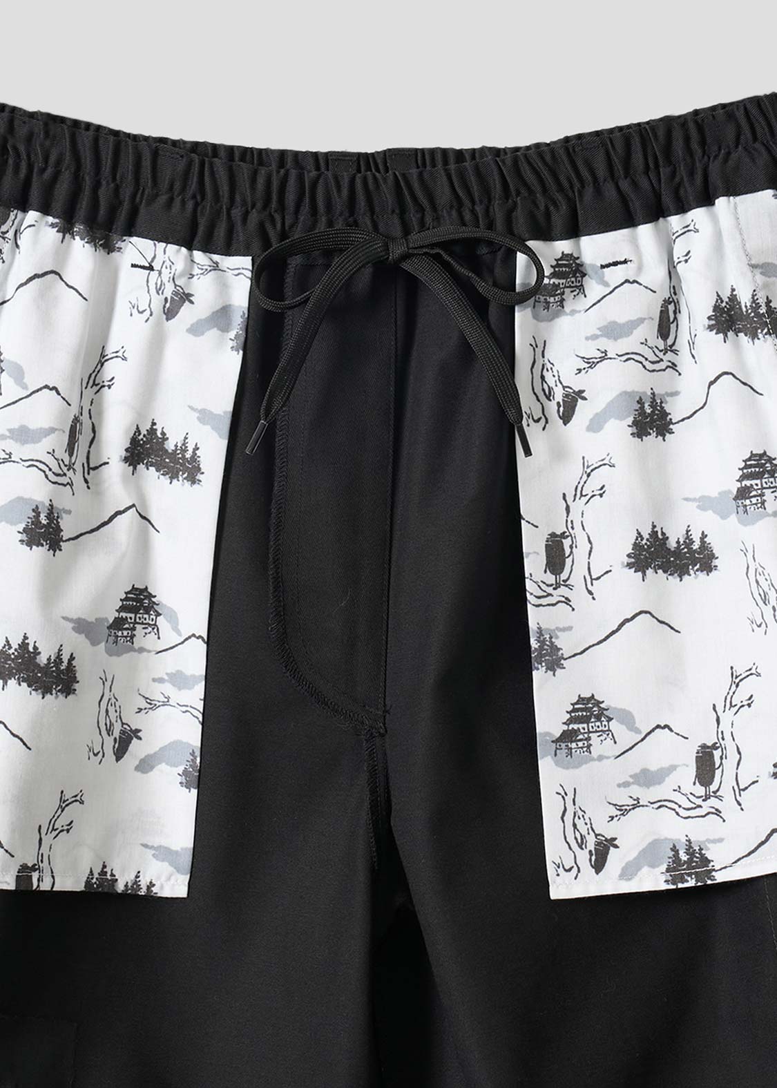 ・ウエストはゴム仕様で、ドローコード付きのため、腰まわりはラフな感覚で着用できます。