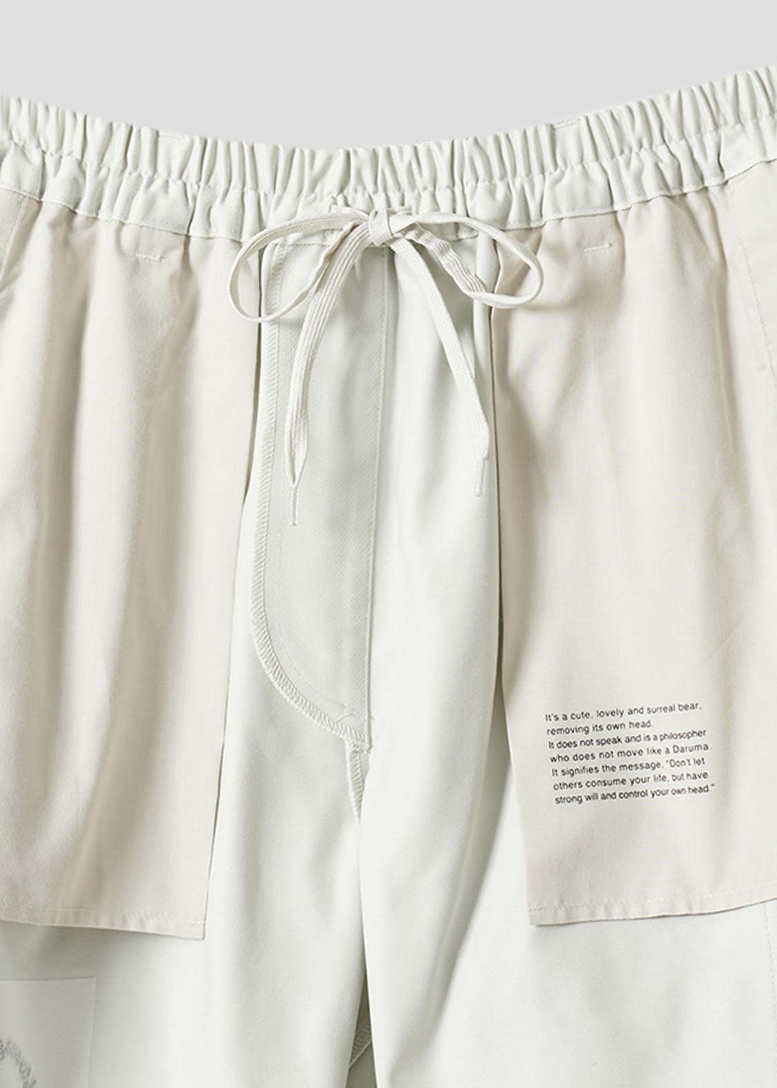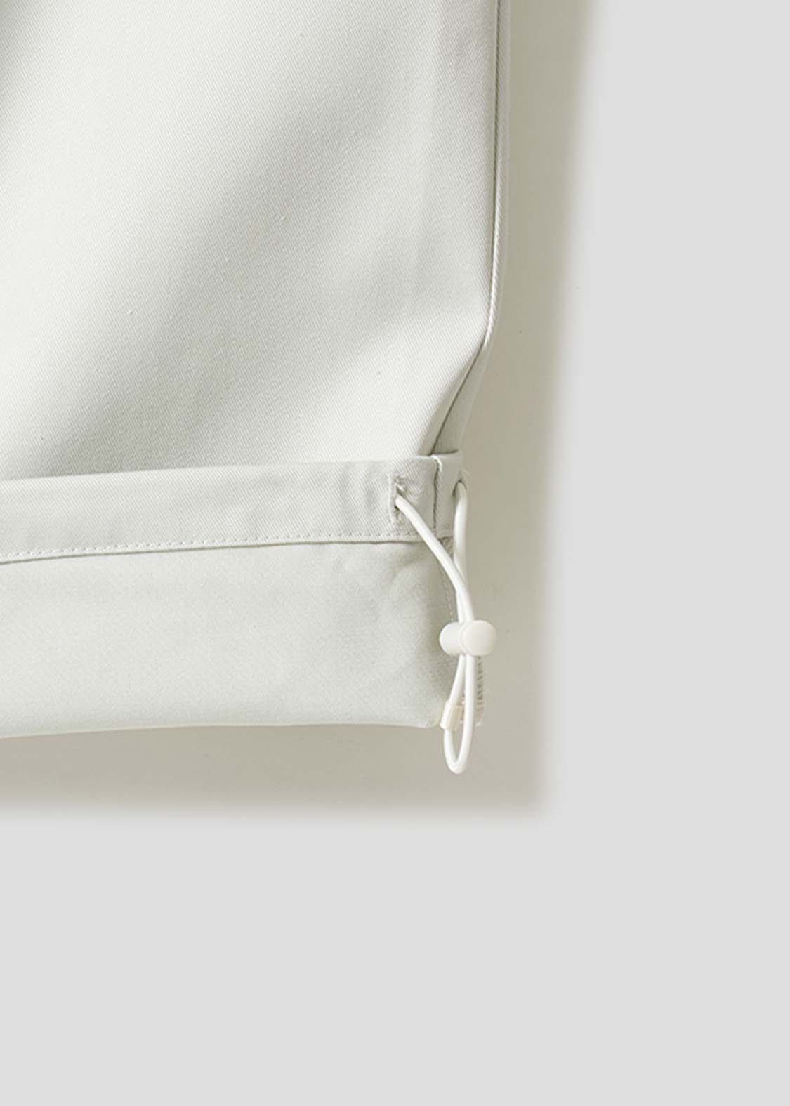 ・ウエストはゴム仕様で、ドローコード付きのため、腰まわりはラフな感覚で着用できます。