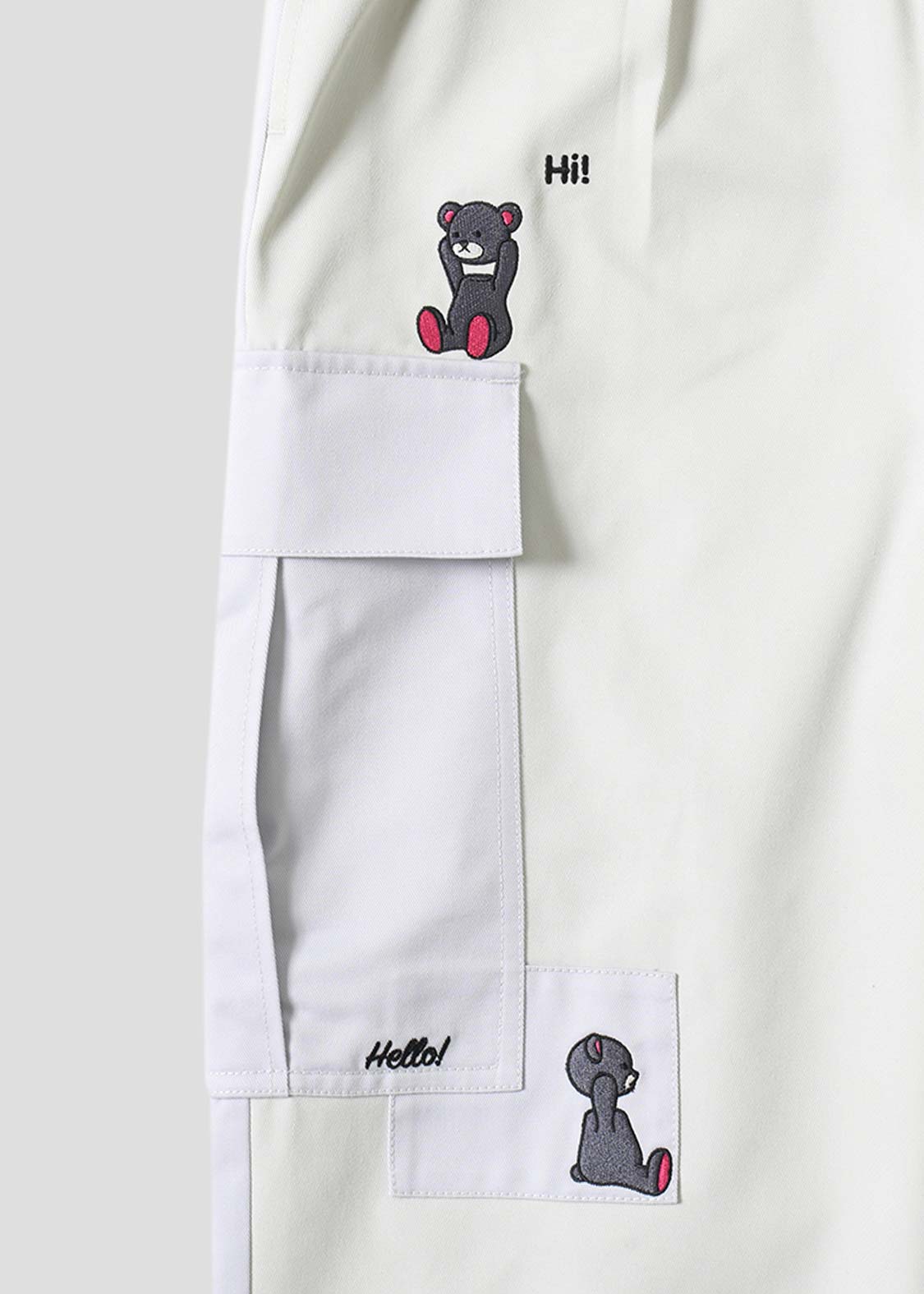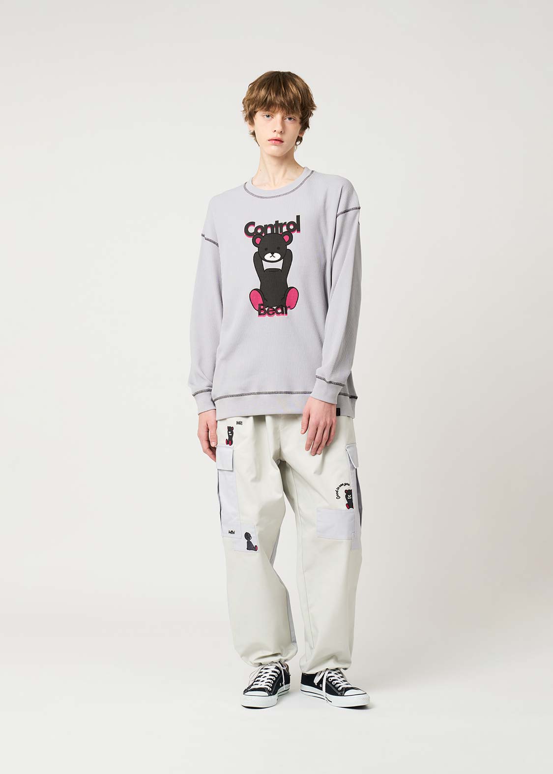 ポン!とばかりに頭をとるファニーなクマくん。ブラックなユーモアとキュートさが混じりあったインパクトのあるキャラクターです。