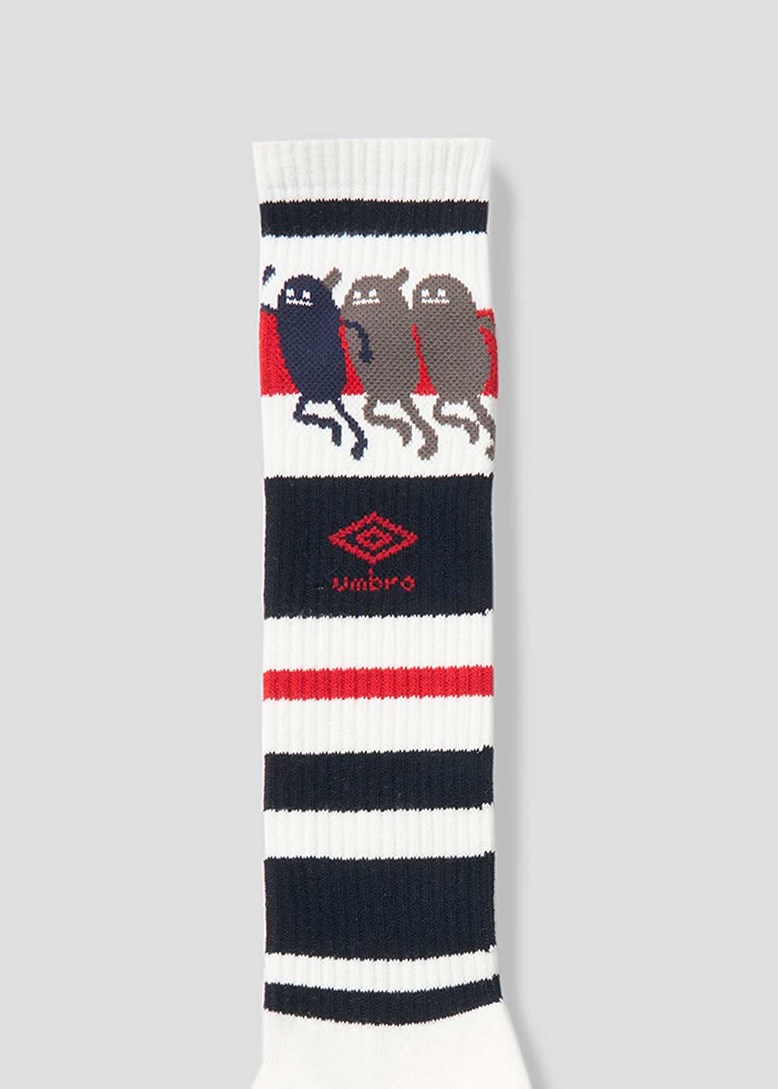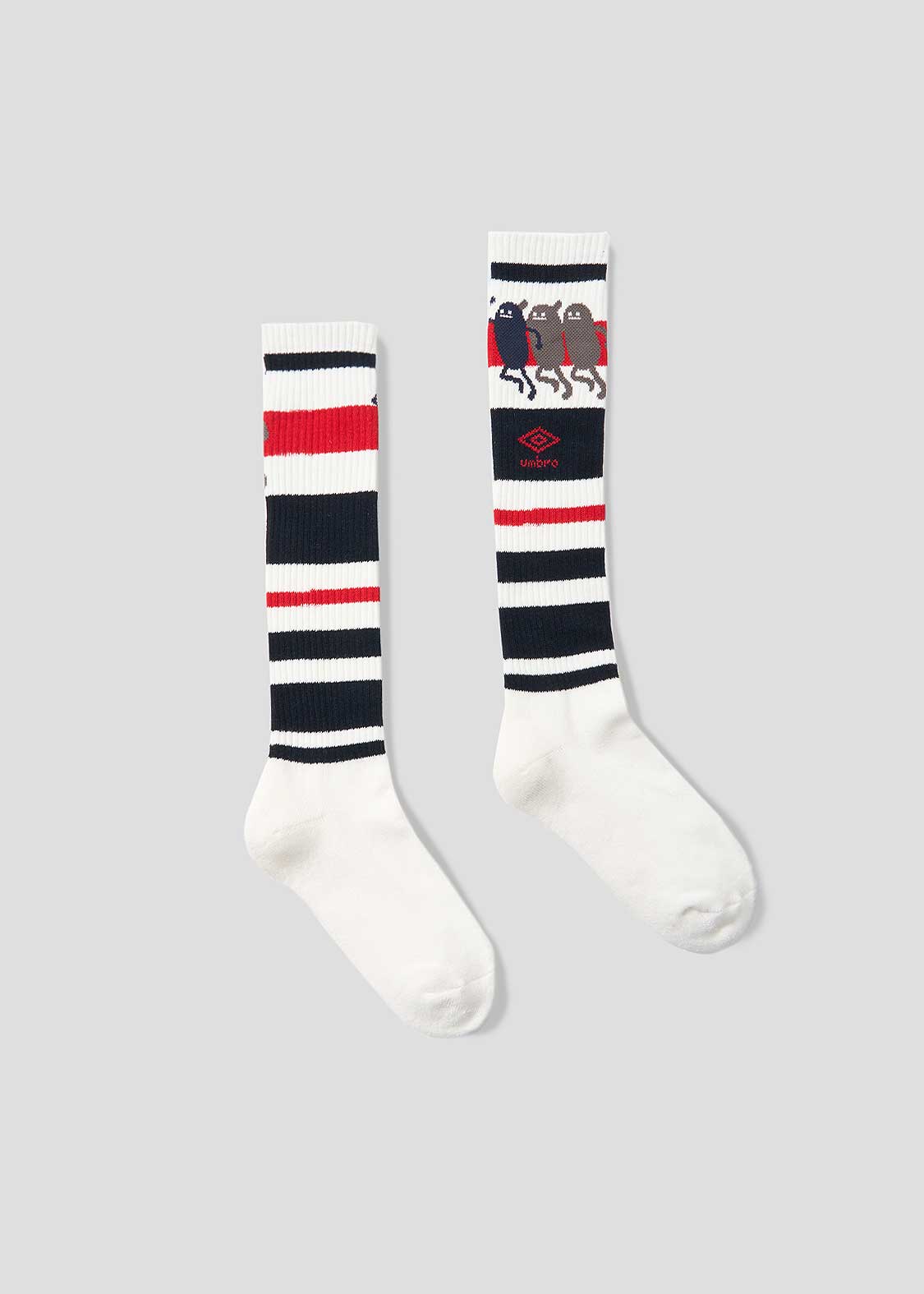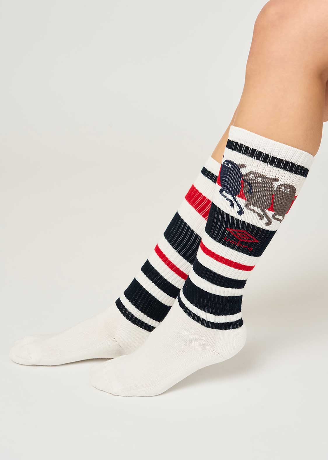 ・グラフィックをジャガードで表現した、ロング丈のハイソックス。