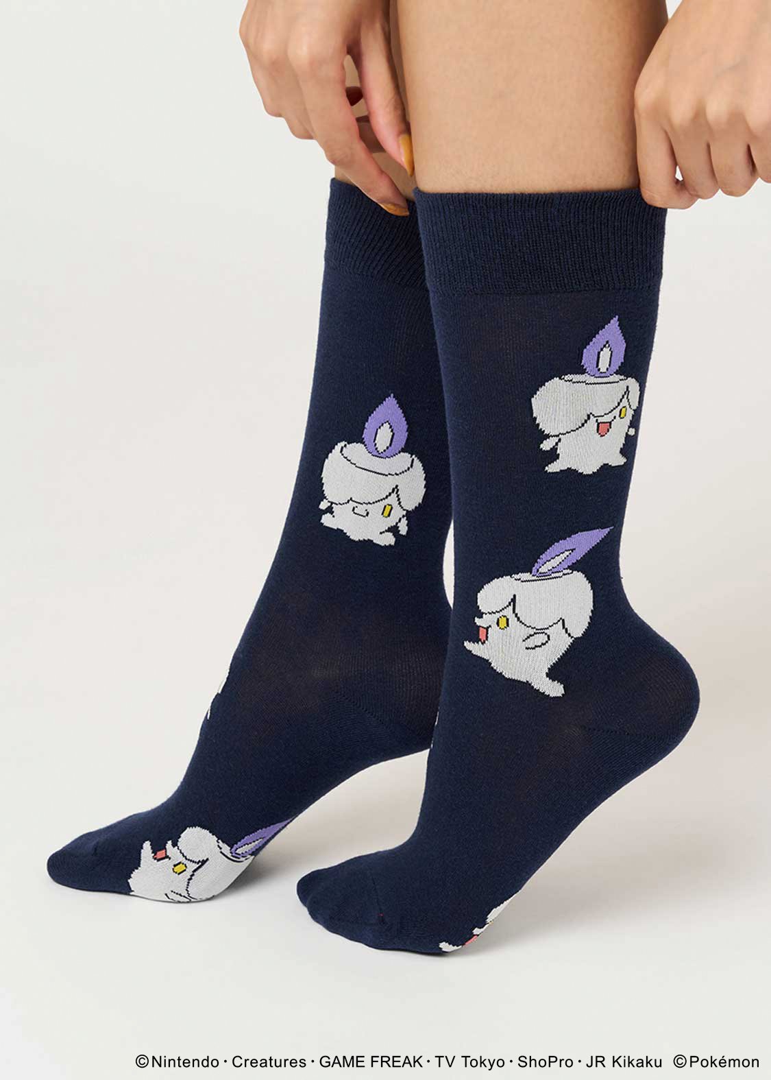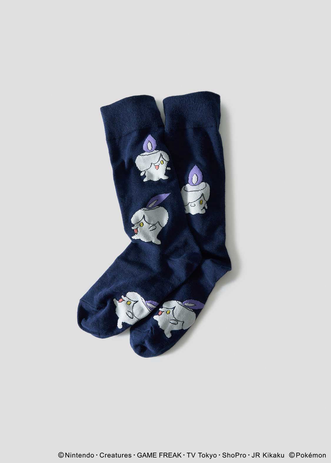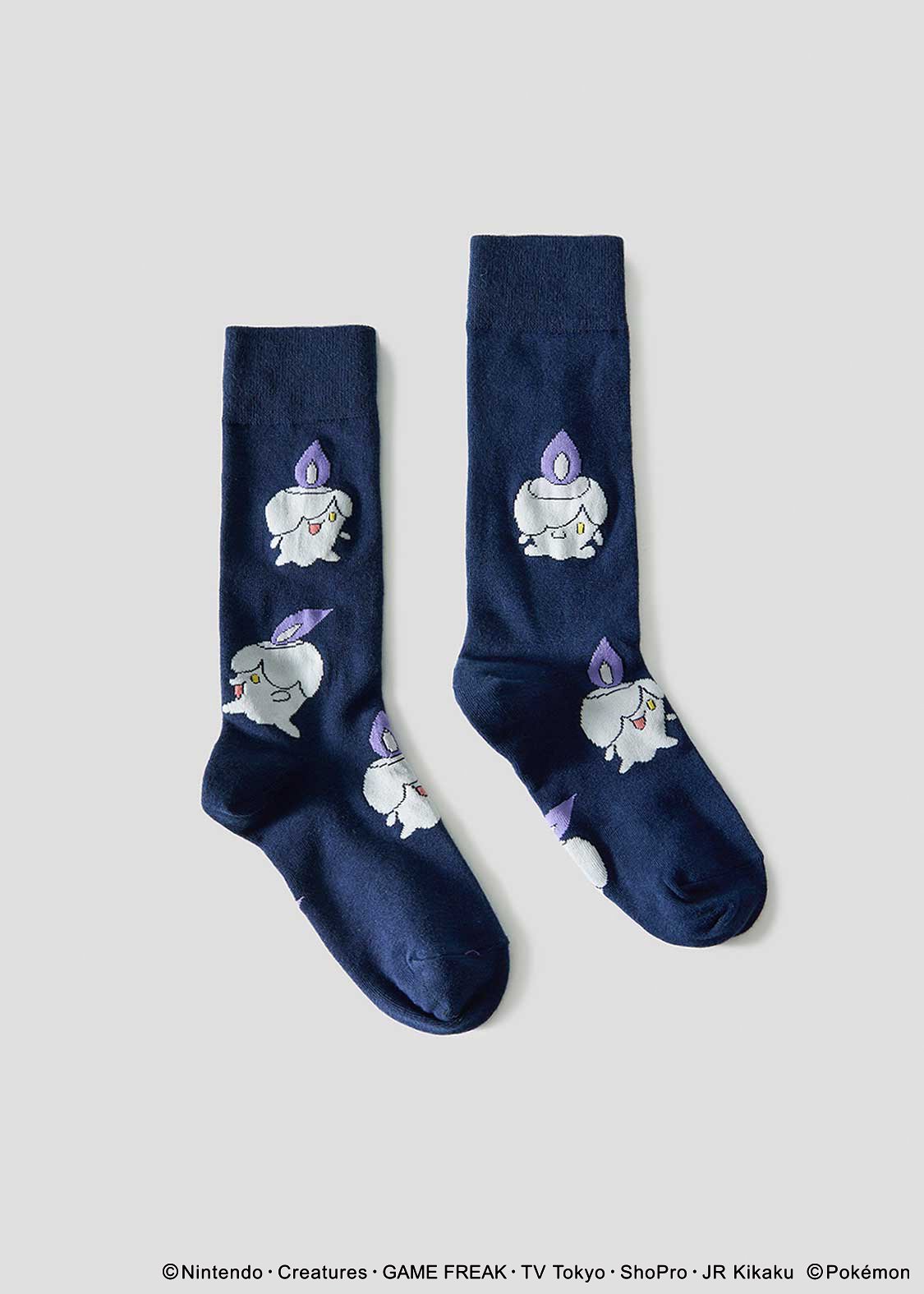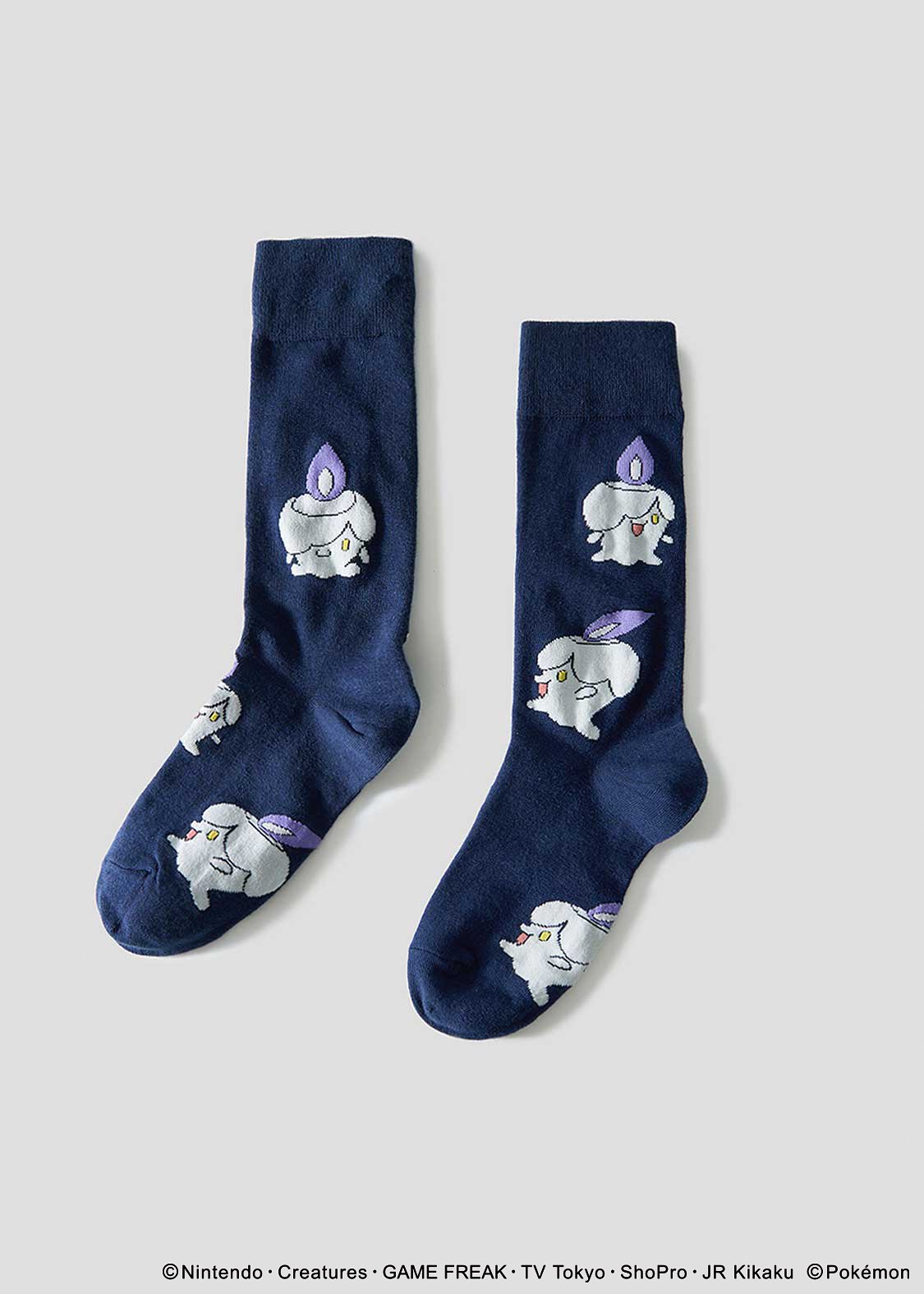 ろうそくポケモンのヒトモシの様々なポーズをジャカード編みで表現したデザイン。