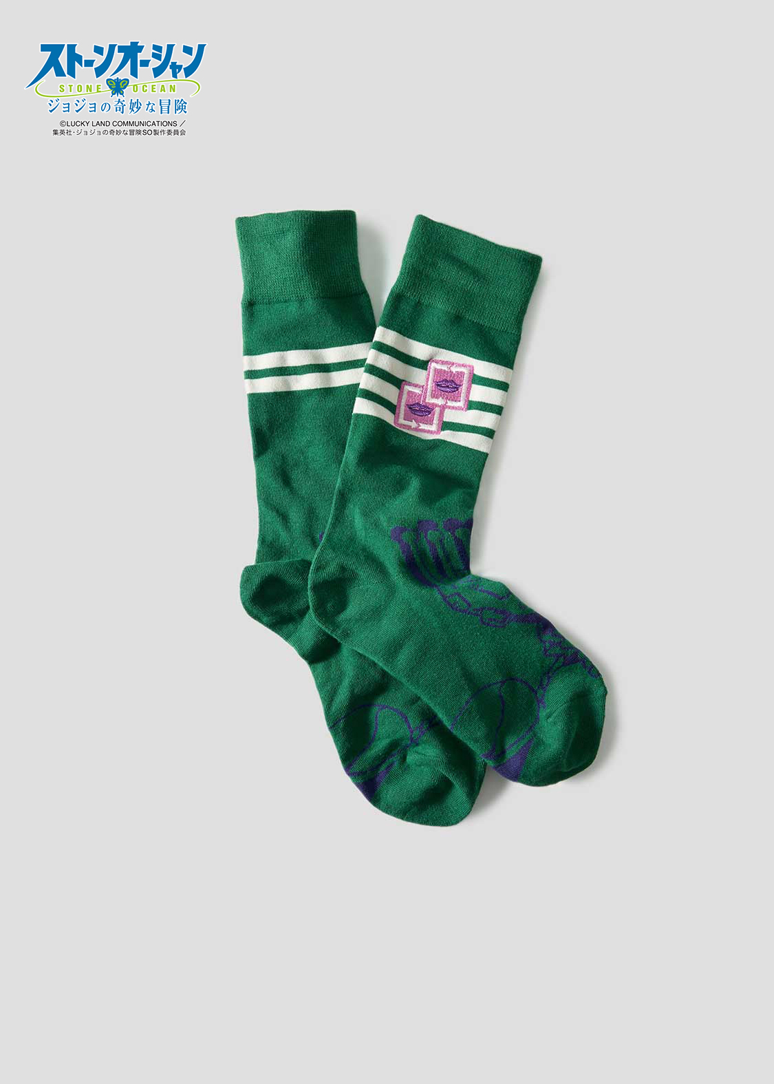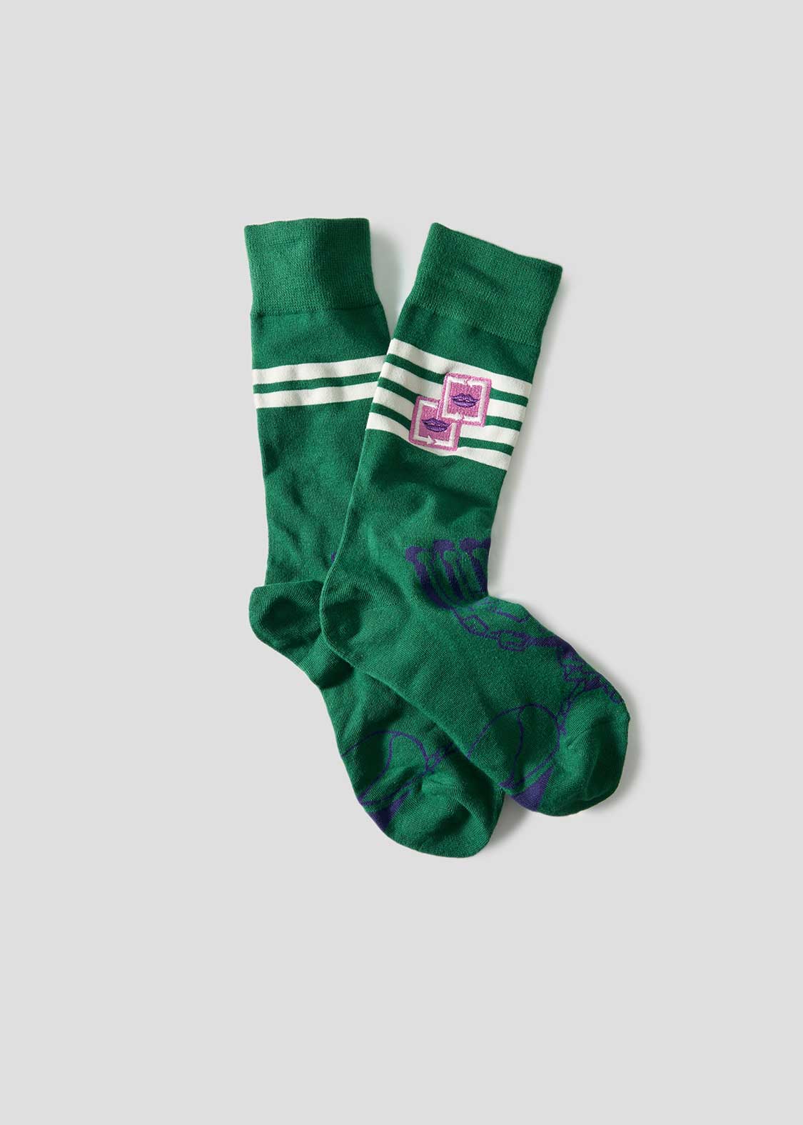 ・グラフィックをジャカードと刺繍で表現したソックス。