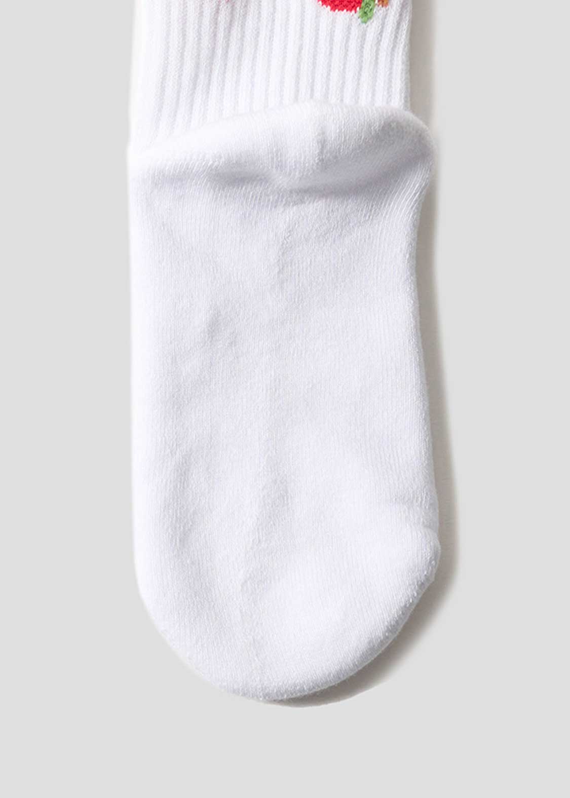 ・細かなグラフィックをジャカードで表現した、ロング丈のリブソックス。