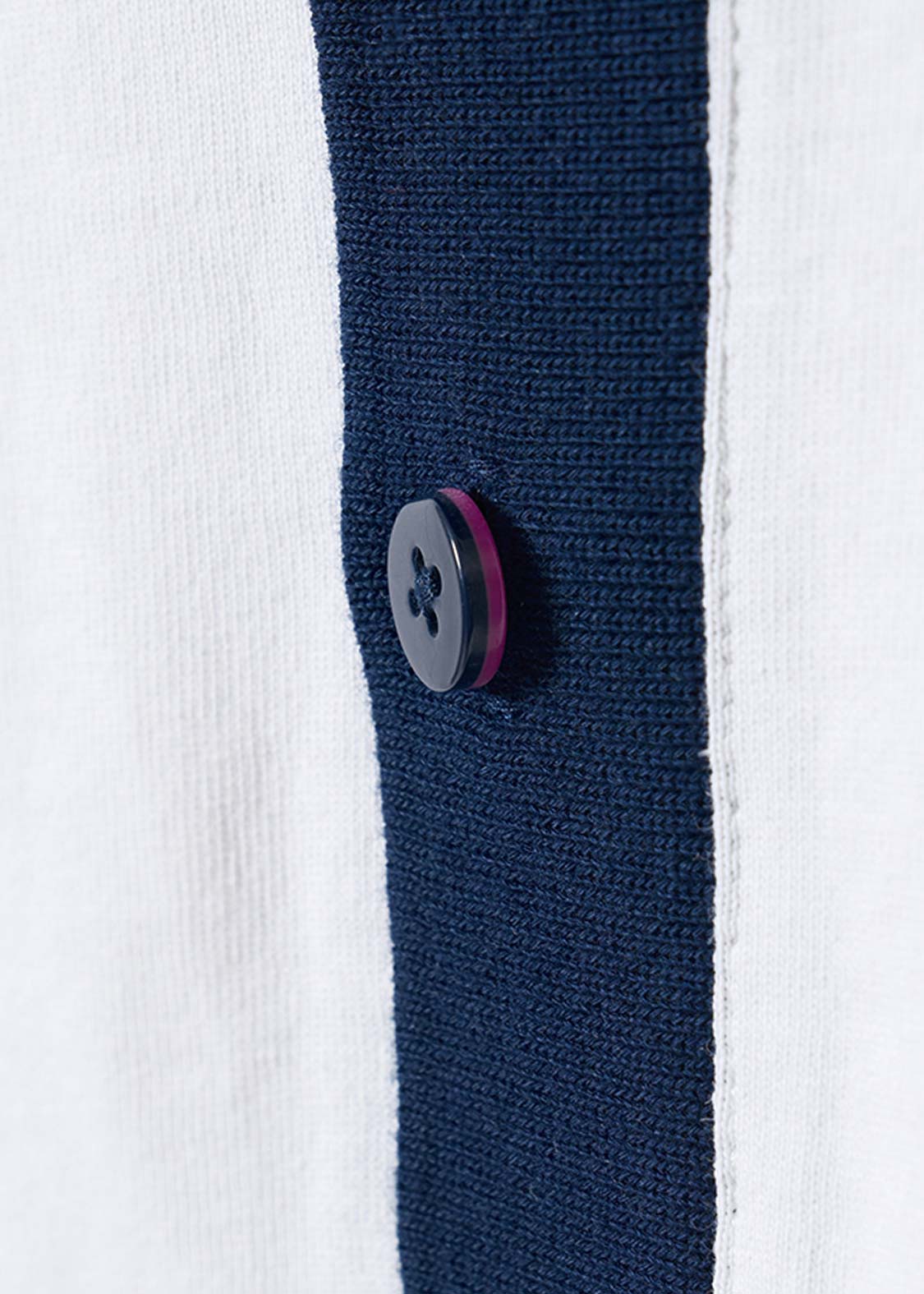 ・襟や袖口、ボタンの色がさりげないアクセントになっています。