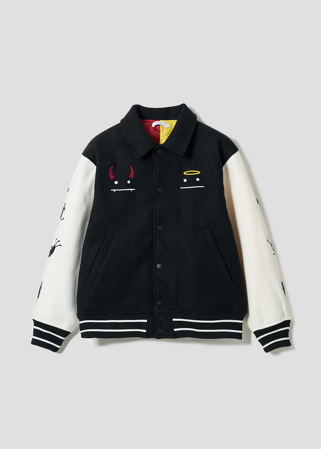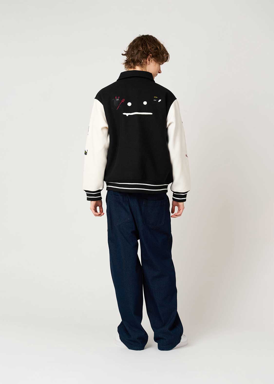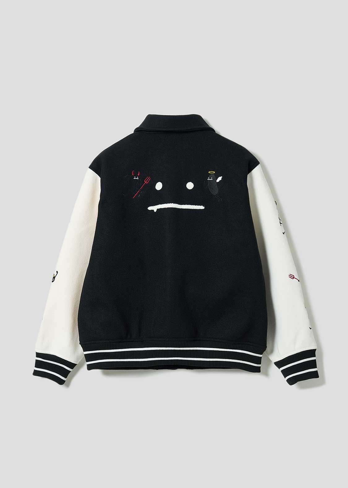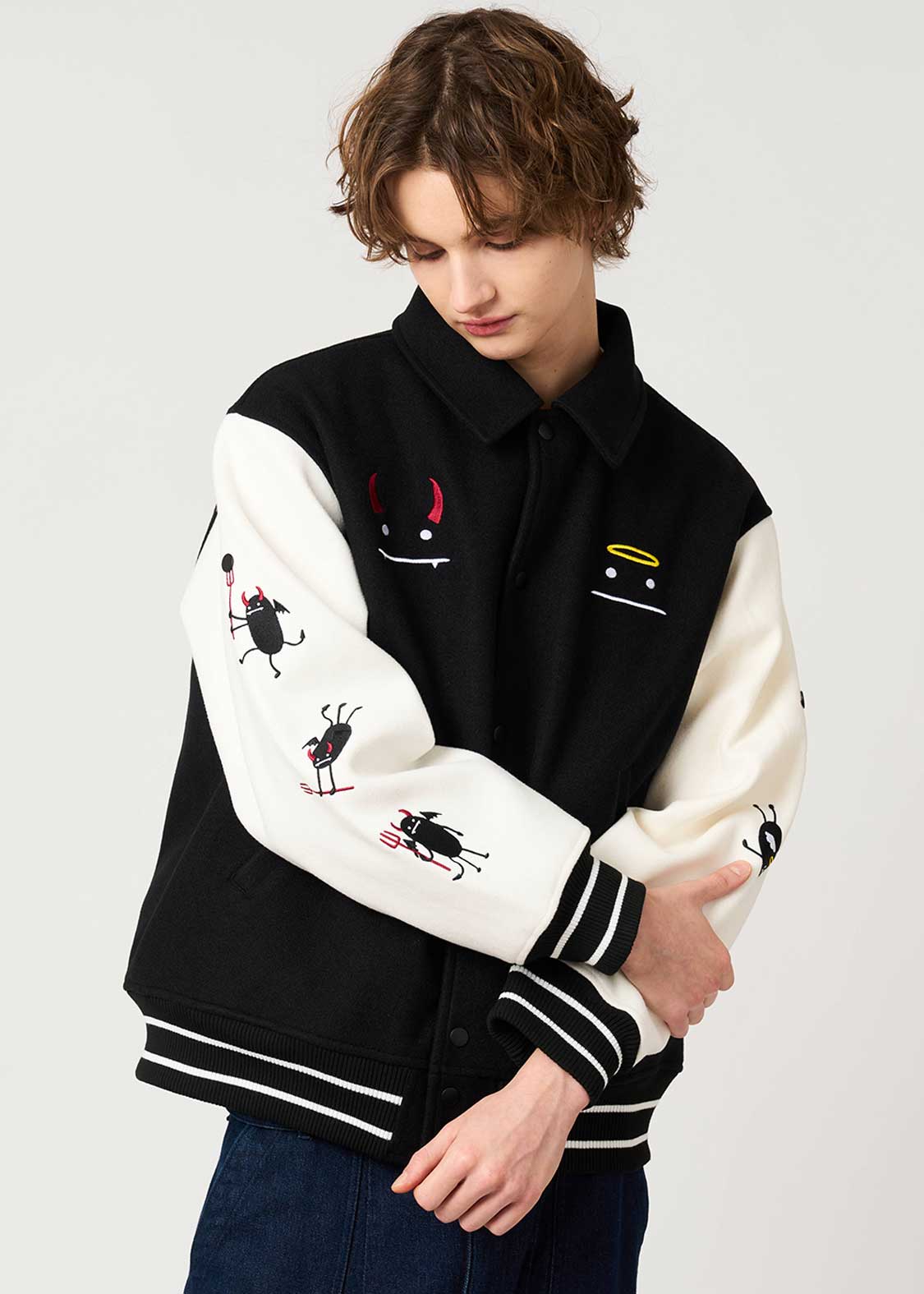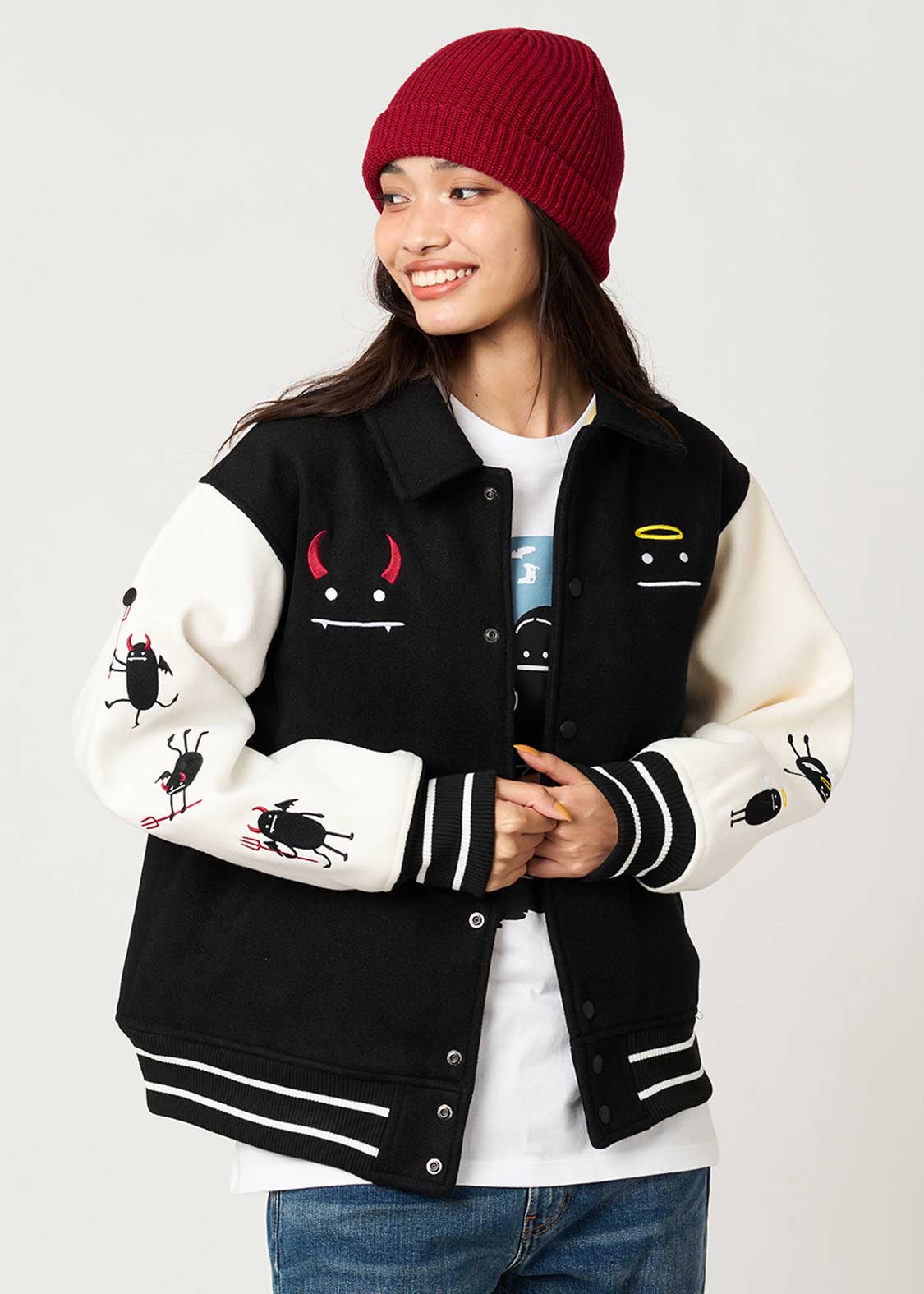・程よい厚みのメルトン生地を使用した、ゆったりとしたサイズ感のスタジャン。