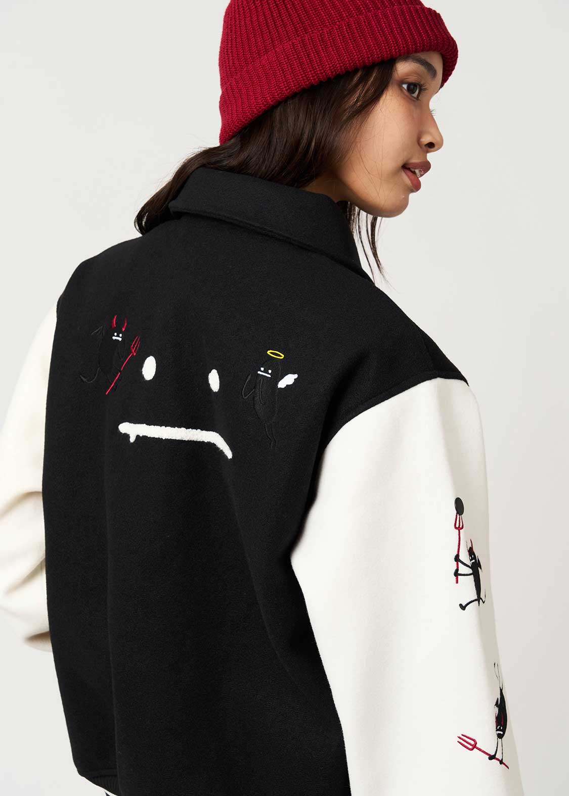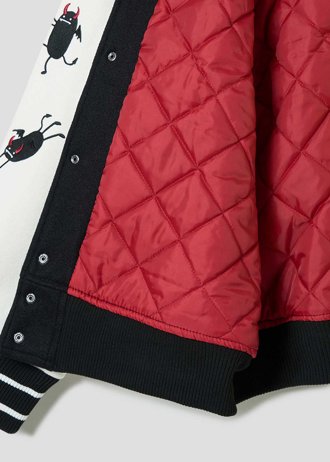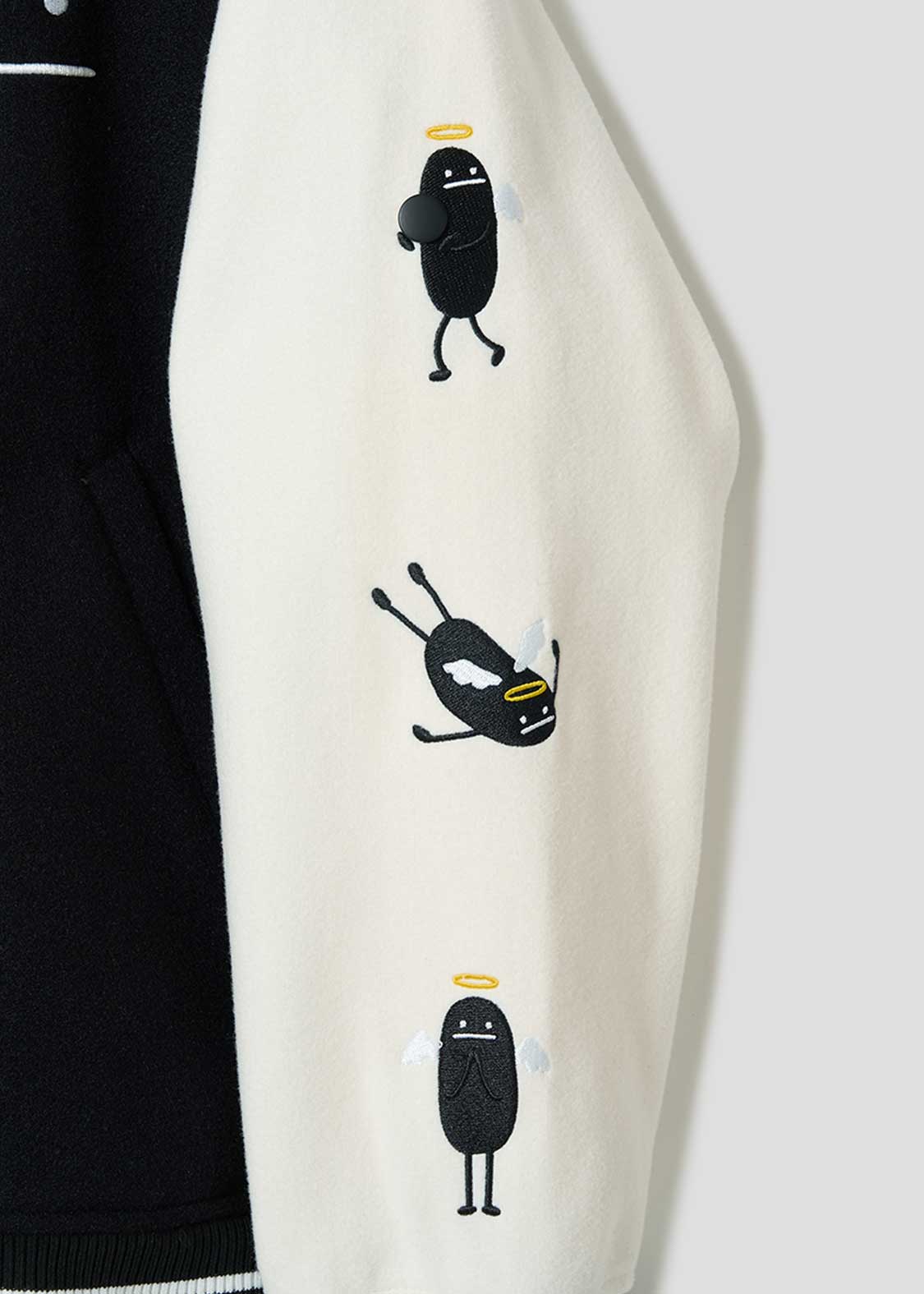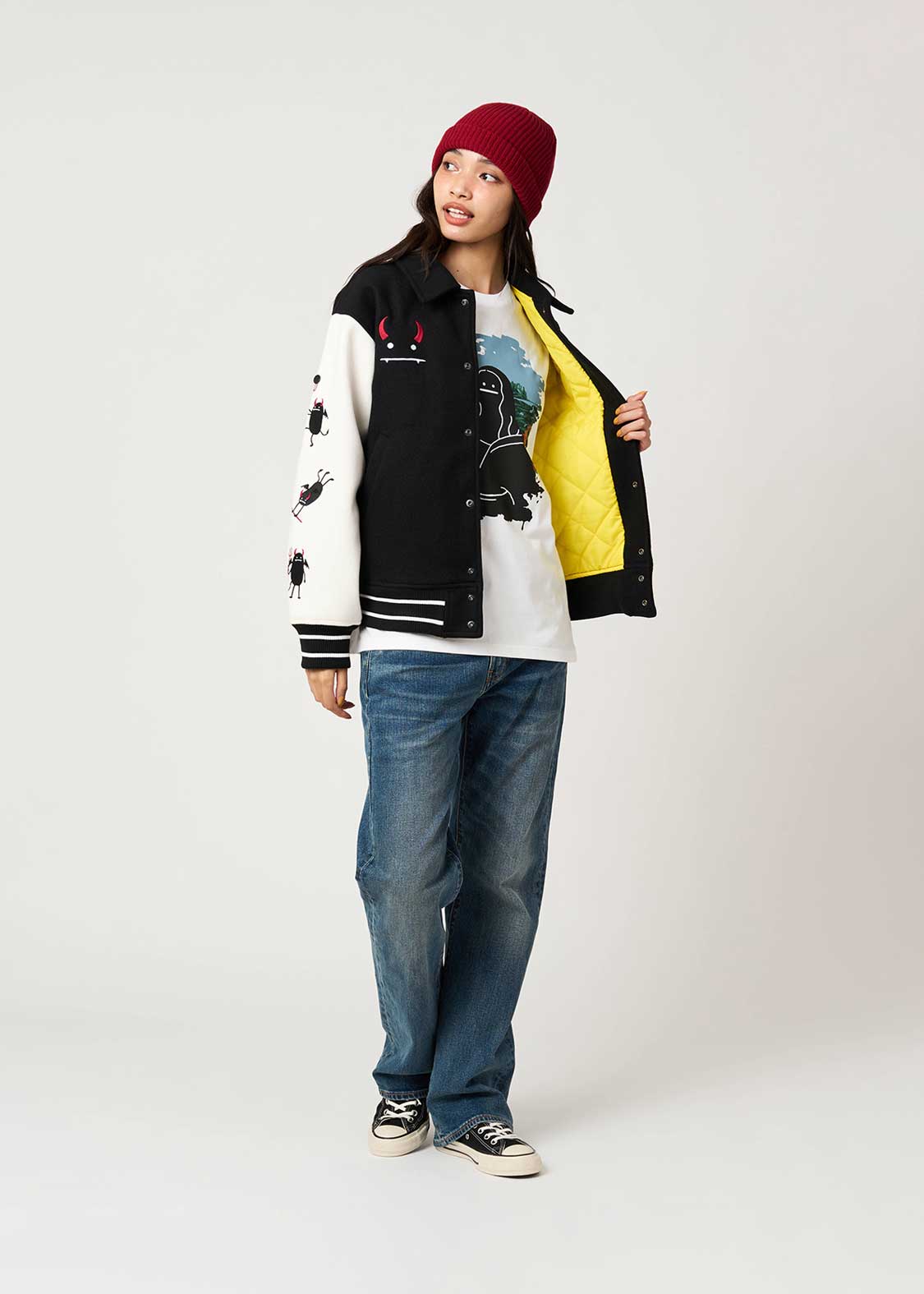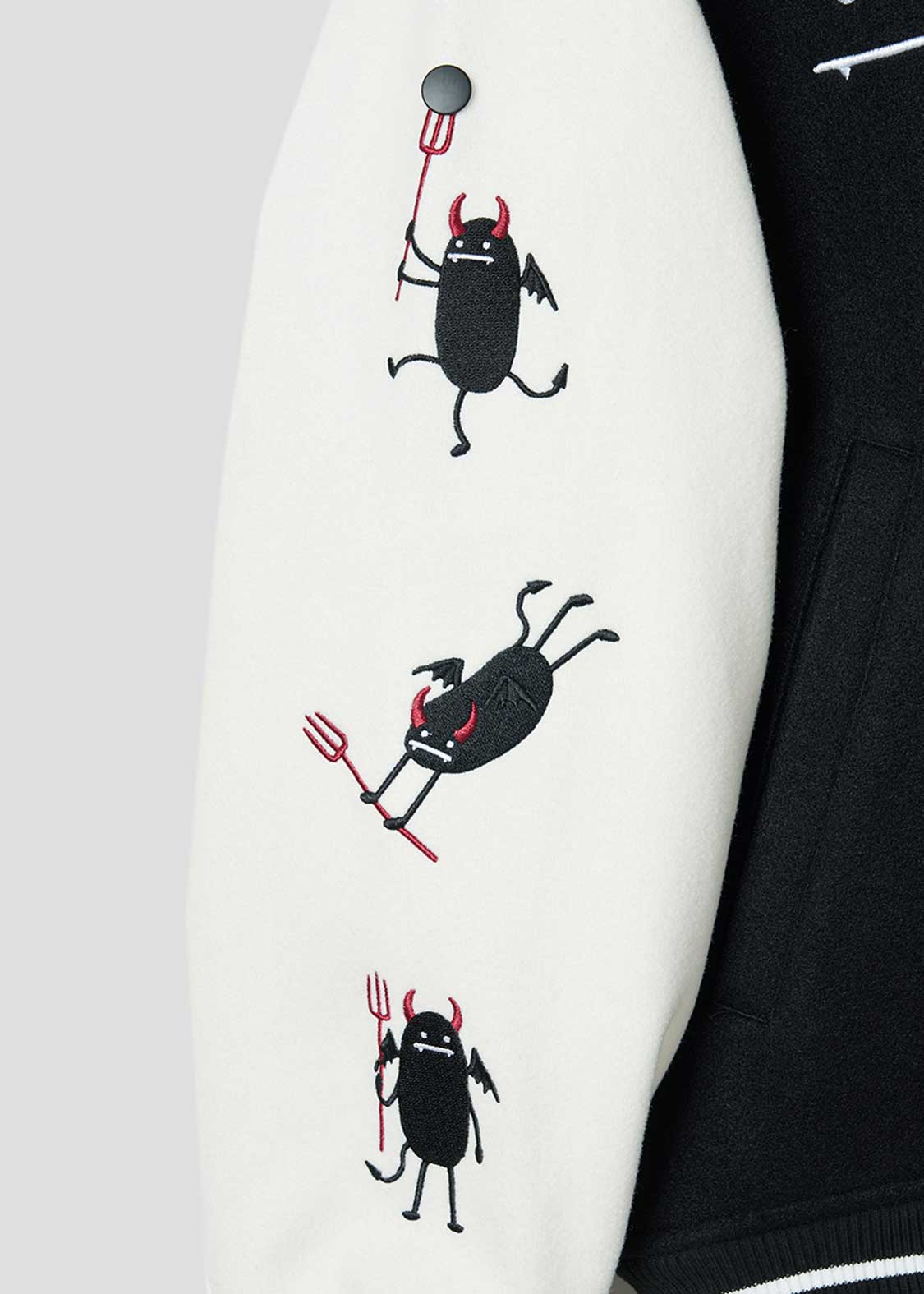 ・程よい厚みのメルトン生地を使用した、ゆったりとしたサイズ感のスタジャン。