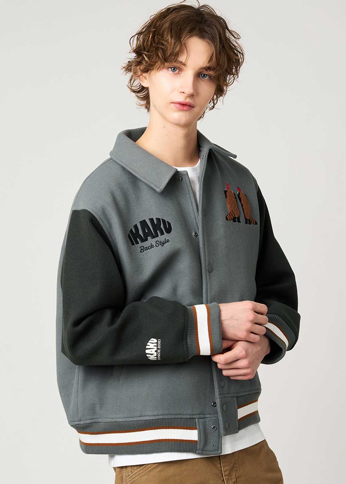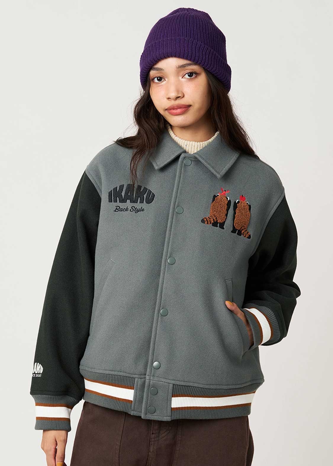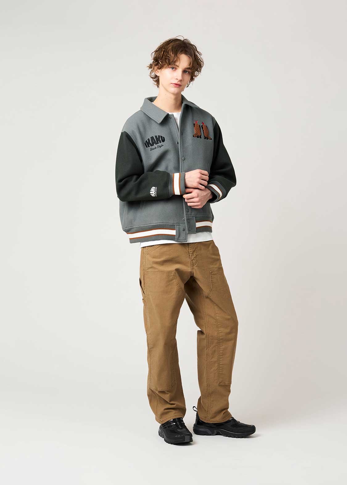 ・程よい厚みのメルトン生地を使用した、ゆったりとしたサイズ感のスタジャン。