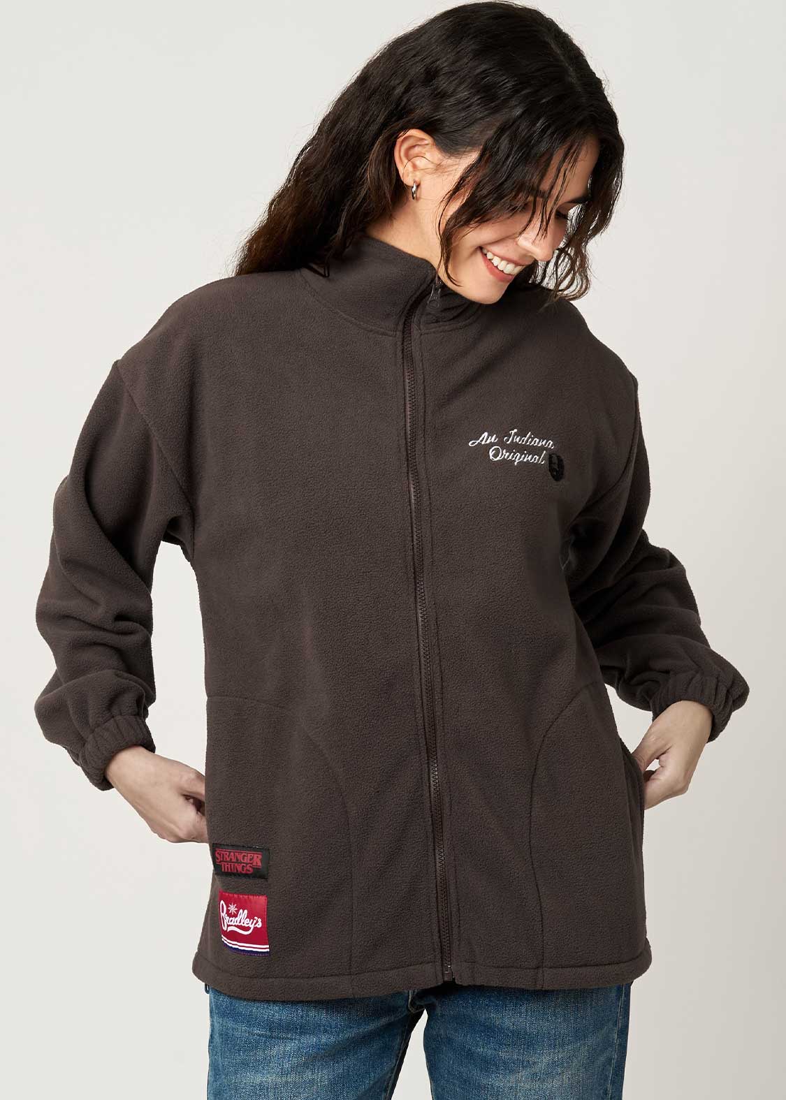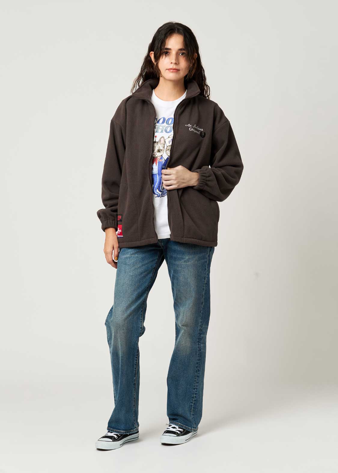 ・暖かく手触りの良いフリース素材を使用した、スタンドカラーのジップブルゾン。