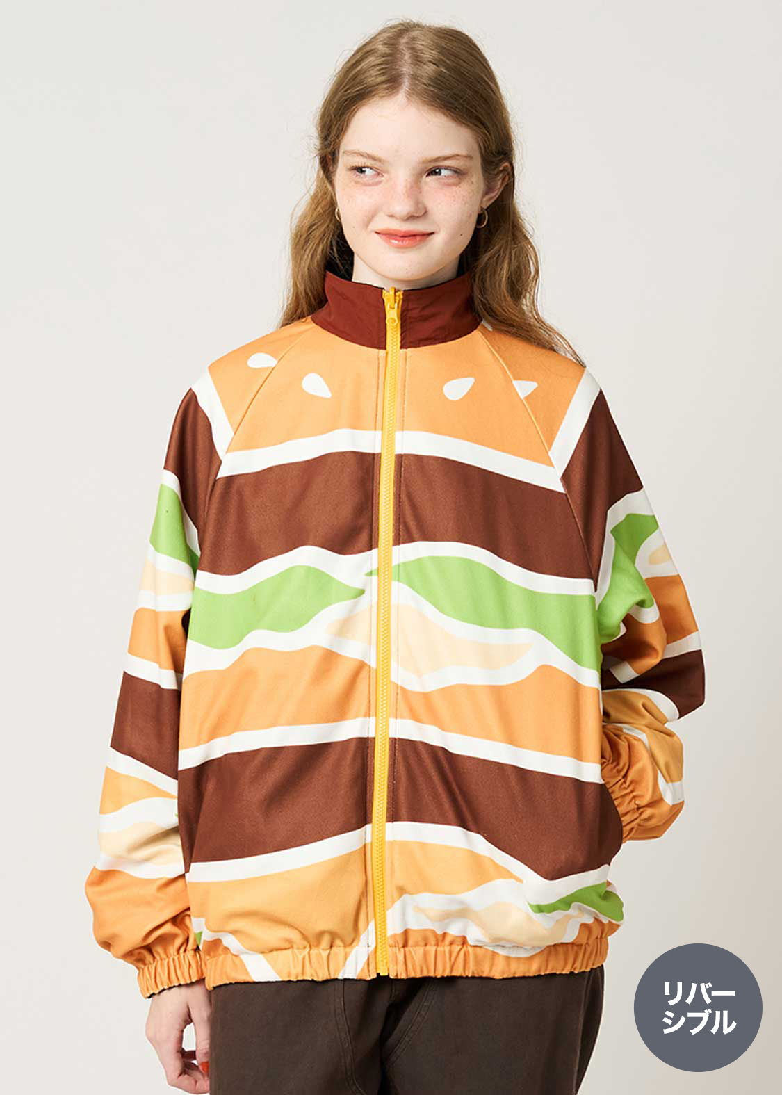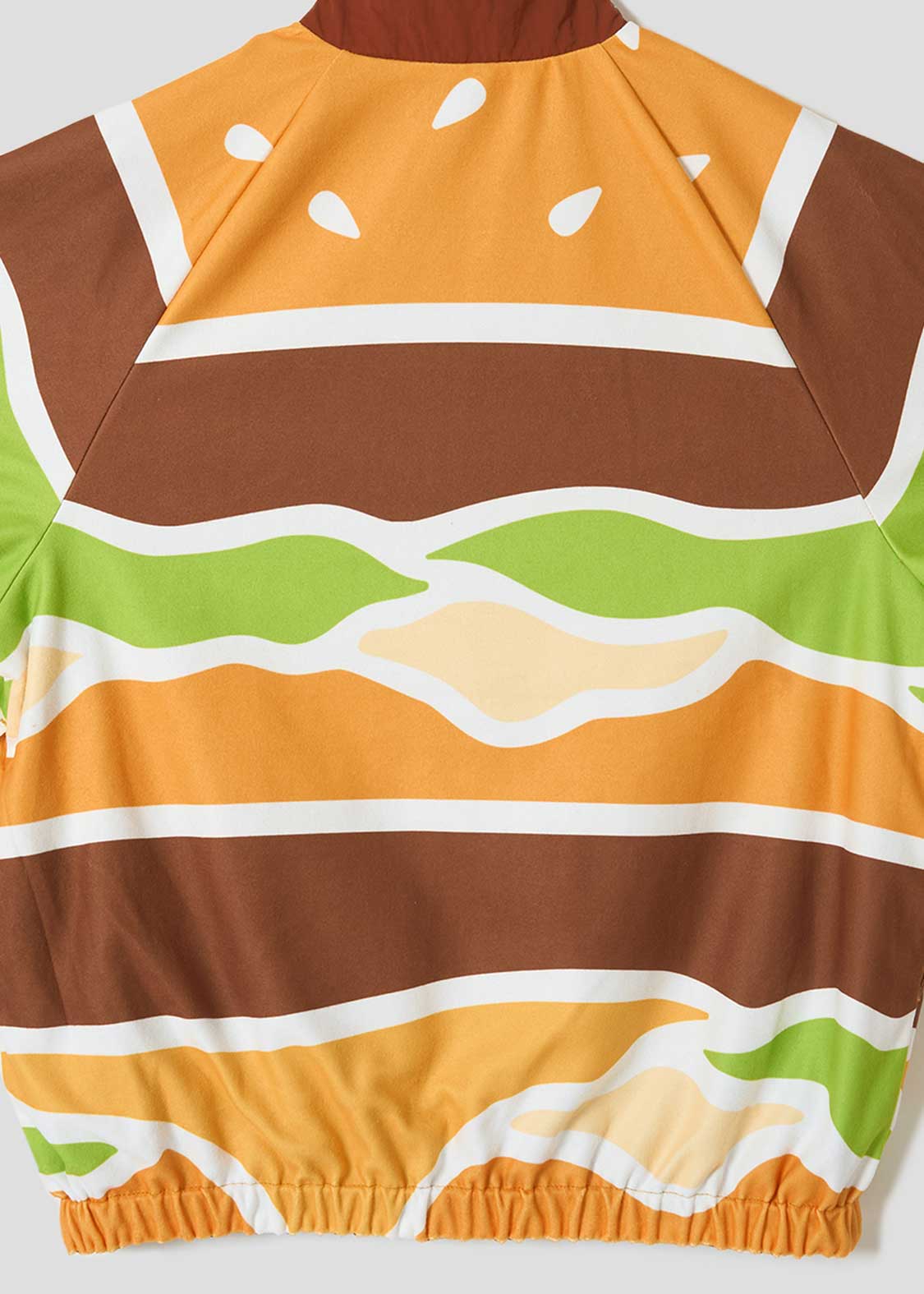 胸元にゴールデンアーチが刺繍されたシンプルなデザインと、ビッグマックを総柄にしたデザインのリバーシブル仕様です。
