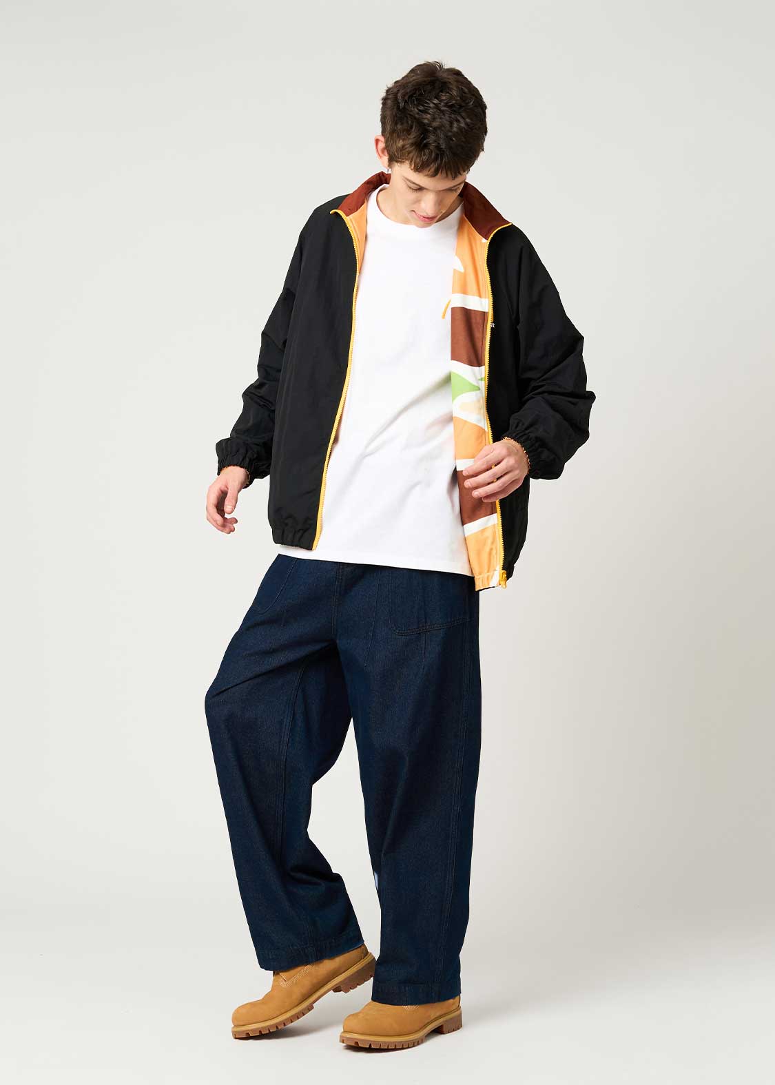 ・広めの身幅とアームホールで、スウェットやパーカーとのレイヤードもストレスなく快適に楽しめます。